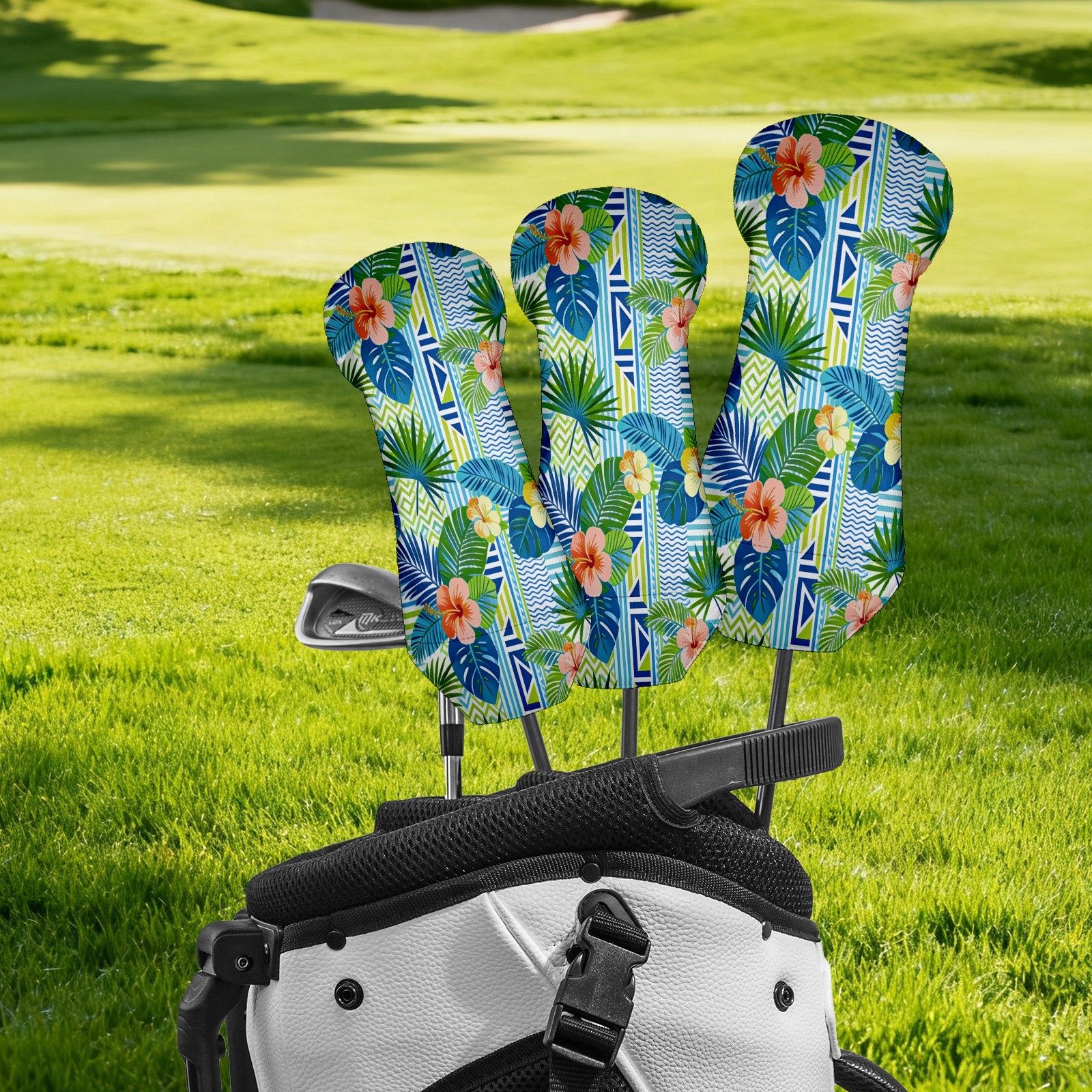 3 Pack PU Leather Golf Club Head Covers - Driver, Fairway Wood & Hybrid, Funny Golf Accessories, Ideal Golf Gift Green Flower