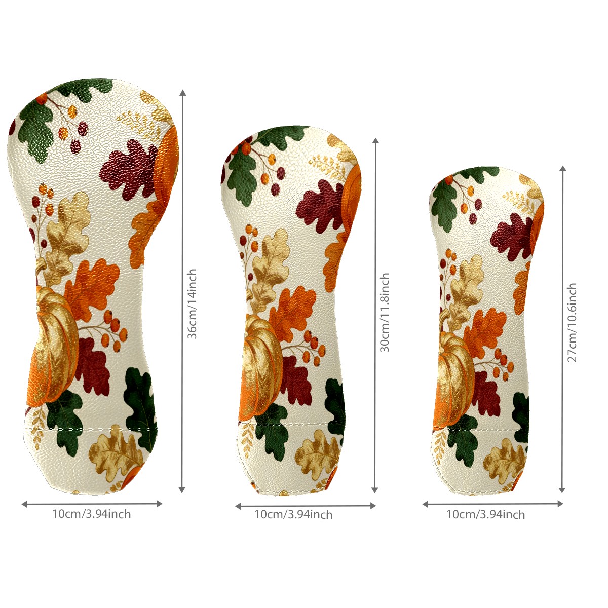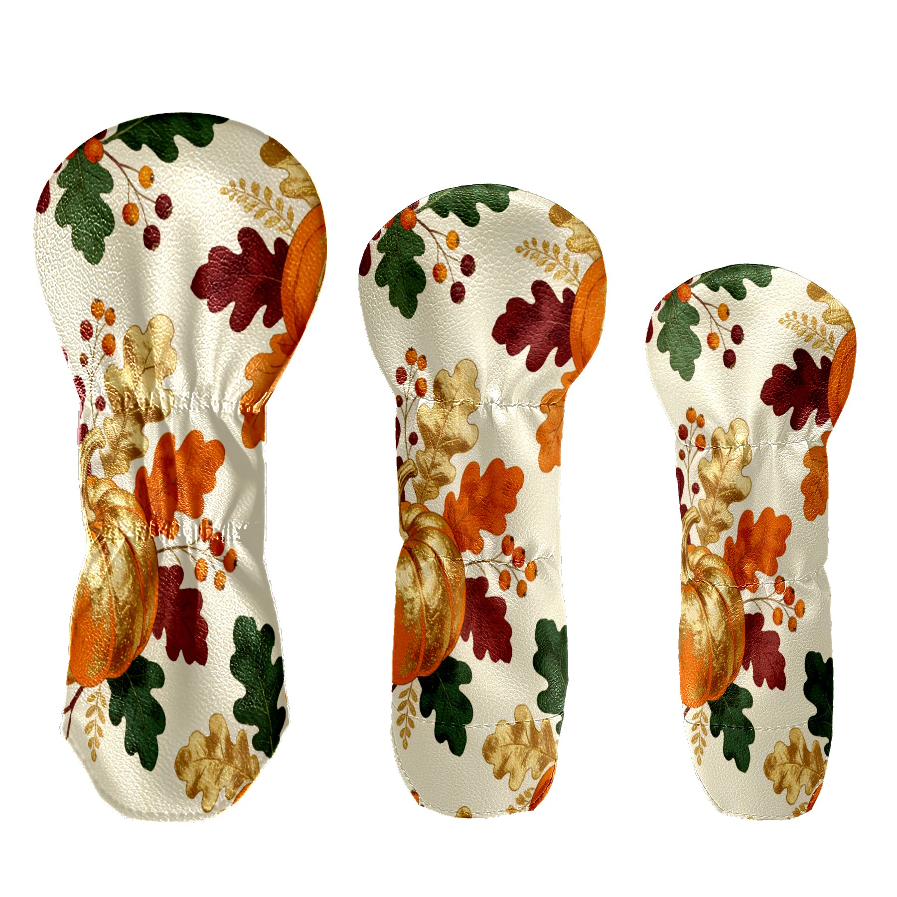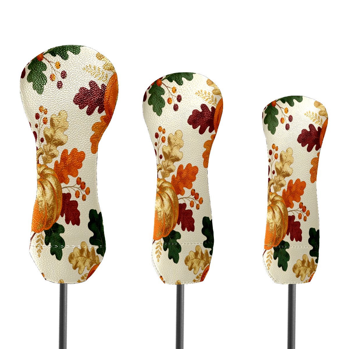 3 Pack PU Leather Golf Club Head Covers - Driver, Fairway Wood & Hybrid, Funny Golf Accessories, Ideal Golf Gift Pumpkin Pattern