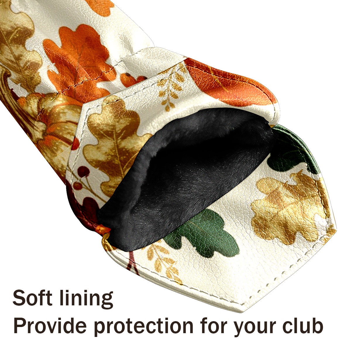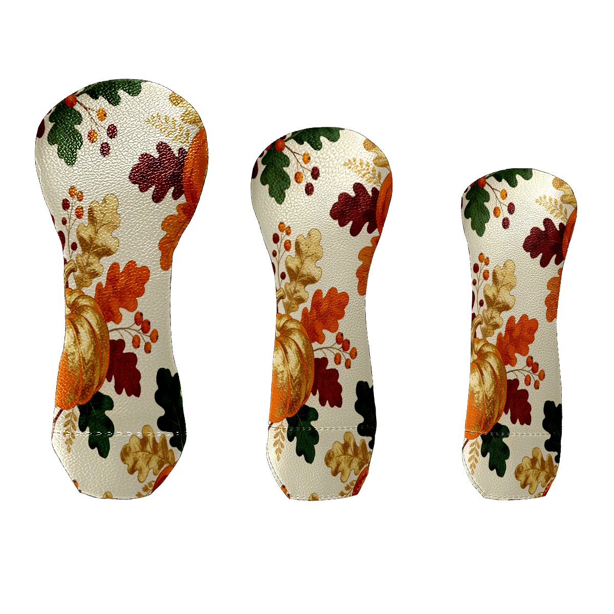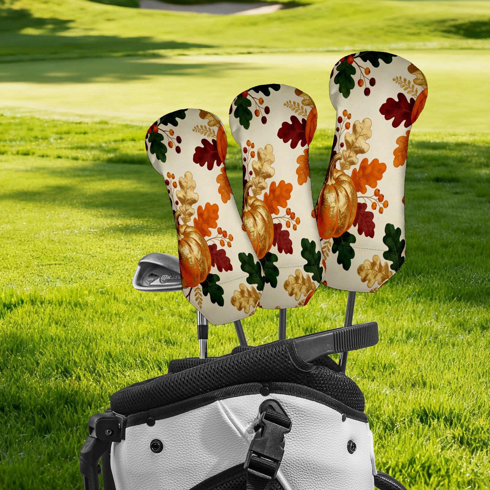 3 Pack PU Leather Golf Club Head Covers - Driver, Fairway Wood & Hybrid, Funny Golf Accessories, Ideal Golf Gift Pumpkin Pattern