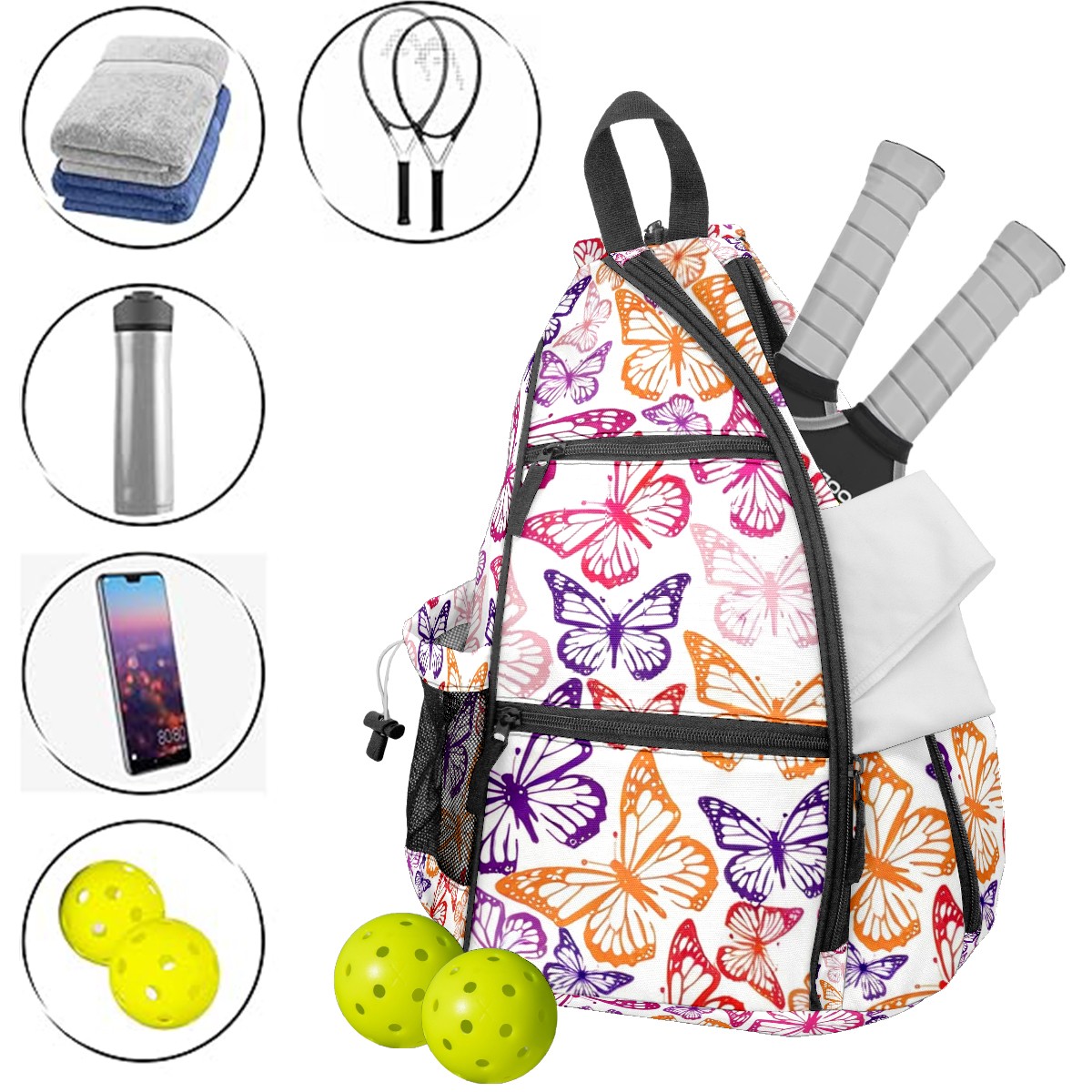 ulti-Functional Pickleball Backpack - Large 45L Sports Bag with Butterfly Purple · Print for 2 Paddles & Gear, Lightweight Convertible Backpack/Shoulder Bag, Durable Gym Bag