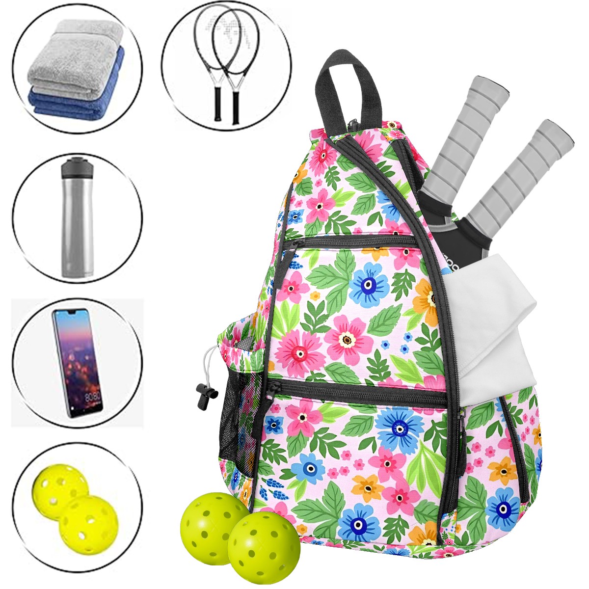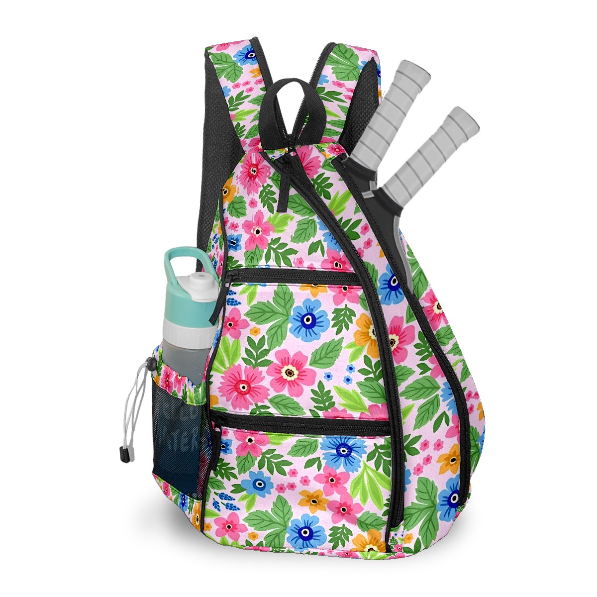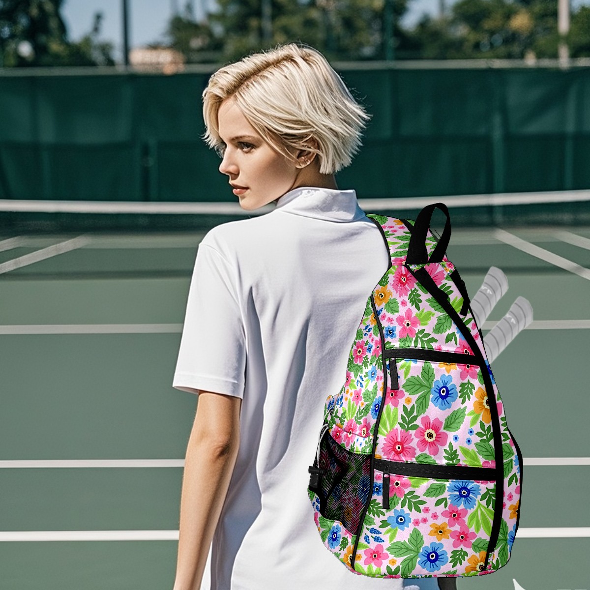 ulti-Functional Pickleball Backpack - Large 45L Sports Bag with Flowers Colorful Print for 2 Paddles & Gear, Lightweight Convertible Backpack/Shoulder Bag, Durable Gym Bag