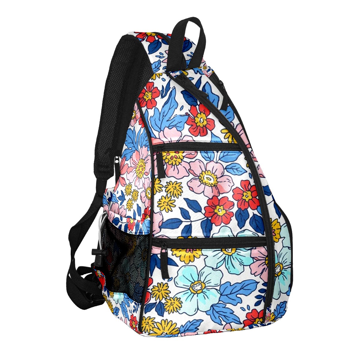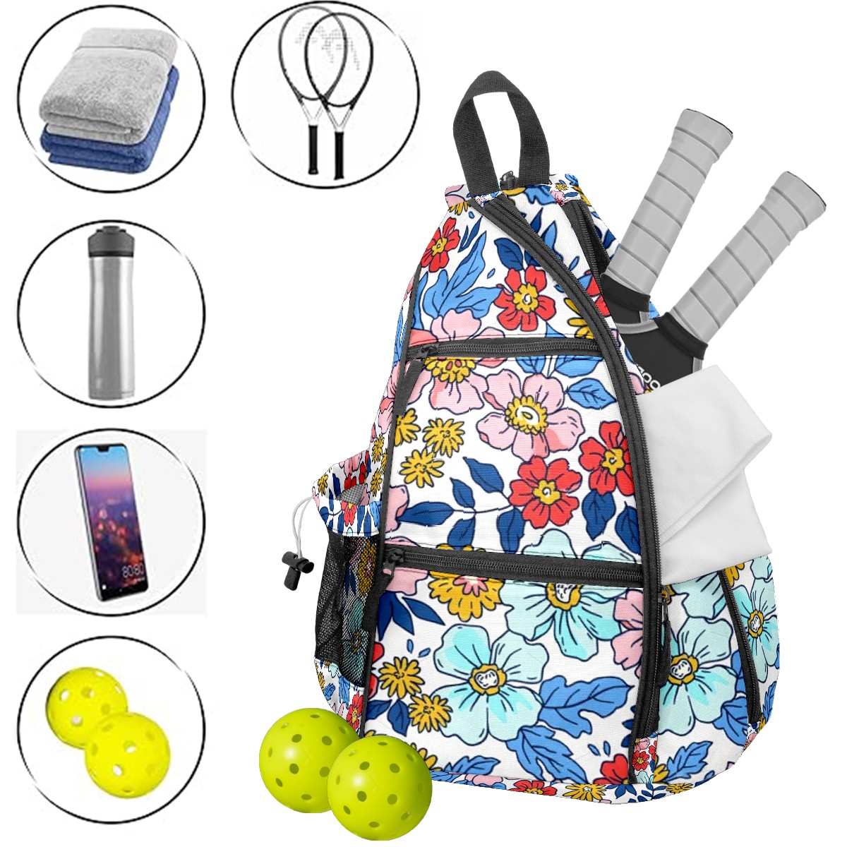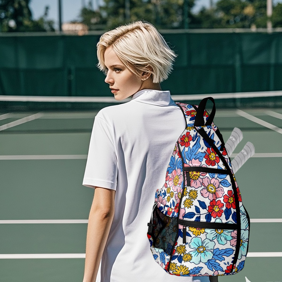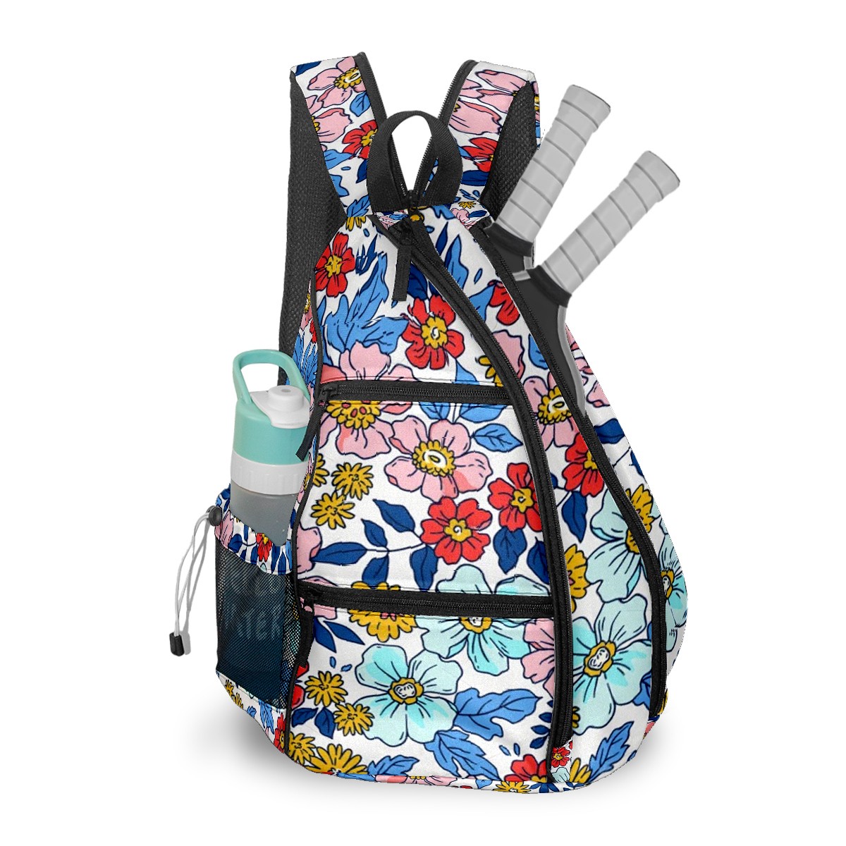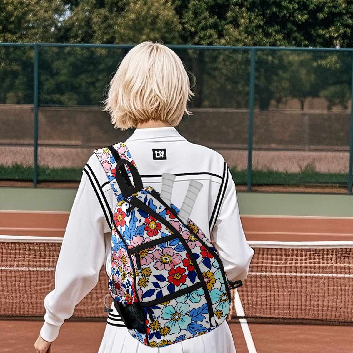 ulti-Functional Pickleball Backpack - Large 45L Sports Bag with Colorful Flowers Print for 2 Paddles & Gear, Lightweight Convertible Backpack/Shoulder Bag, Durable Gym Bag