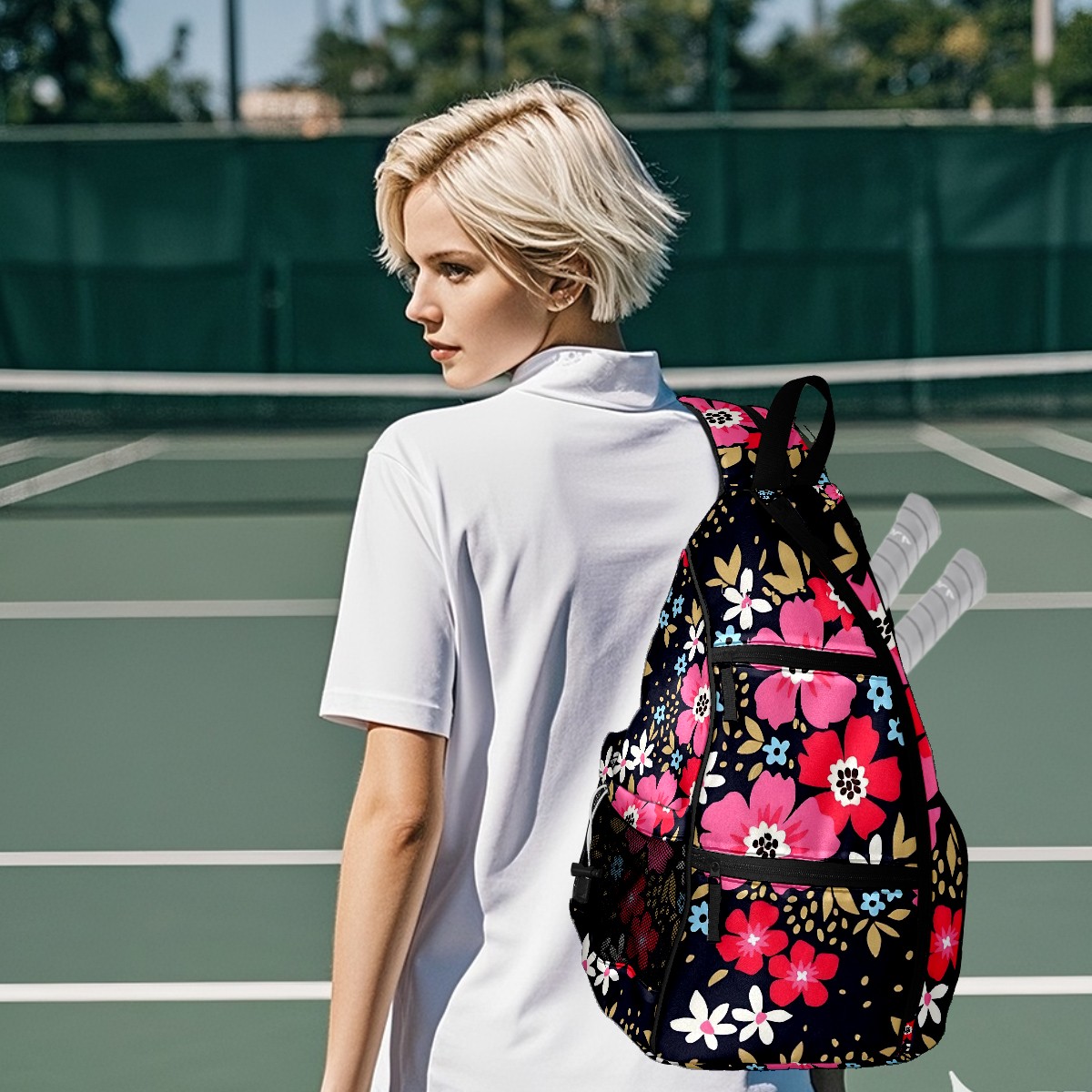 ulti-Functional Pickleball Backpack - Large 45L Sports Bag with Cherry Blossom Print for 2 Paddles & Gear, Lightweight Convertible Backpack/Shoulder Bag, Durable Gym Bag