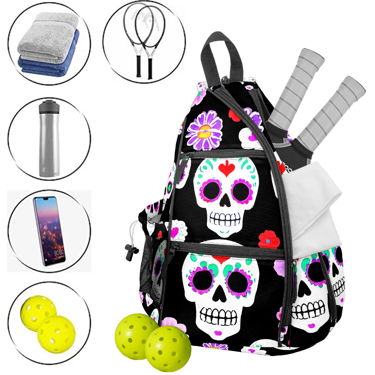 ulti-Functional Pickleball Backpack - Large 45L Sports Bag with Skeleton Black Print for 2 Paddles & Gear, Lightweight Convertible Backpack/Shoulder Bag, Durable Gym Bag