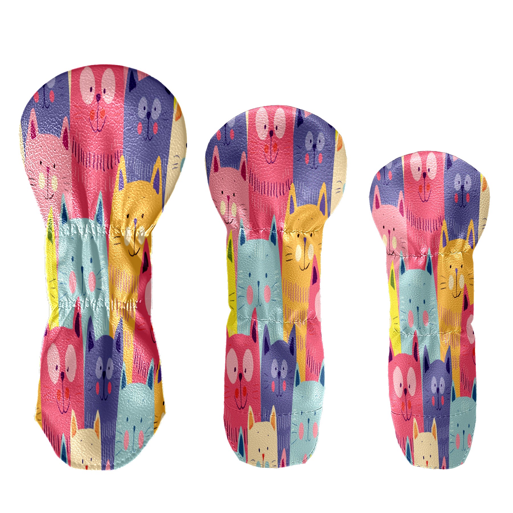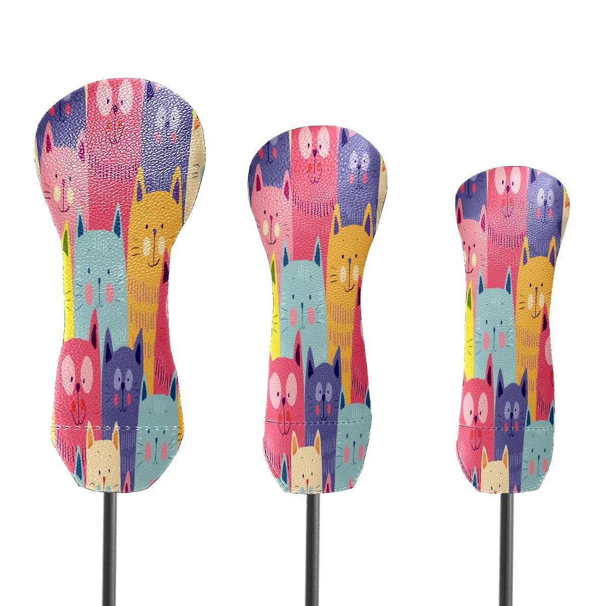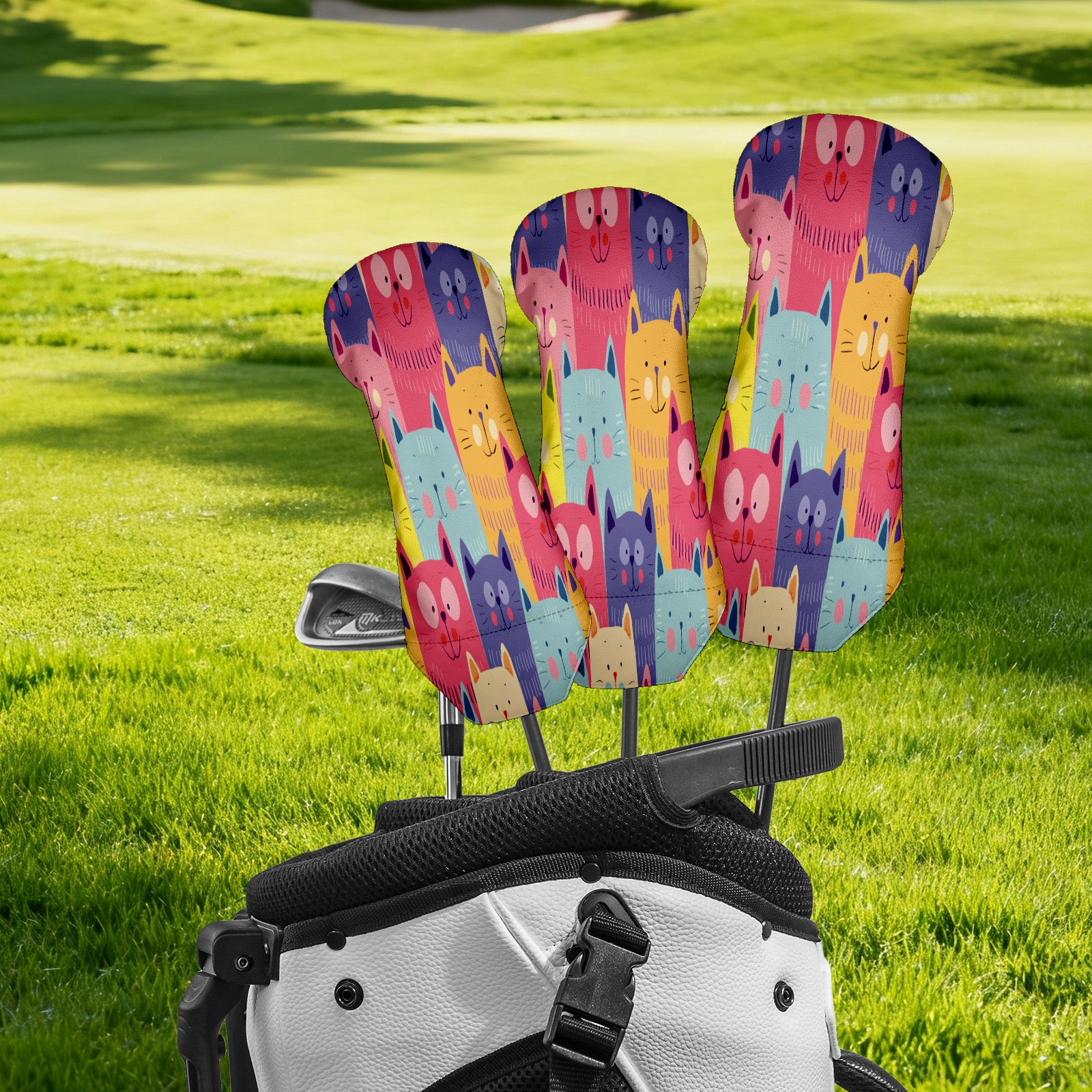 3 Pack PU Leather Golf Club Head Covers - Driver, Fairway Wood & Hybrid, Funny Golf Accessories, Ideal Golf Gift Cartoon Cat Face Pattern (1) (1)