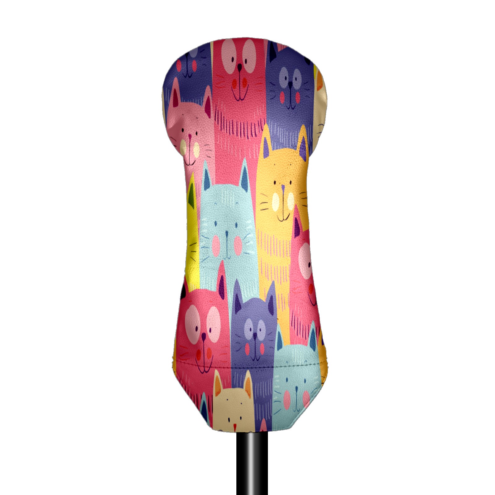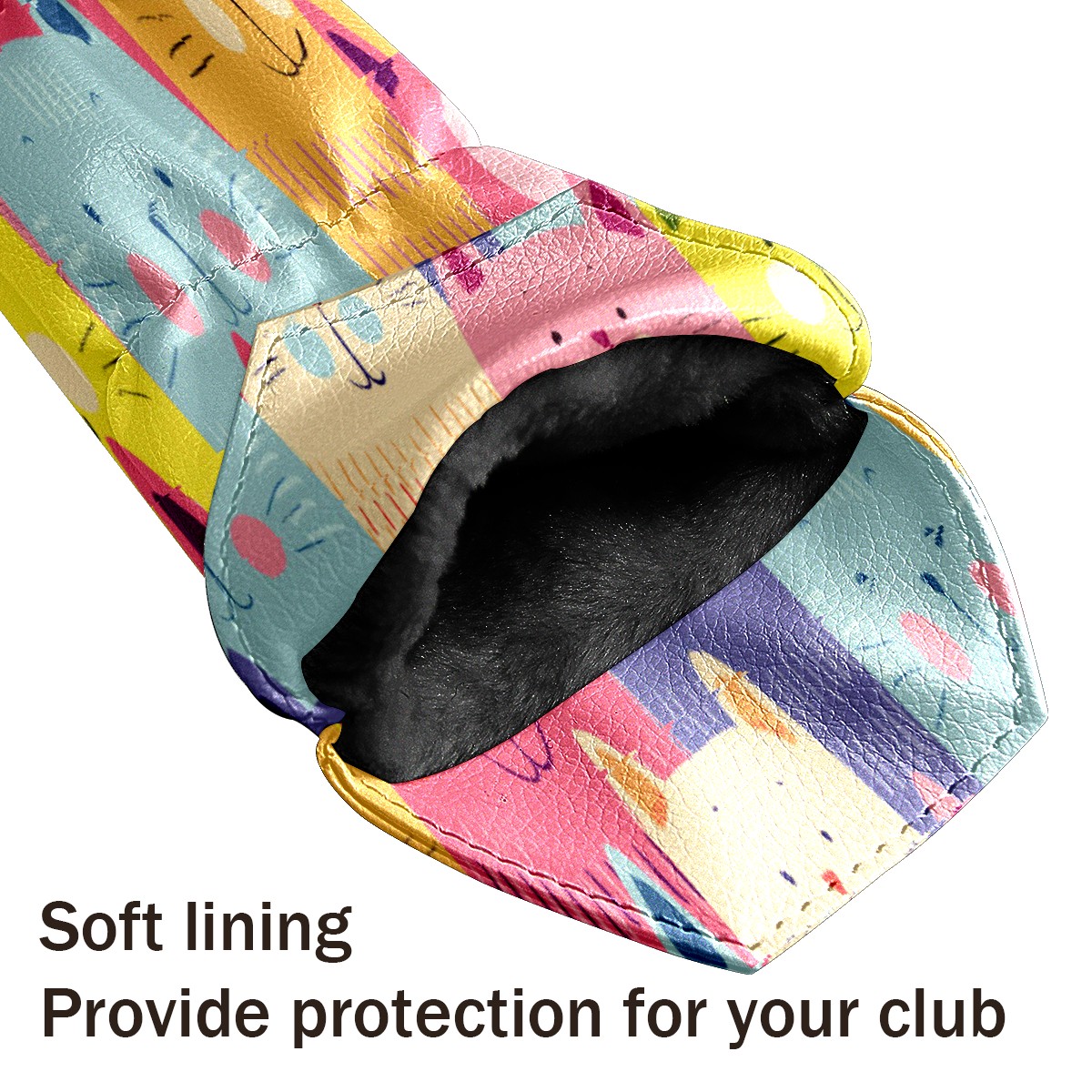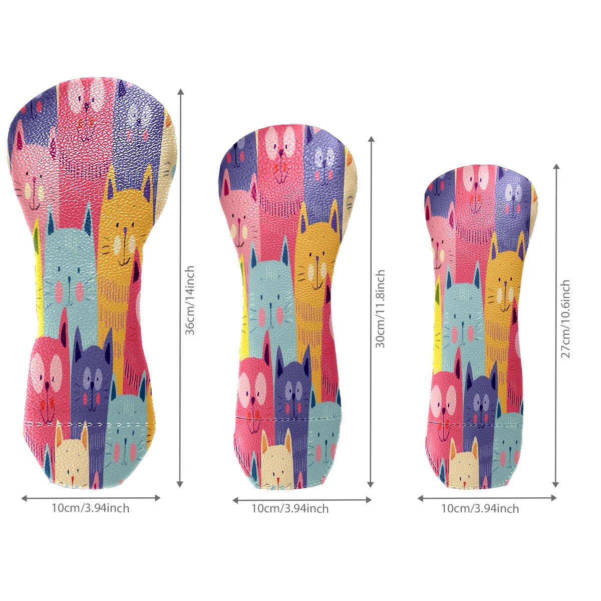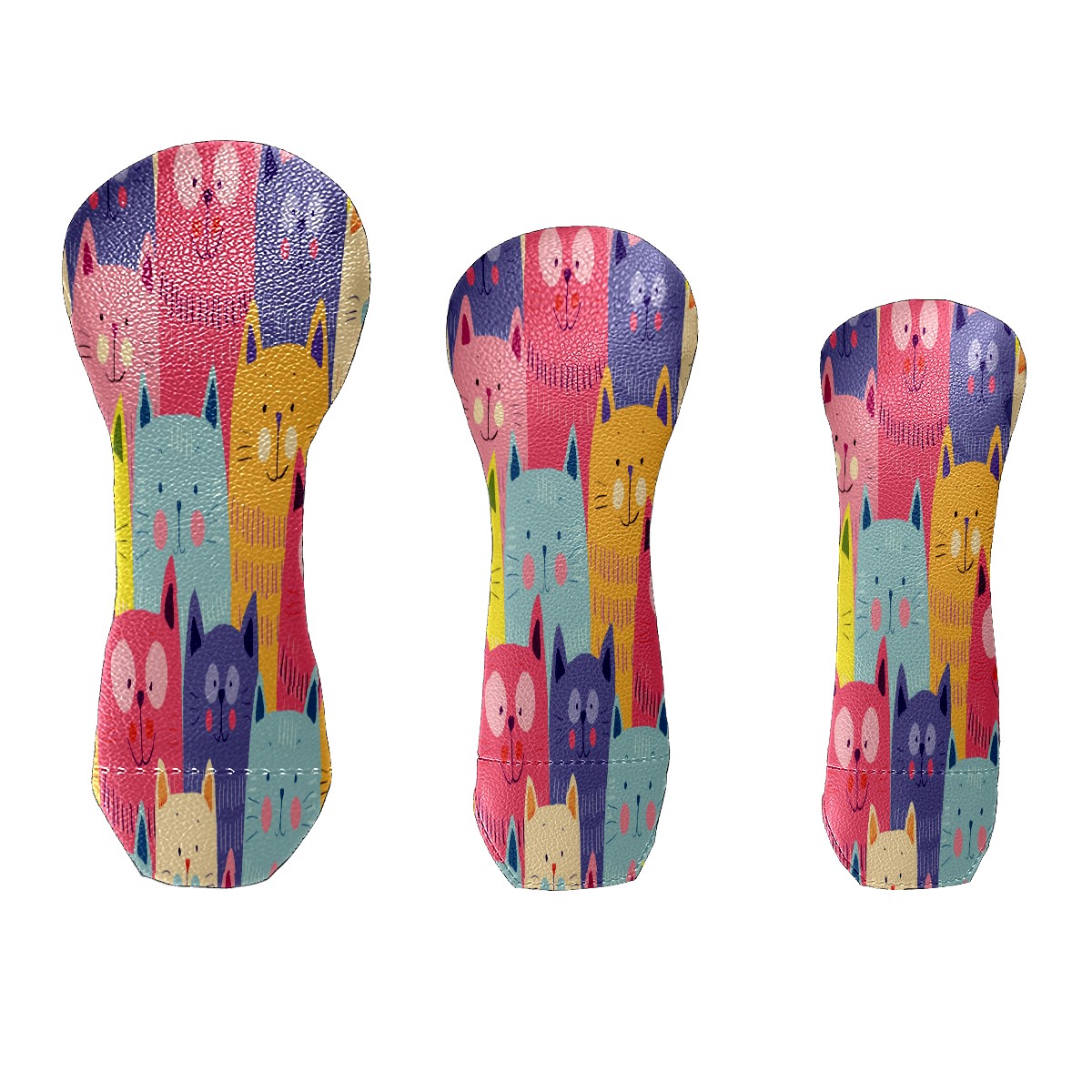 3 Pack PU Leather Golf Club Head Covers - Driver, Fairway Wood & Hybrid, Funny Golf Accessories, Ideal Golf Gift Cartoon Cat Face Pattern (1) (1)