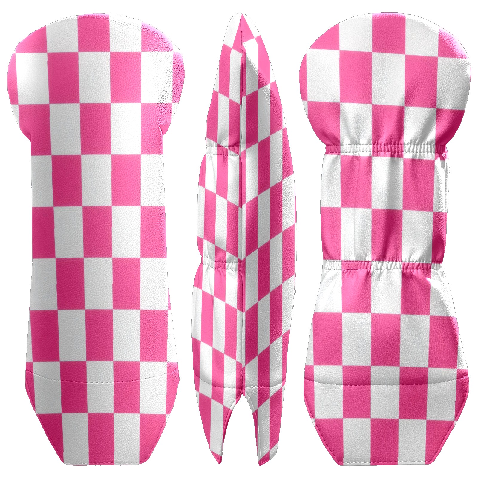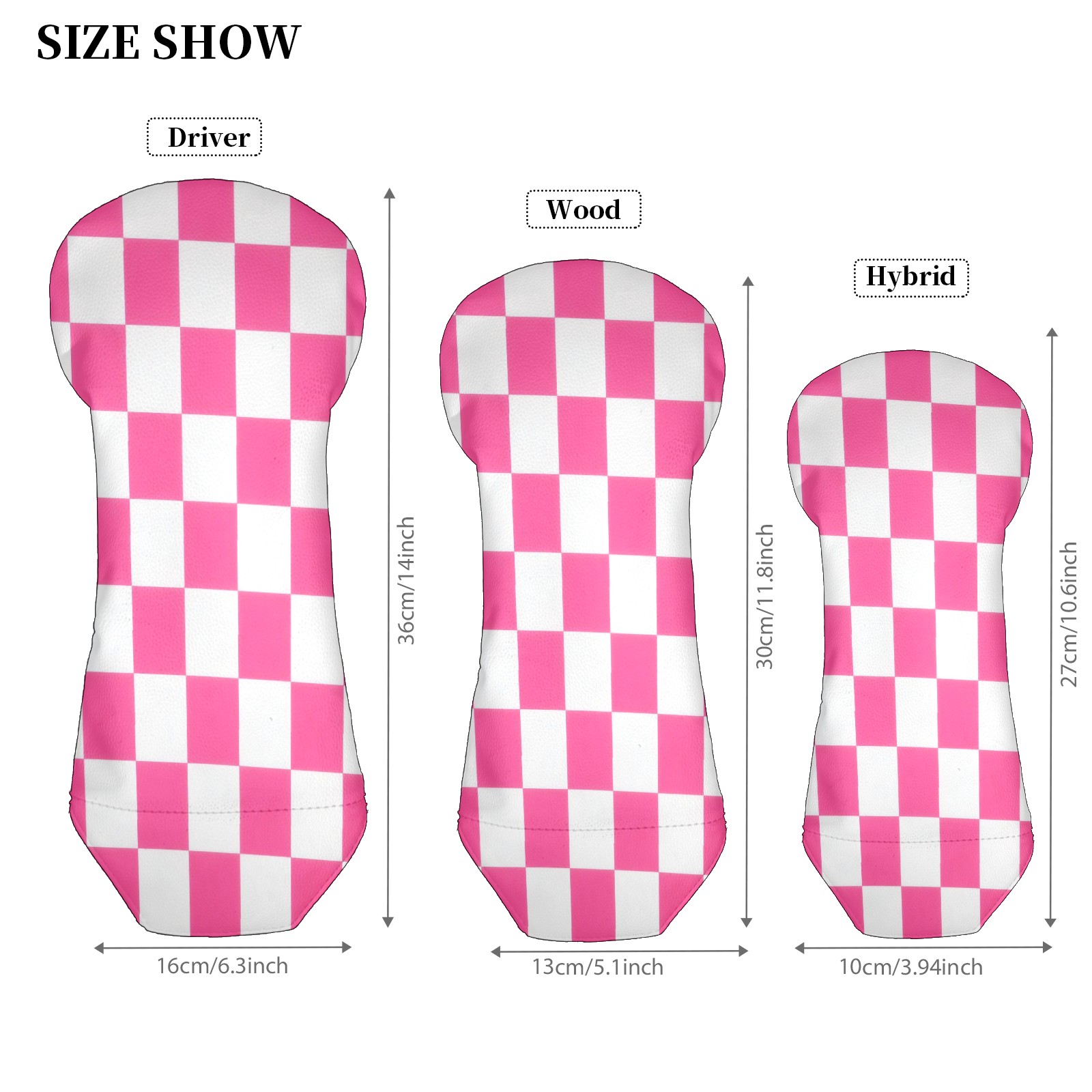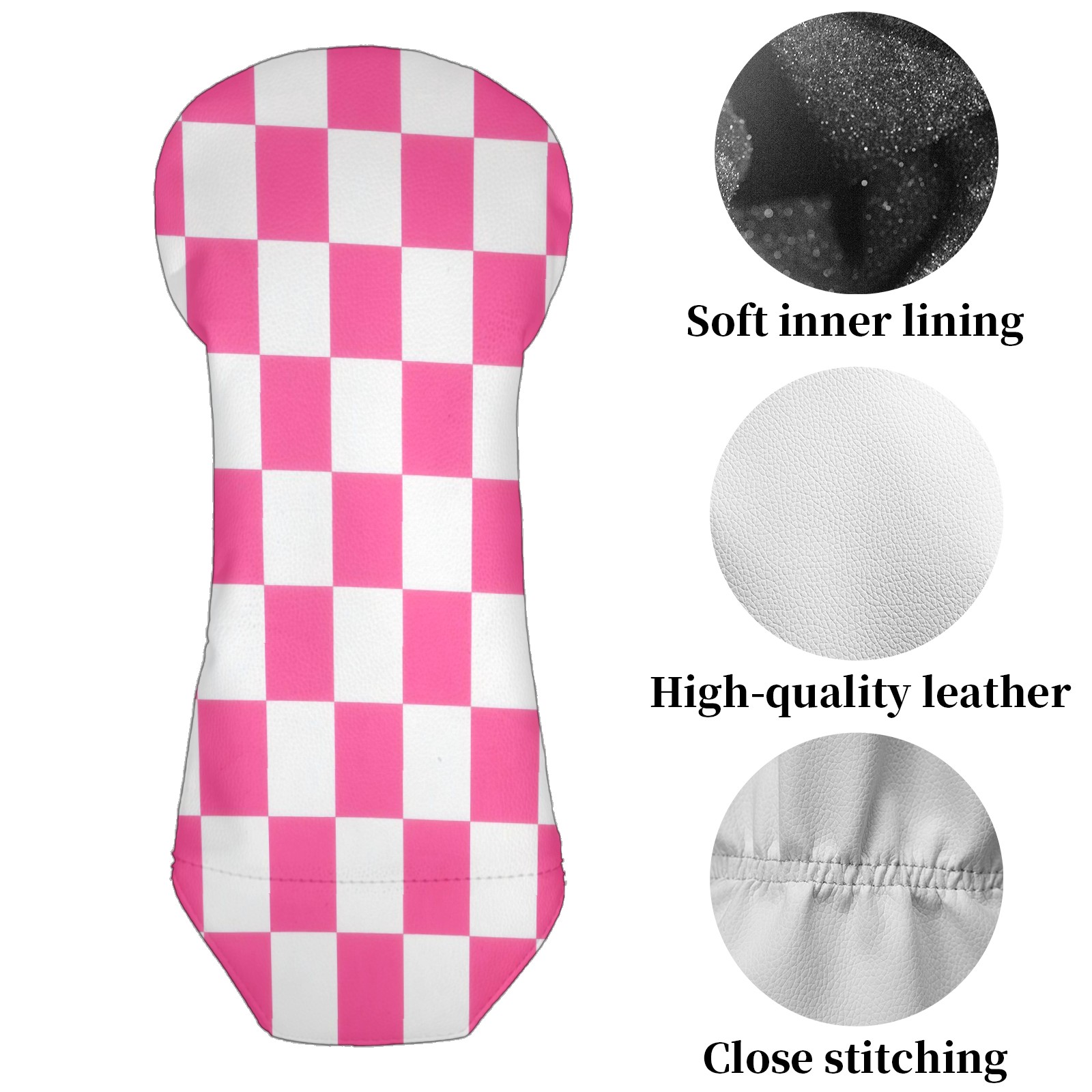 Golf Club Head Covers Driver Cover Fairway Hybrid Headcover Premium Leather Golf Head Covers for Woods and Driver Hybrid, Golf Headcovers for Women Men (Pink Checker (1))