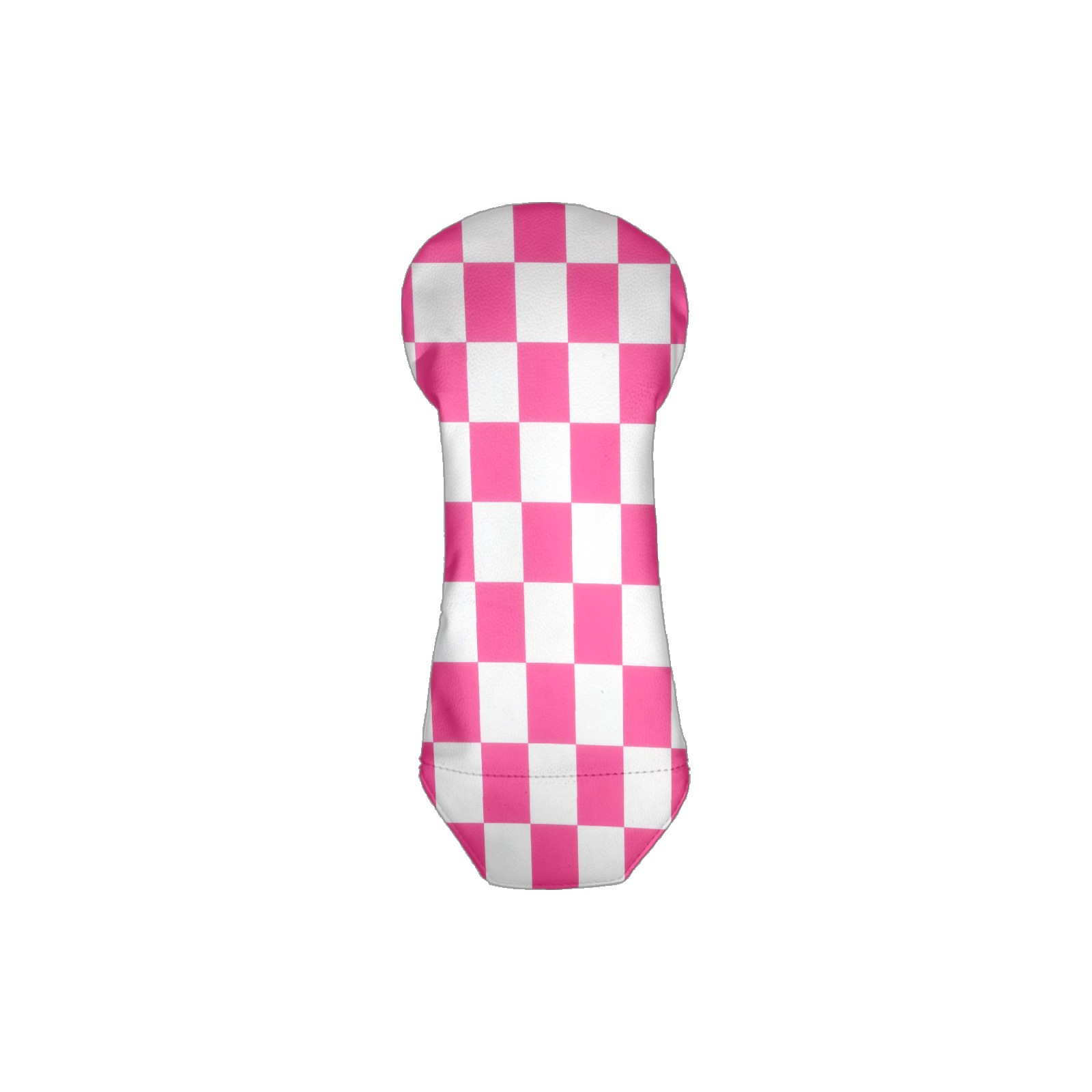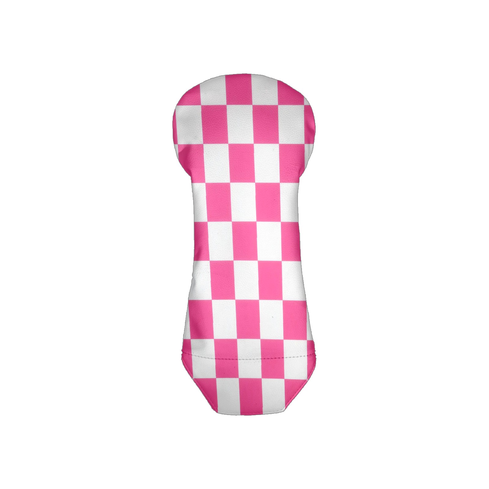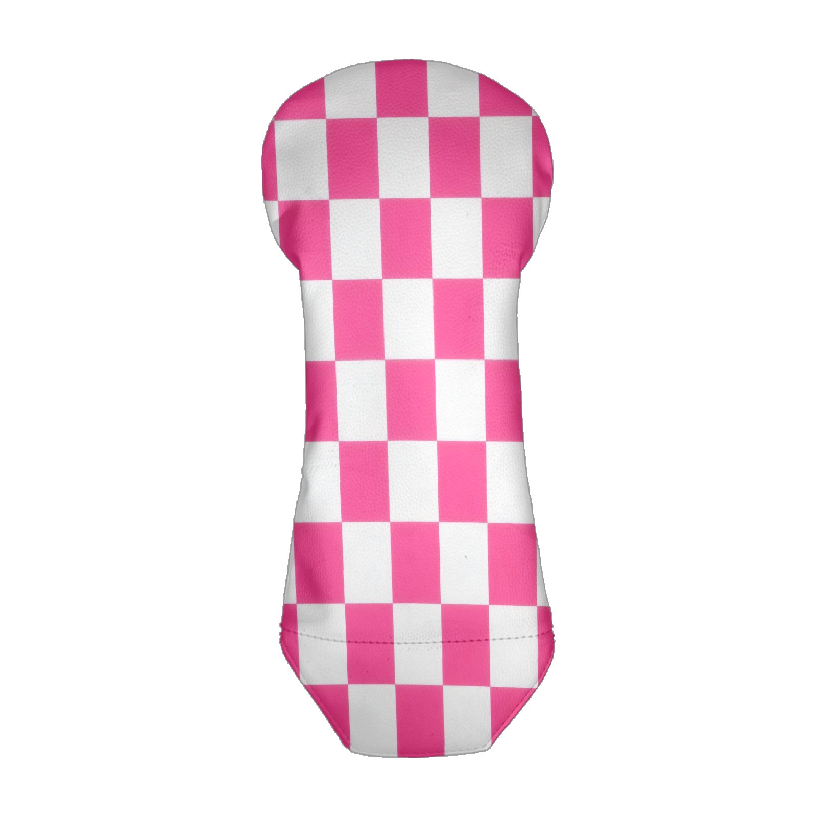 Golf Club Head Covers Driver Cover Fairway Hybrid Headcover Premium Leather Golf Head Covers for Woods and Driver Hybrid, Golf Headcovers for Women Men (Pink Checker (1))