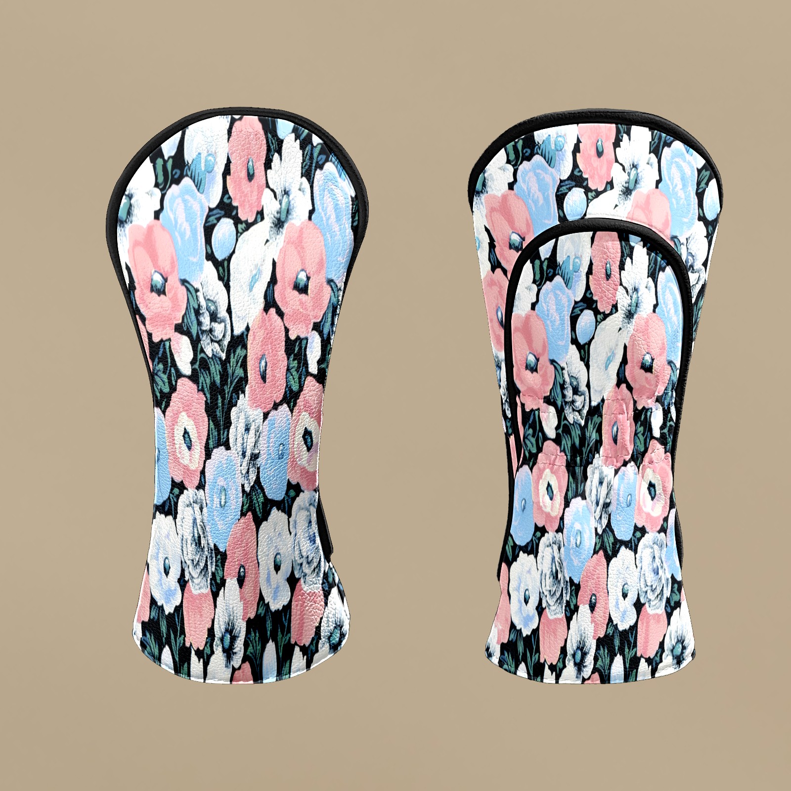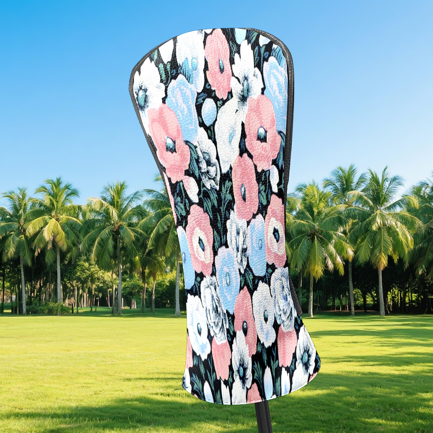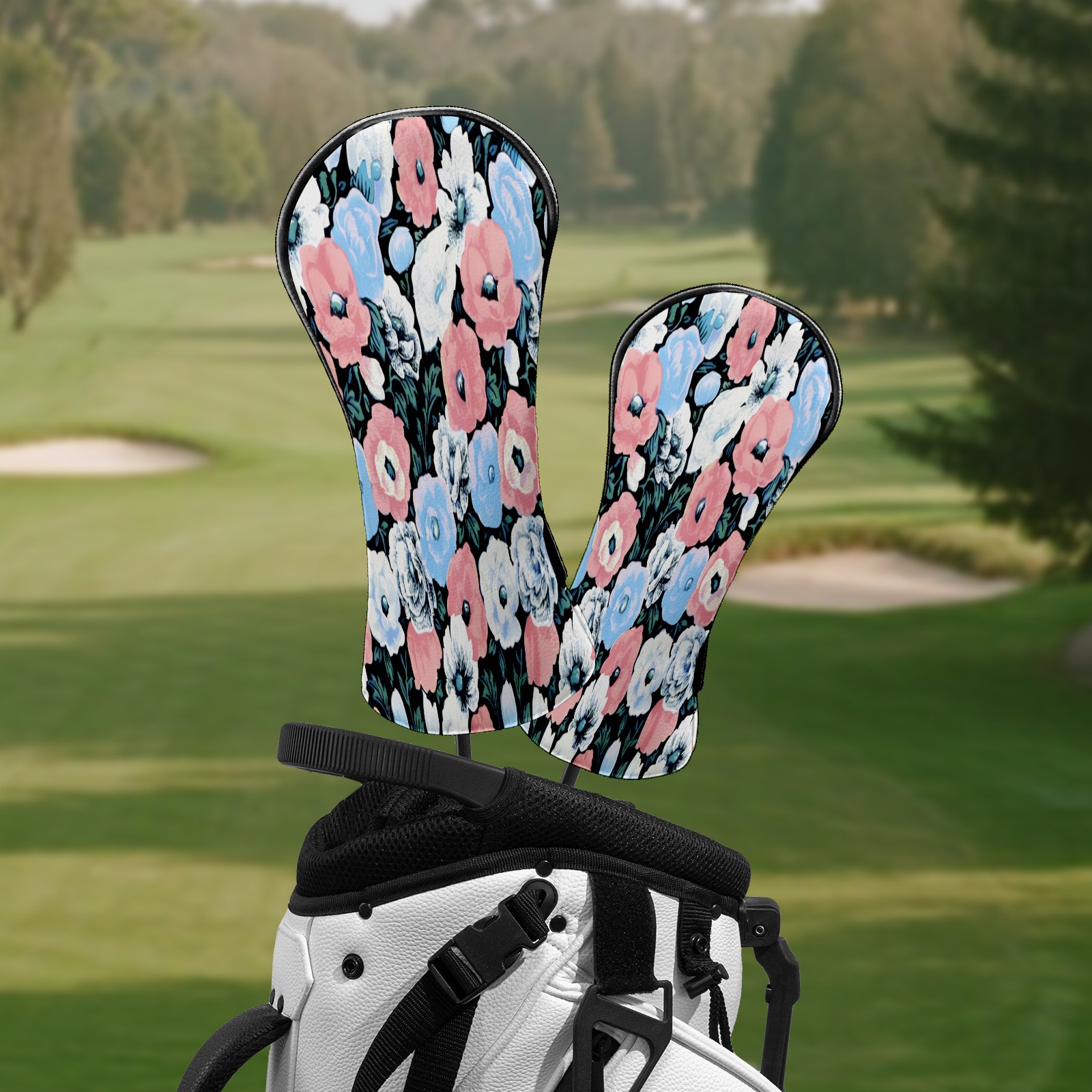Golf Head Covers for Woods and Driver Waterproof Leather Golf Club Head Covers for Women Men Golf Driver Fairway Wood Headcover Soft-Toned Flower Mural