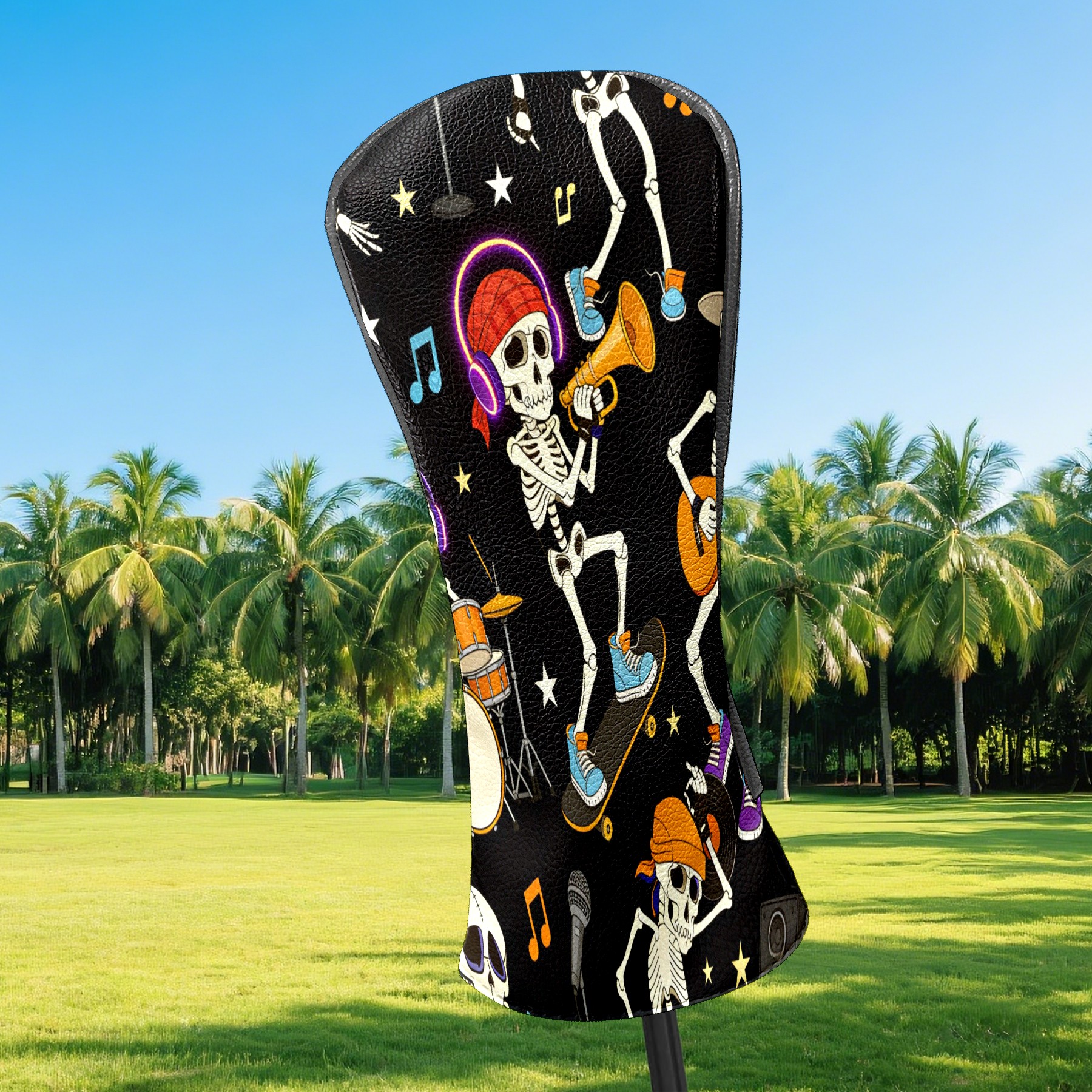 Golf Head Covers for Woods and Driver Waterproof Leather Golf Club Head Covers for Women Men Golf Driver Fairway Wood Headcover Skull Performance Art
