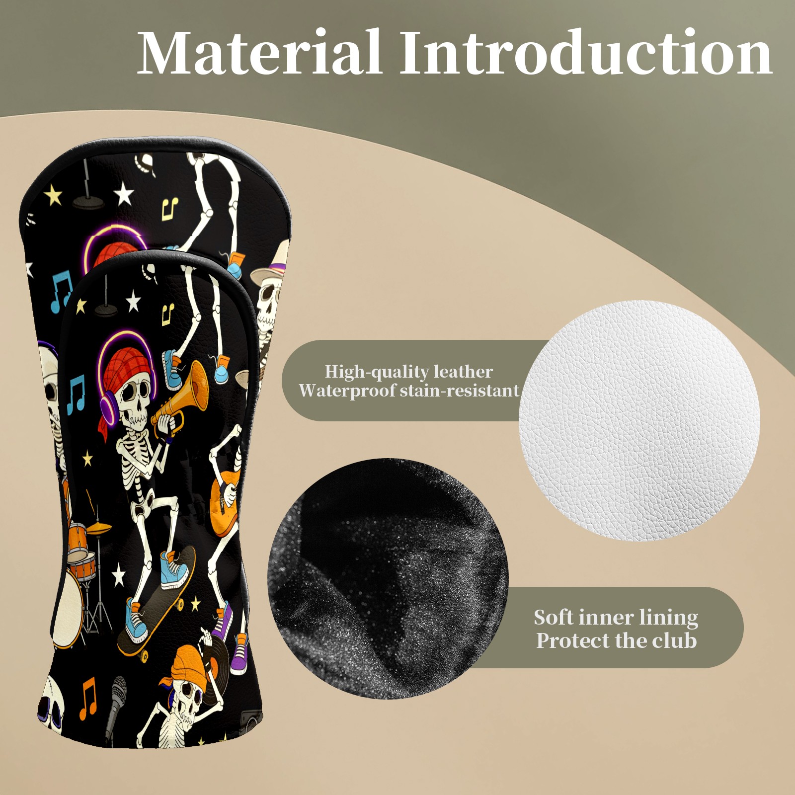 <p>This cover is made of top grade PU leather, which is wear-resistant, waterproof and stain-resistant, and can easily withstand the wind, rain and daily wear and tear; the velvet lining gently wraps around the cover, cushioning the impact and eliminating scratches and abrasions. The velvet lining cushions impacts and prevents scratches and abrasions. Surface stains wipe clean and the tear-resistant design lasts as long as new. Dual size fits all types of clubs, simple and advanced texture design, is a good choice for birthday and holiday gift.</p>