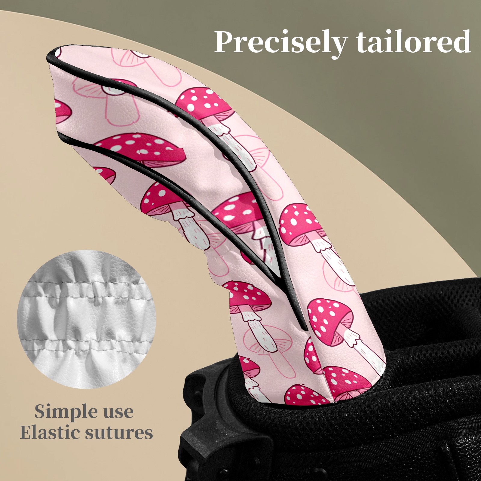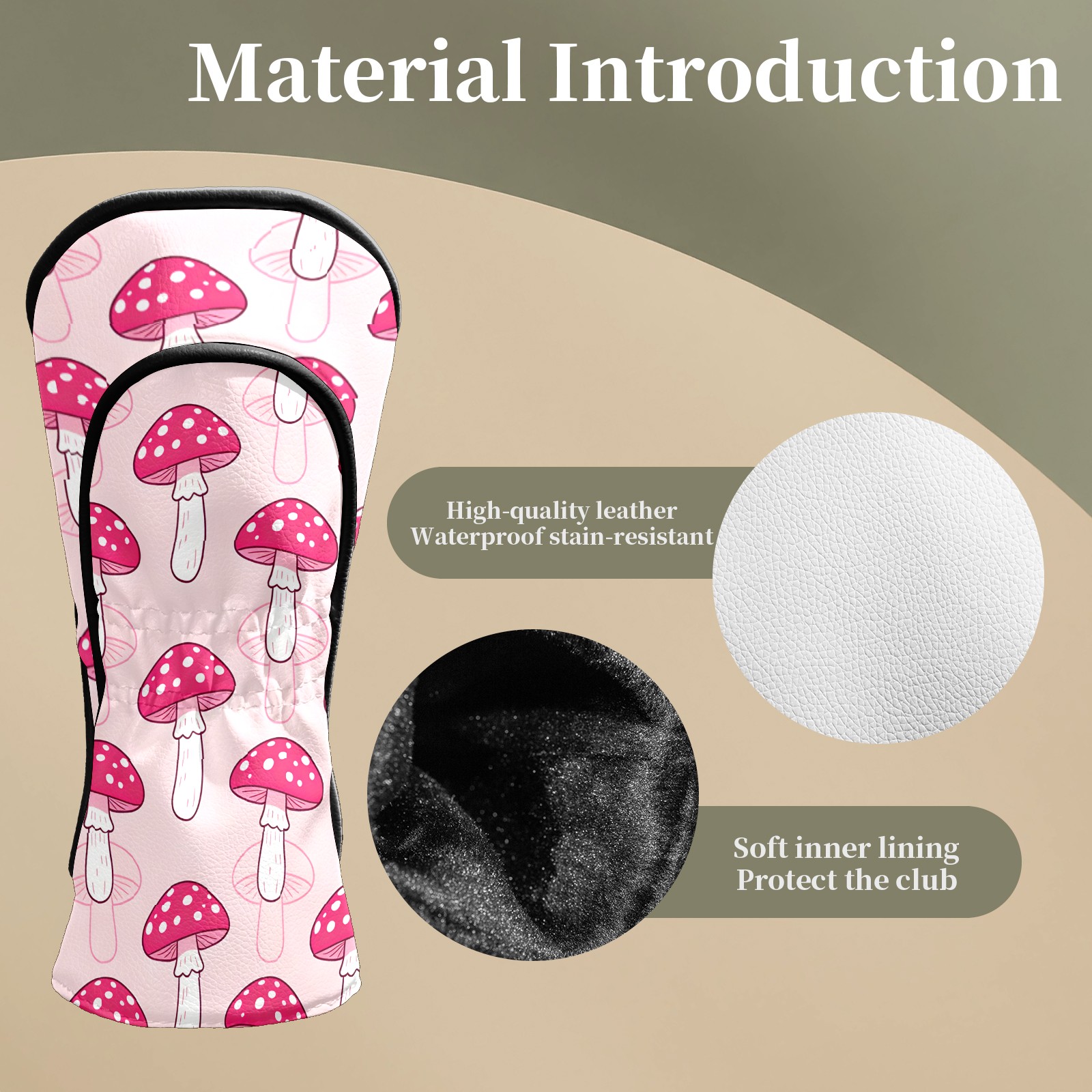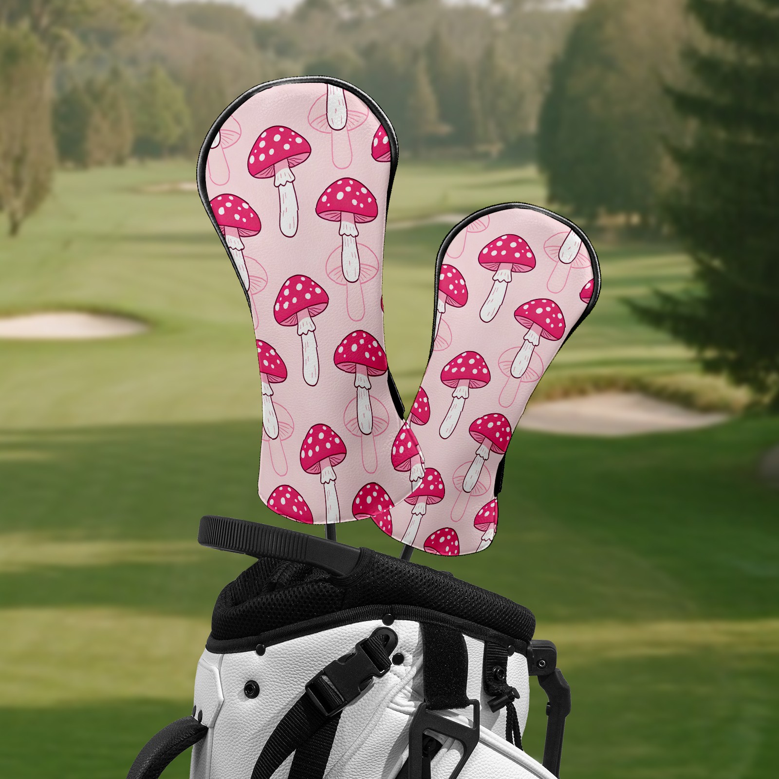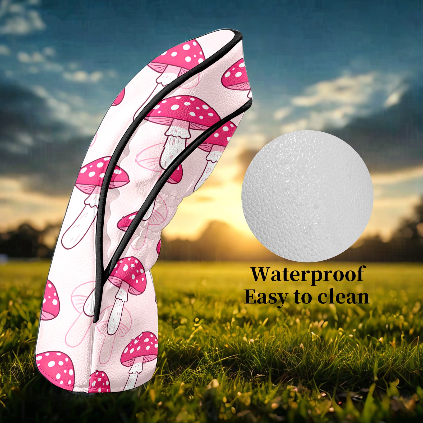 Golf Club Covers Pink Mushroom Pattern 1 DriverHeadcover, Leather Golf Club Head Covers for Driver Fairway Woods Waterproof Golf Headcovers with Anti-Scratch Lining Fits Most Clubs