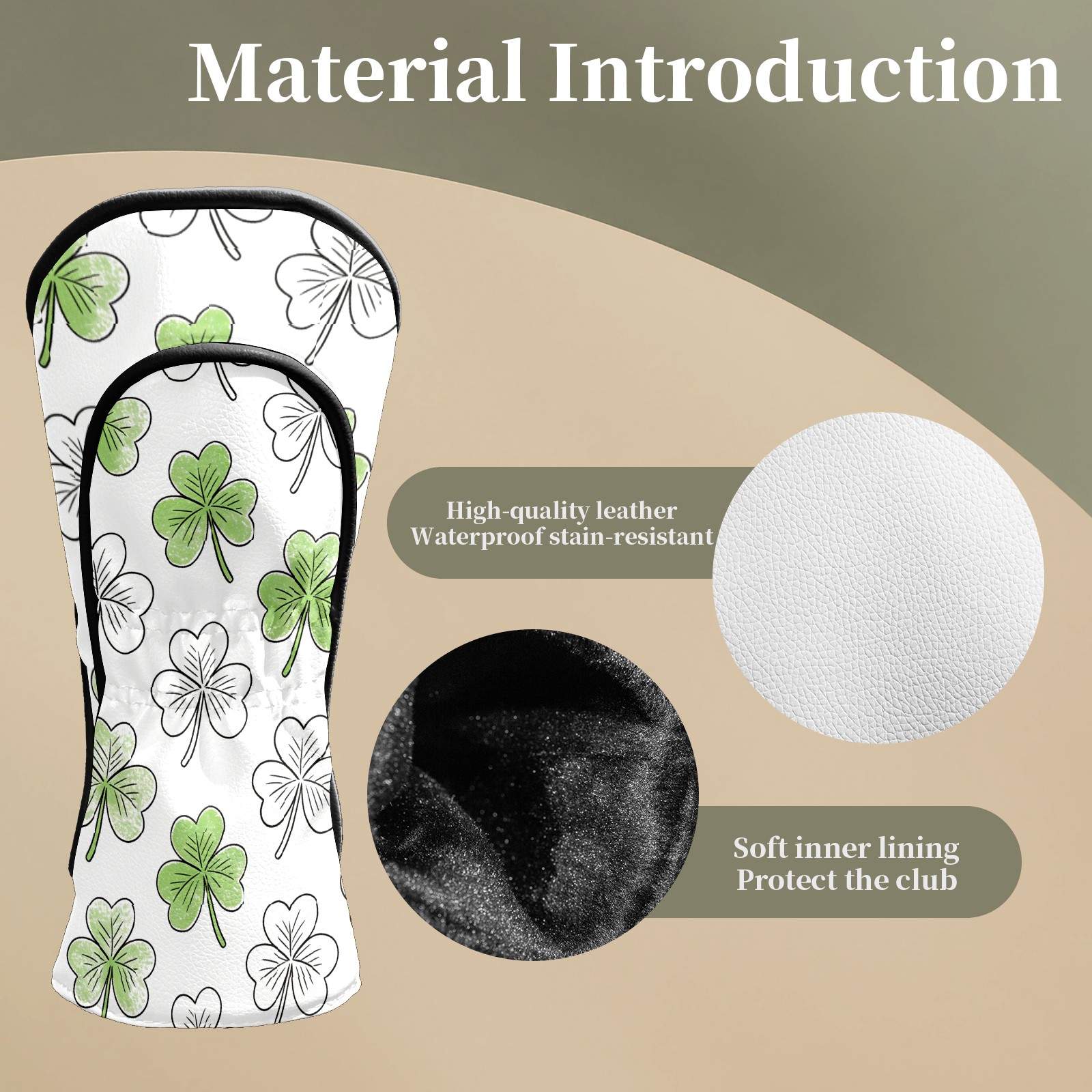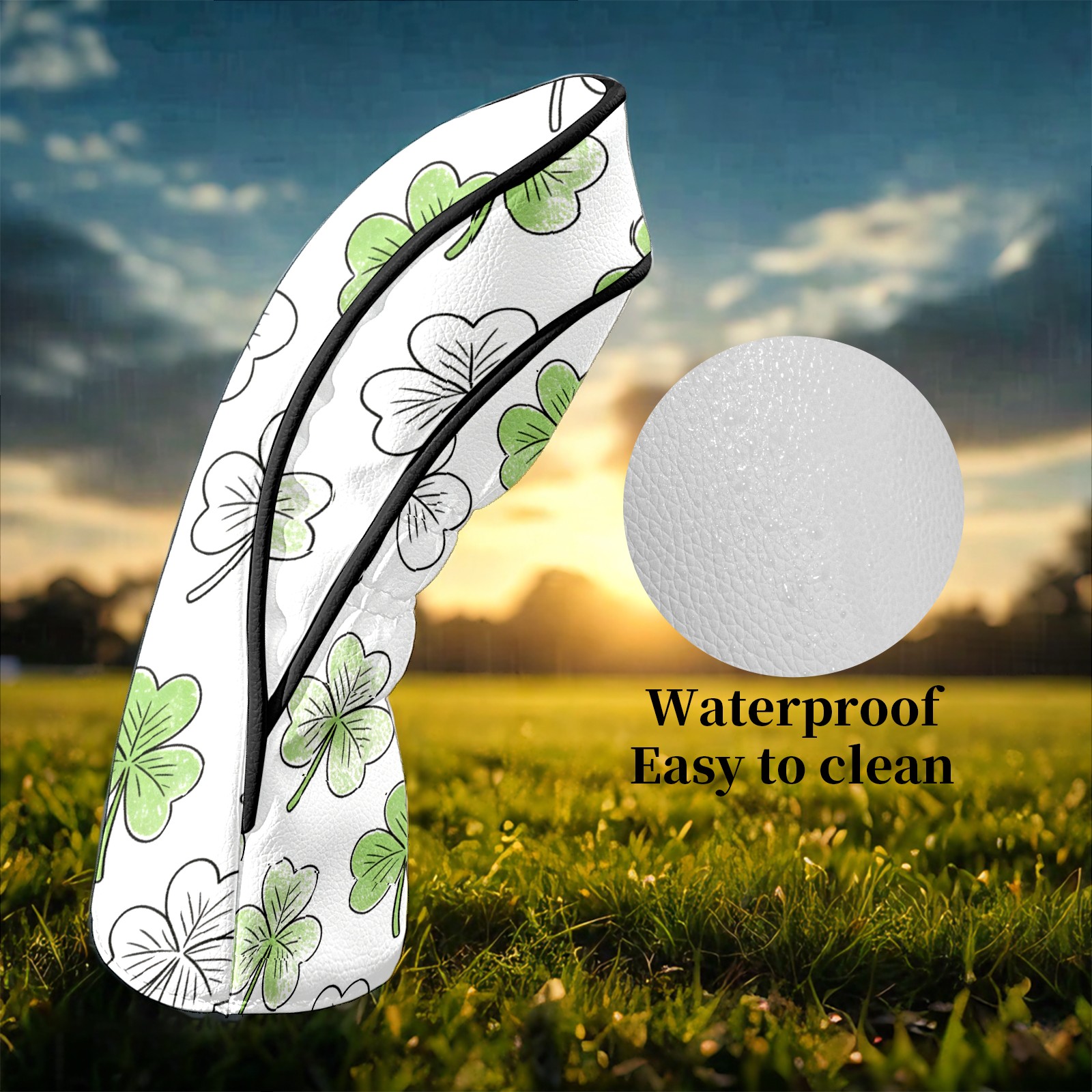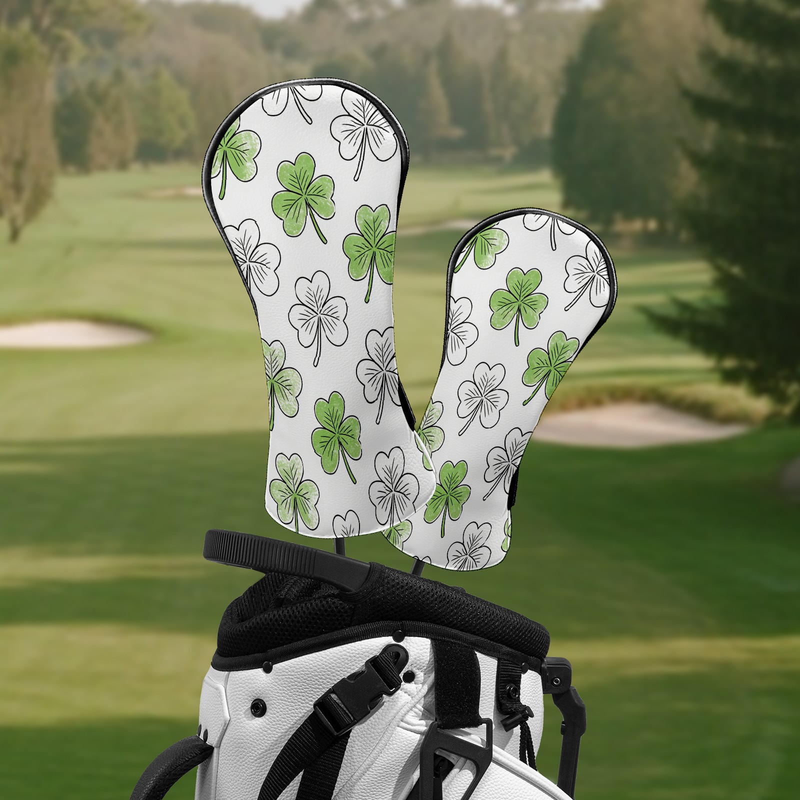Golf Club Covers White Clover 2 DriverHeadcover, Leather Golf Club Head Covers for Driver Fairway Woods Waterproof Golf Headcovers with Anti-Scratch Lining Fits Most Clubs