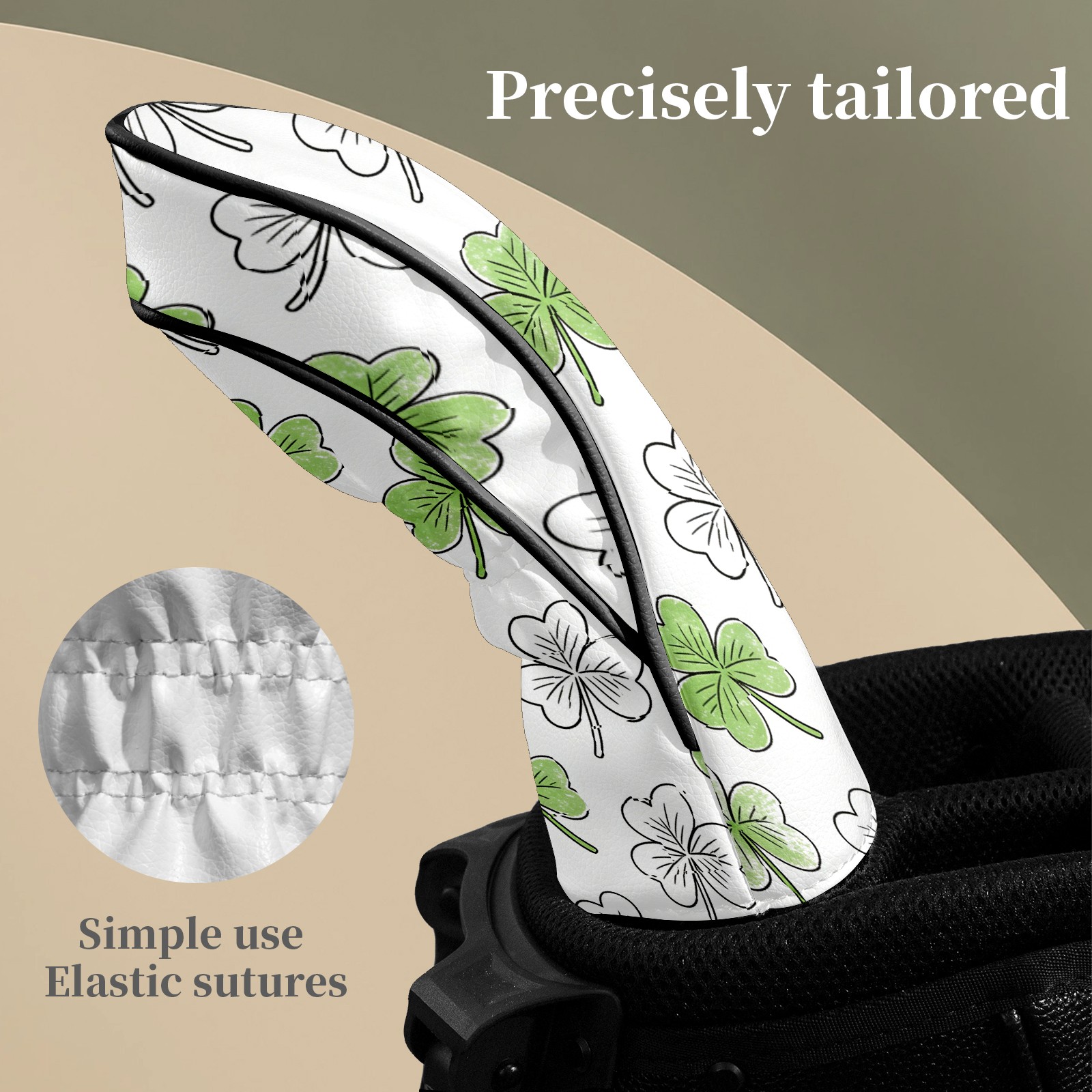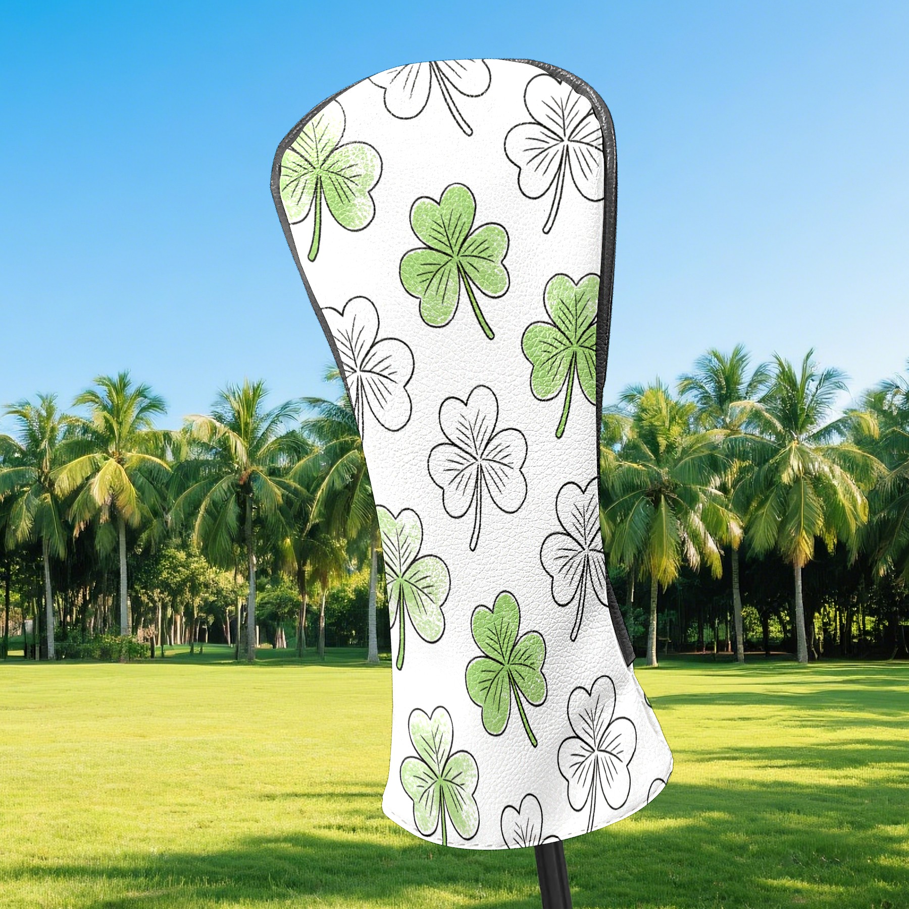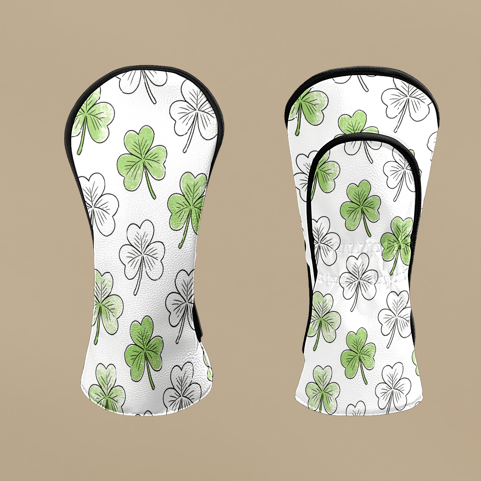 Golf Club Covers White Clover 2 DriverHeadcover, Leather Golf Club Head Covers for Driver Fairway Woods Waterproof Golf Headcovers with Anti-Scratch Lining Fits Most Clubs