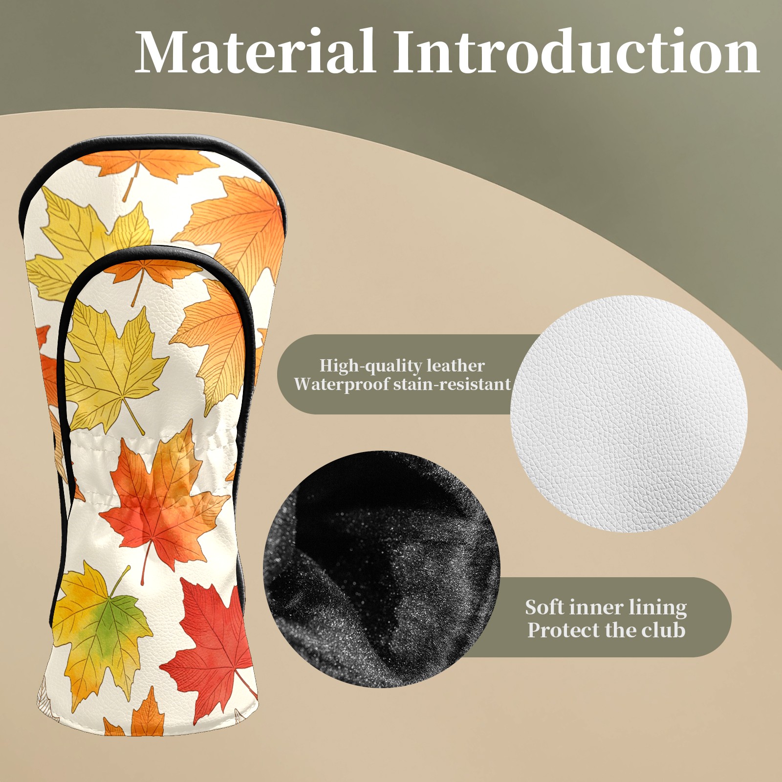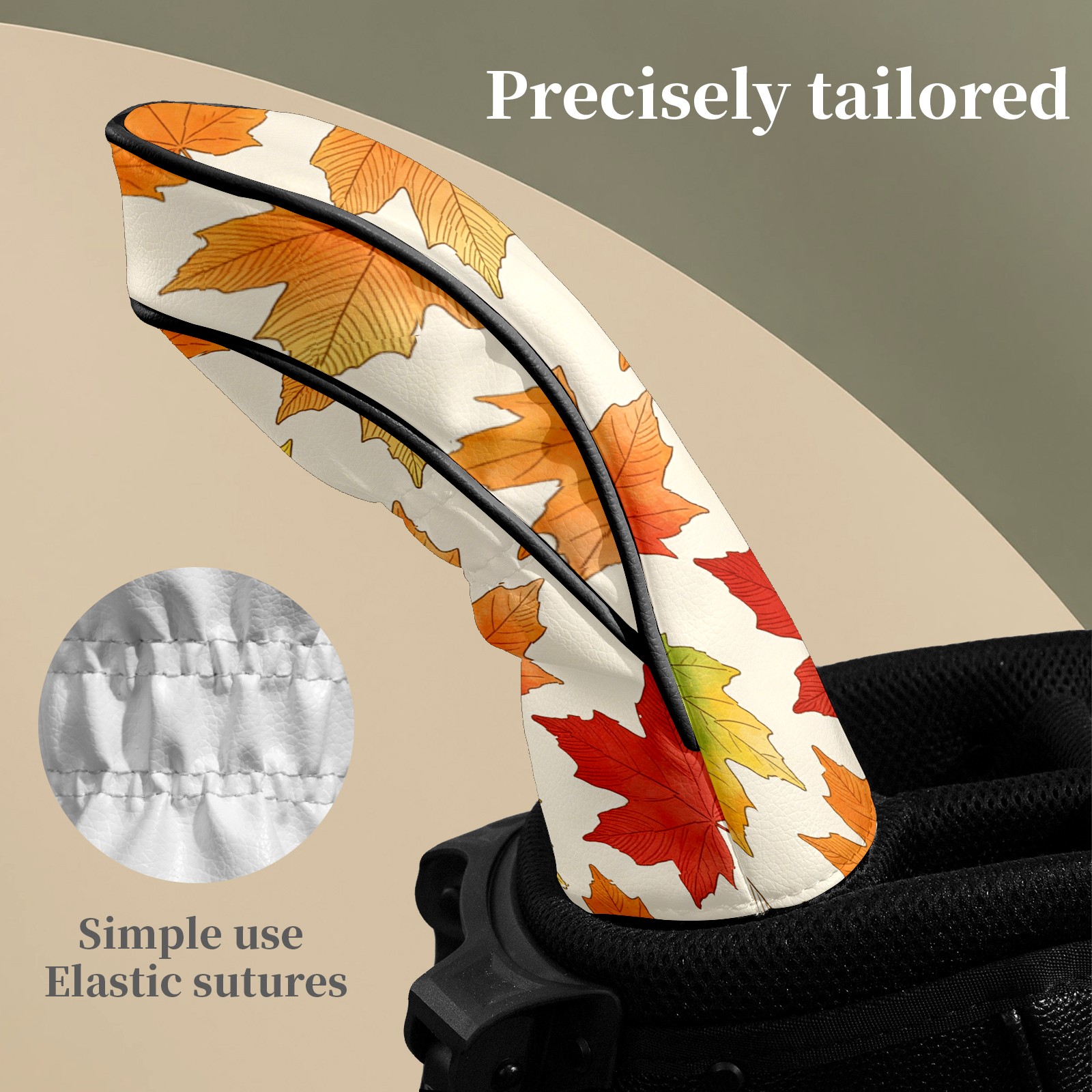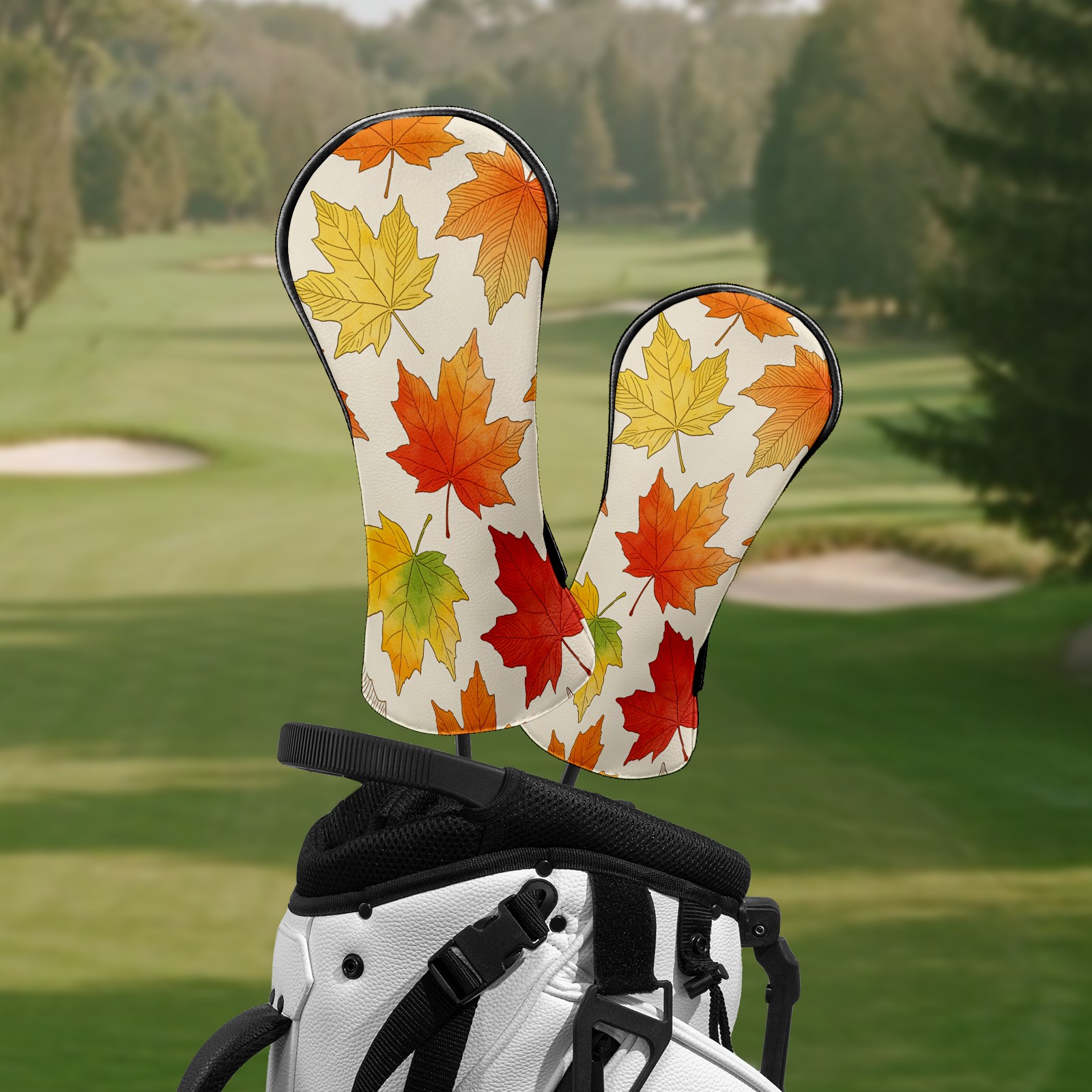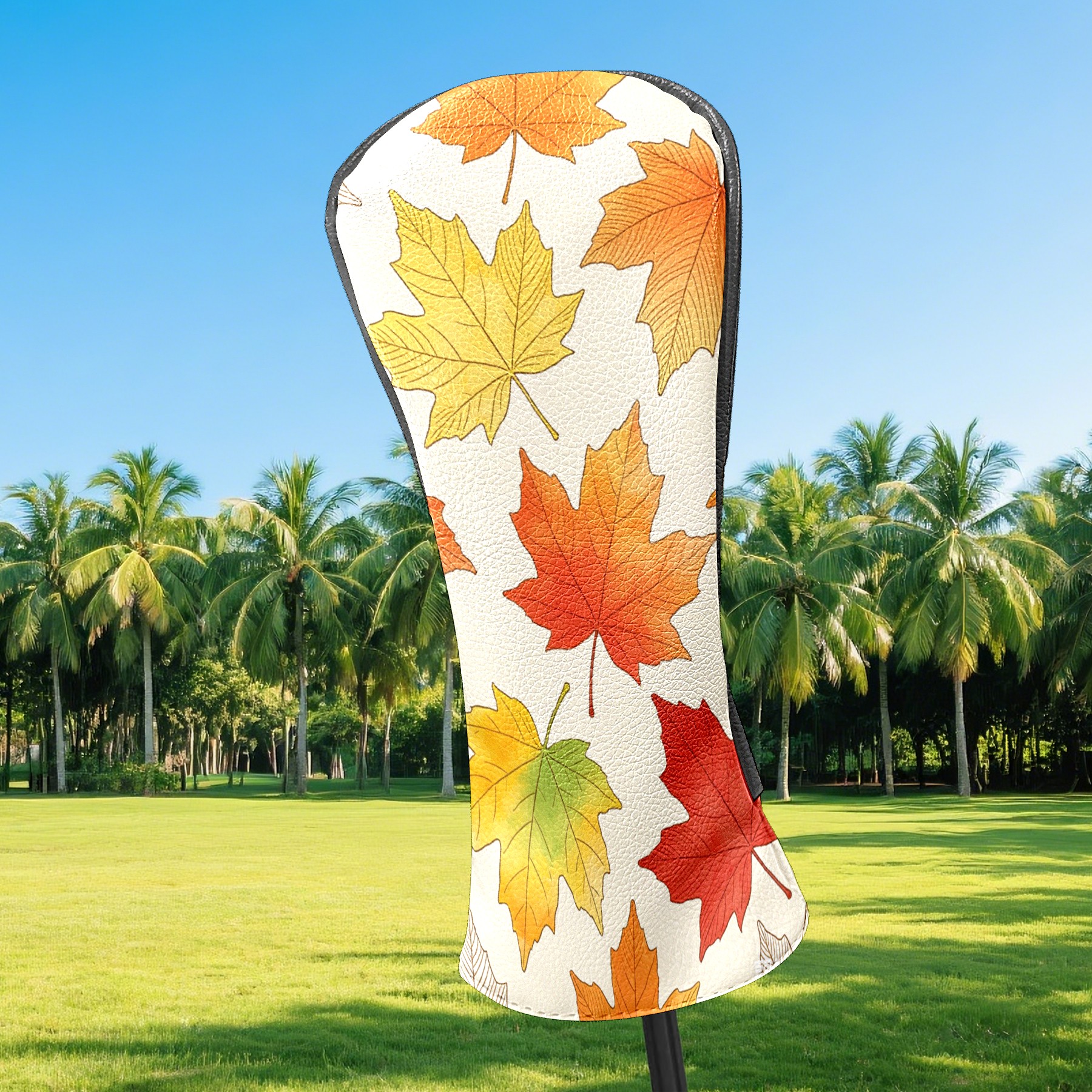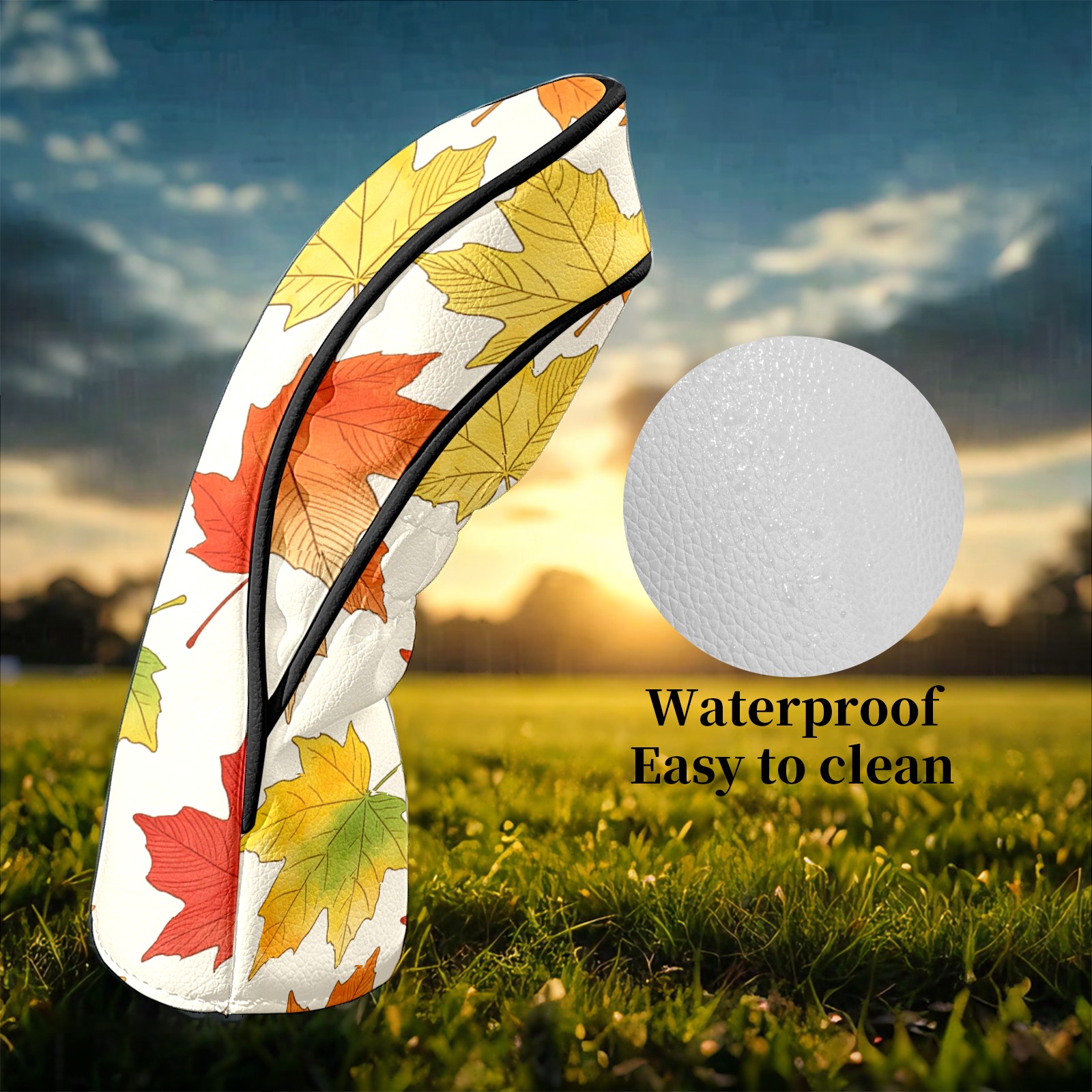 Golf Club Covers Colorful Maple Leaves 1 DriverHeadcover, Leather Golf Club Head Covers for Driver Fairway Woods Waterproof Golf Headcovers with Anti-Scratch Lining Fits Most Clubs