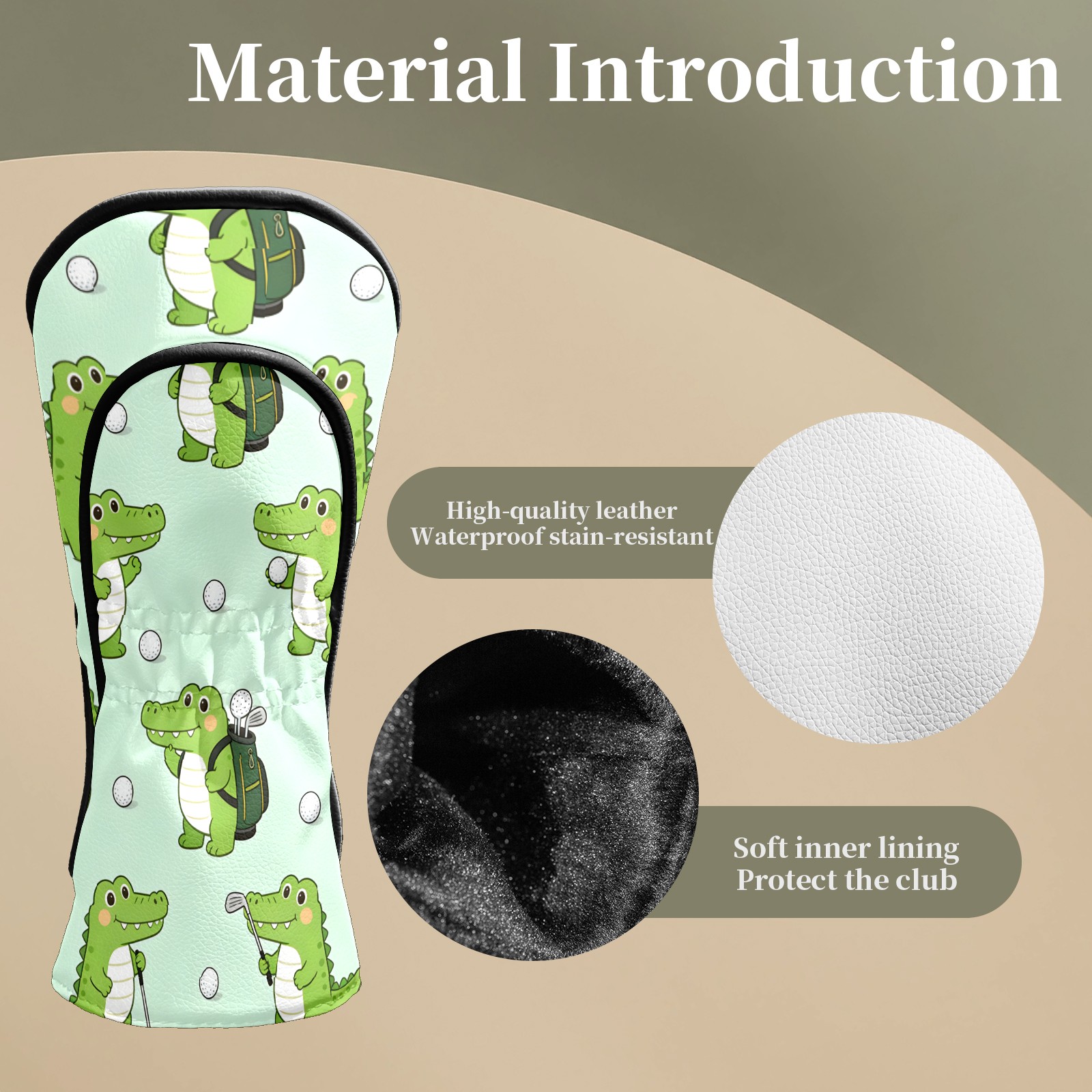 • <p>Crafted from premium PU leather, this golf club headcover boasts waterproof protection and daily wear resistance—built to last. Two elastic bands on the back keep it securely fastened to your club, no slipping, so your gear stays protected and looks great long-term.</p><p>Available in two perfect-fit sizes: Driver (5.9×14.1 inches) and Fairway Wood (4.3×10.2 inches), it works with most standard golf clubs. Plus, its unique, fun patterns add a stylish, personalized touch—making it both sleek and playful.</p><p>Ideal gift for family, friends, colleagues, or any golf lover. Perfect for birthdays, Mother’s Day, Christmas, Father’s Day, and more!</p>