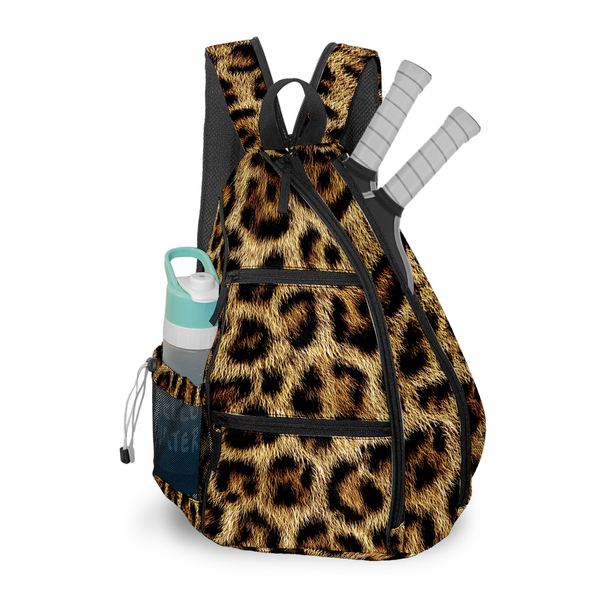 Pickleball Backpack for Women & Men Wild Leopard Brown - Multi-Functional Large Bag Fits 2-4 Paddles, Lightweight Convertible Backpack/Shoulder Bag, Durable Sports/Gym Gear Bag