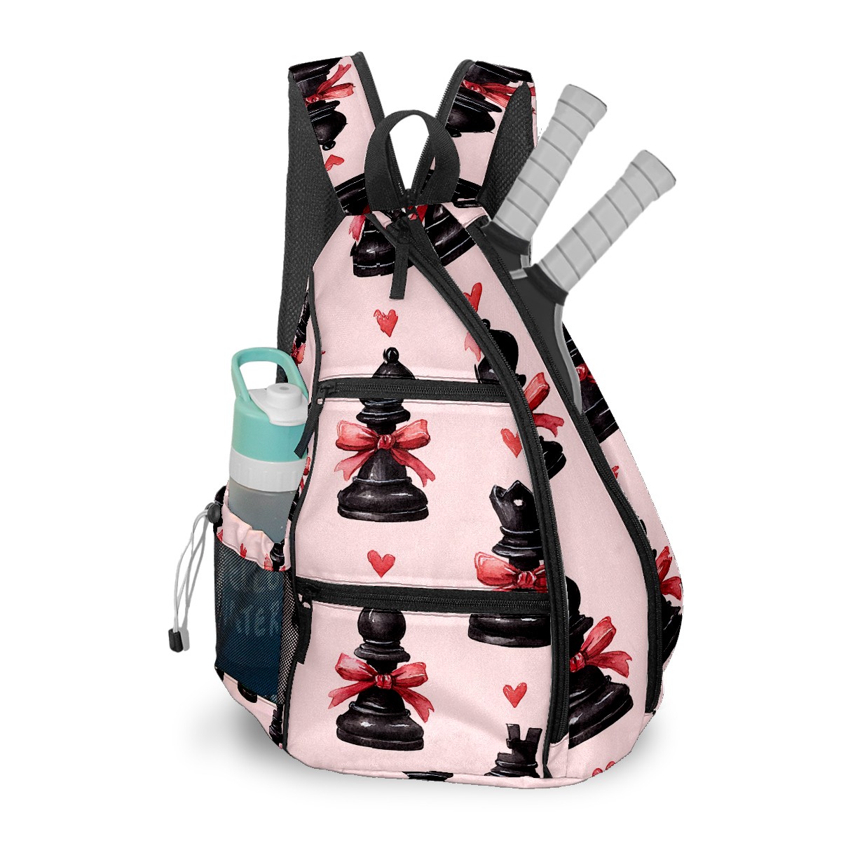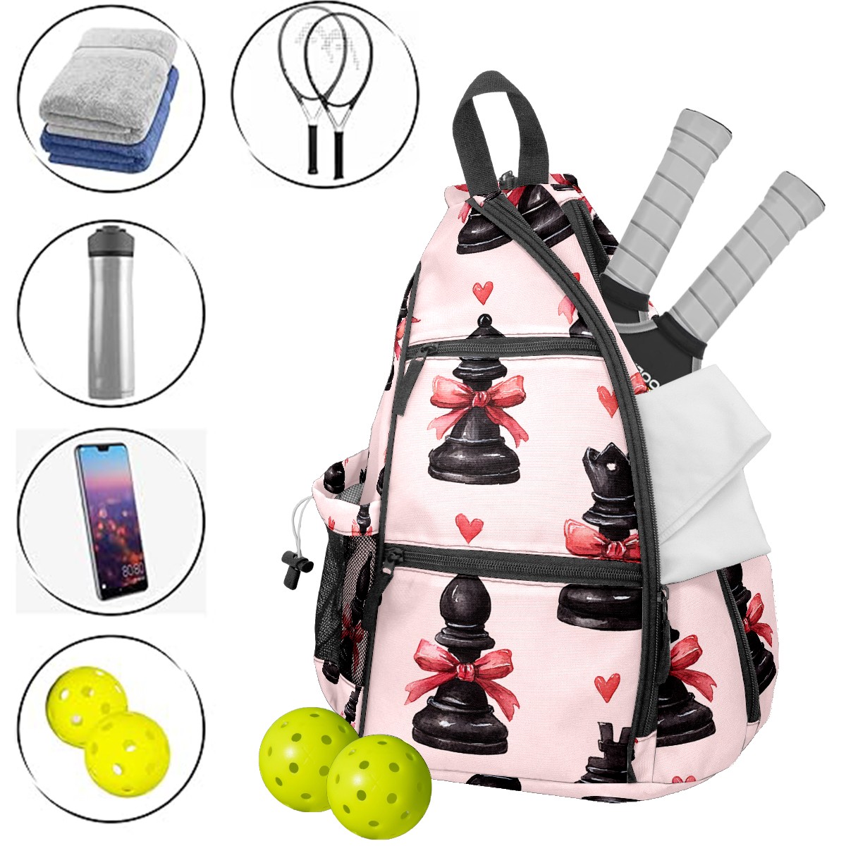 Pickleball Backpack for Women & Men Elegant Chess Black - Multi-Functional Large Bag Fits 2-4 Paddles, Lightweight Convertible Backpack/Shoulder Bag, Durable Sports/Gym Gear Bag