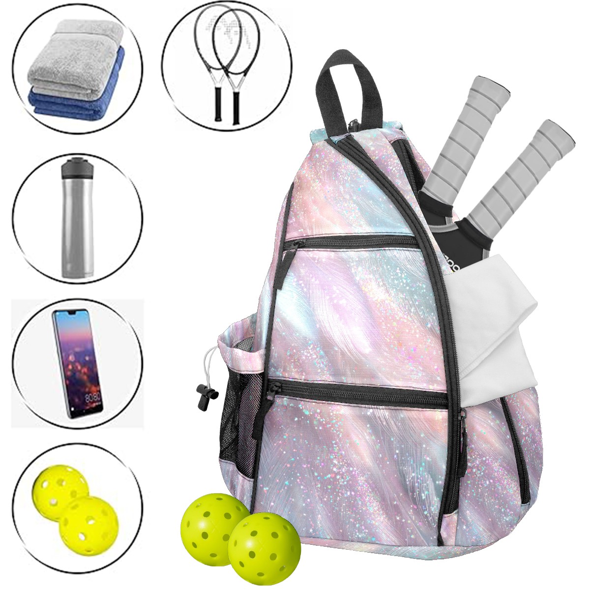 Pickleball Backpack for Women & Men Dreamy Iridescent Multi - Multi-Functional Large Bag Fits 2-4 Paddles, Lightweight Convertible Backpack/Shoulder Bag, Durable Sports/Gym Gear Bag