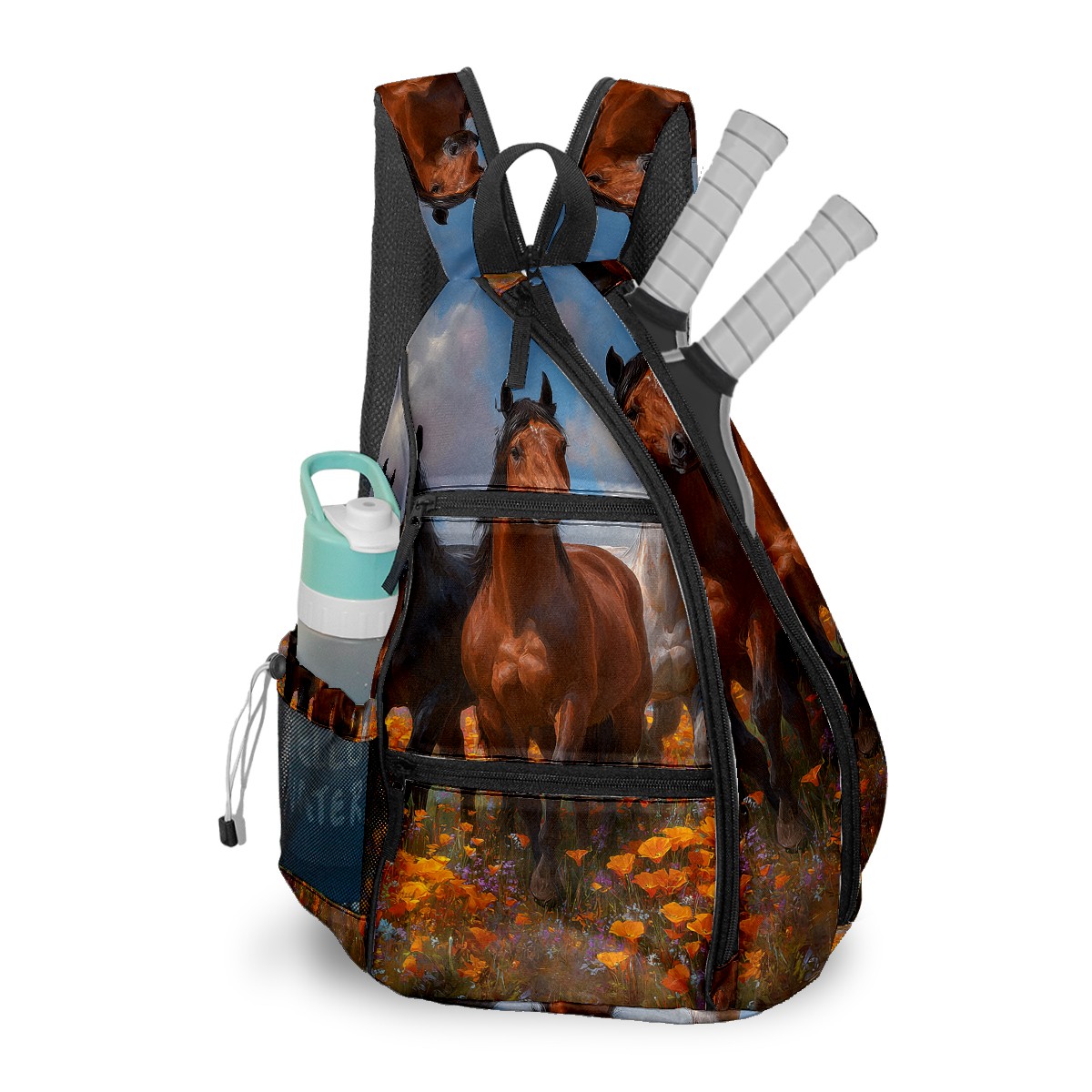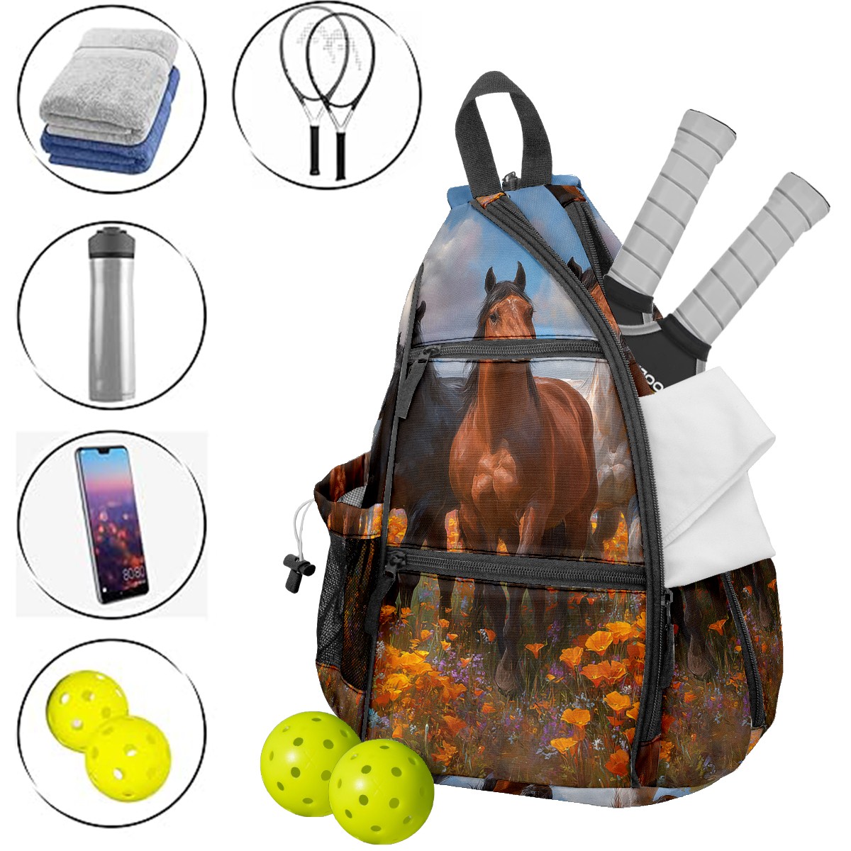 Pickleball Backpack for Women & Men Elegant Horse Yellow - Multi-Functional Large Bag Fits 2-4 Paddles, Lightweight Convertible Backpack/Shoulder Bag, Durable Sports/Gym Gear Bag