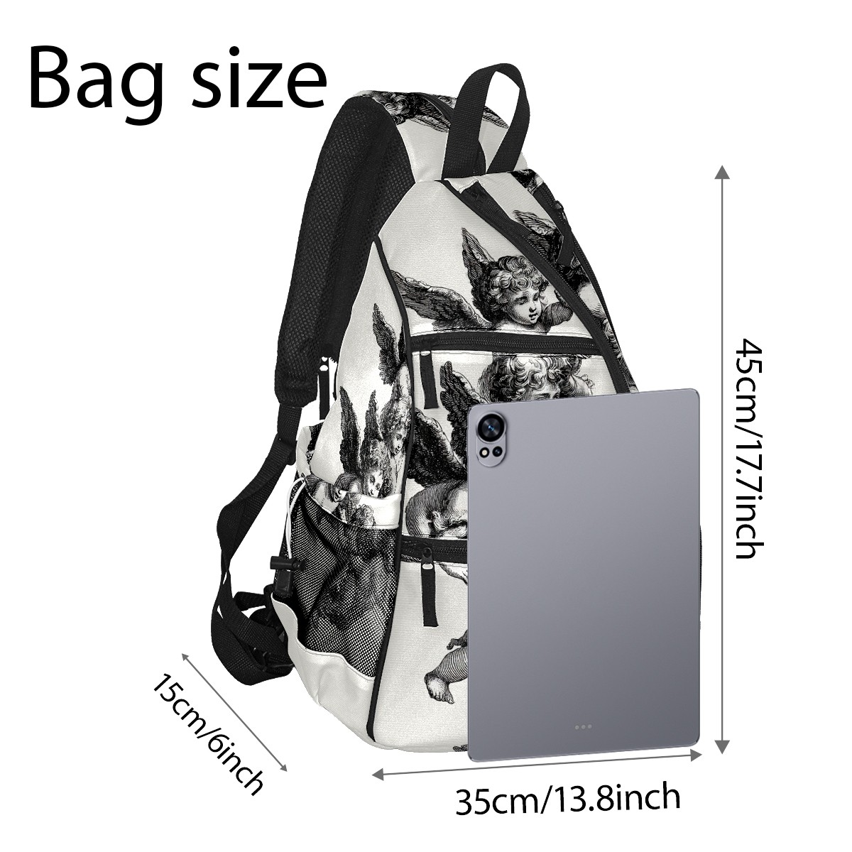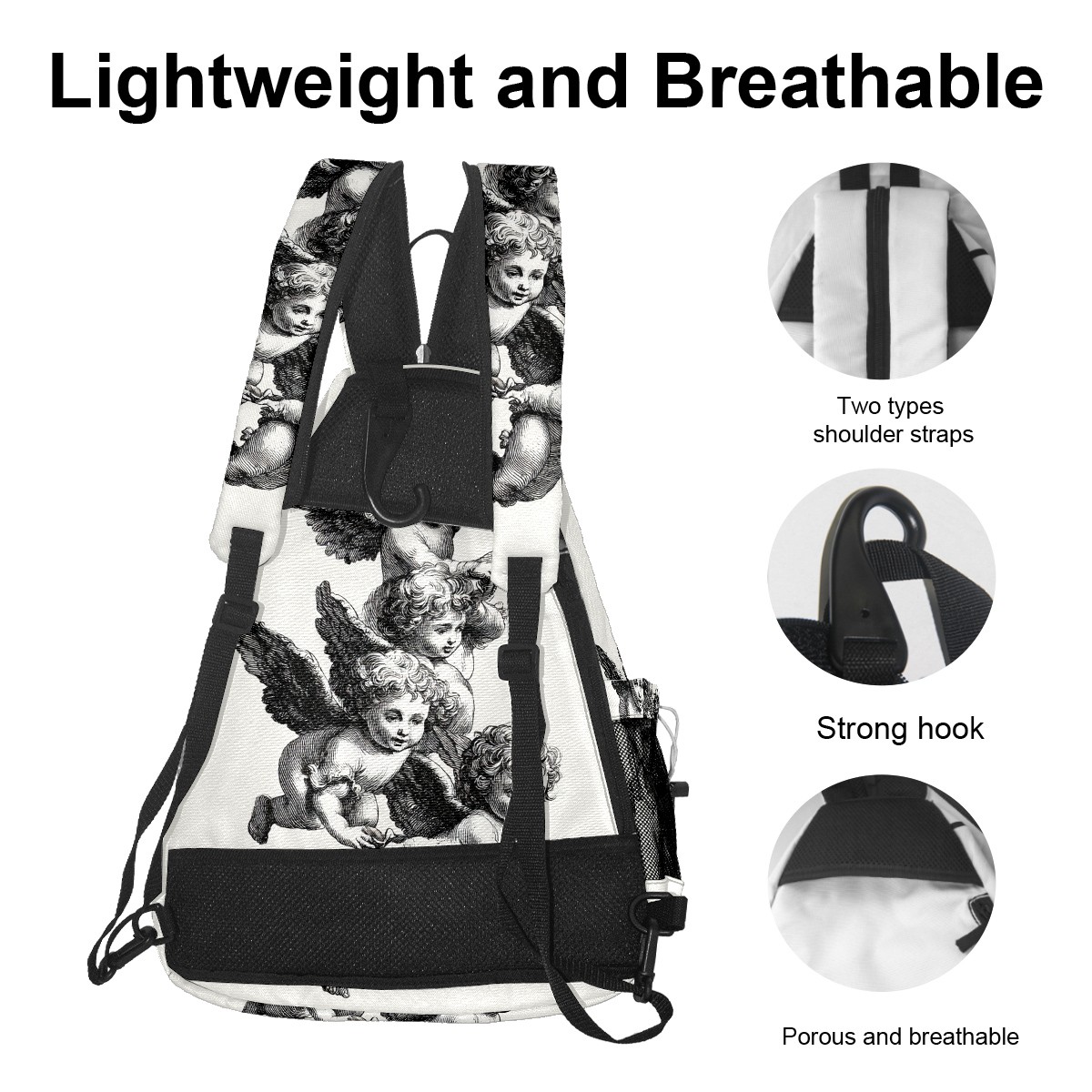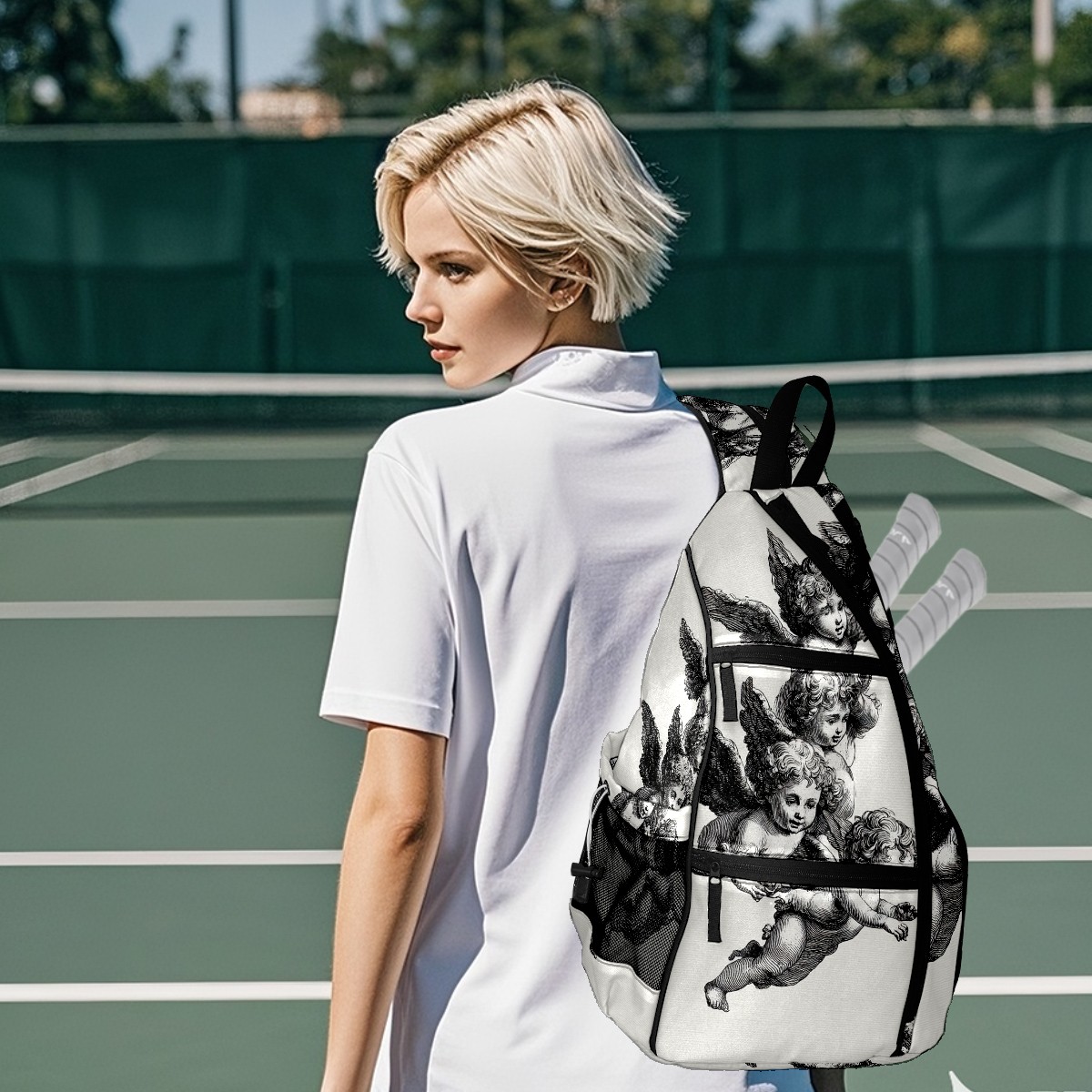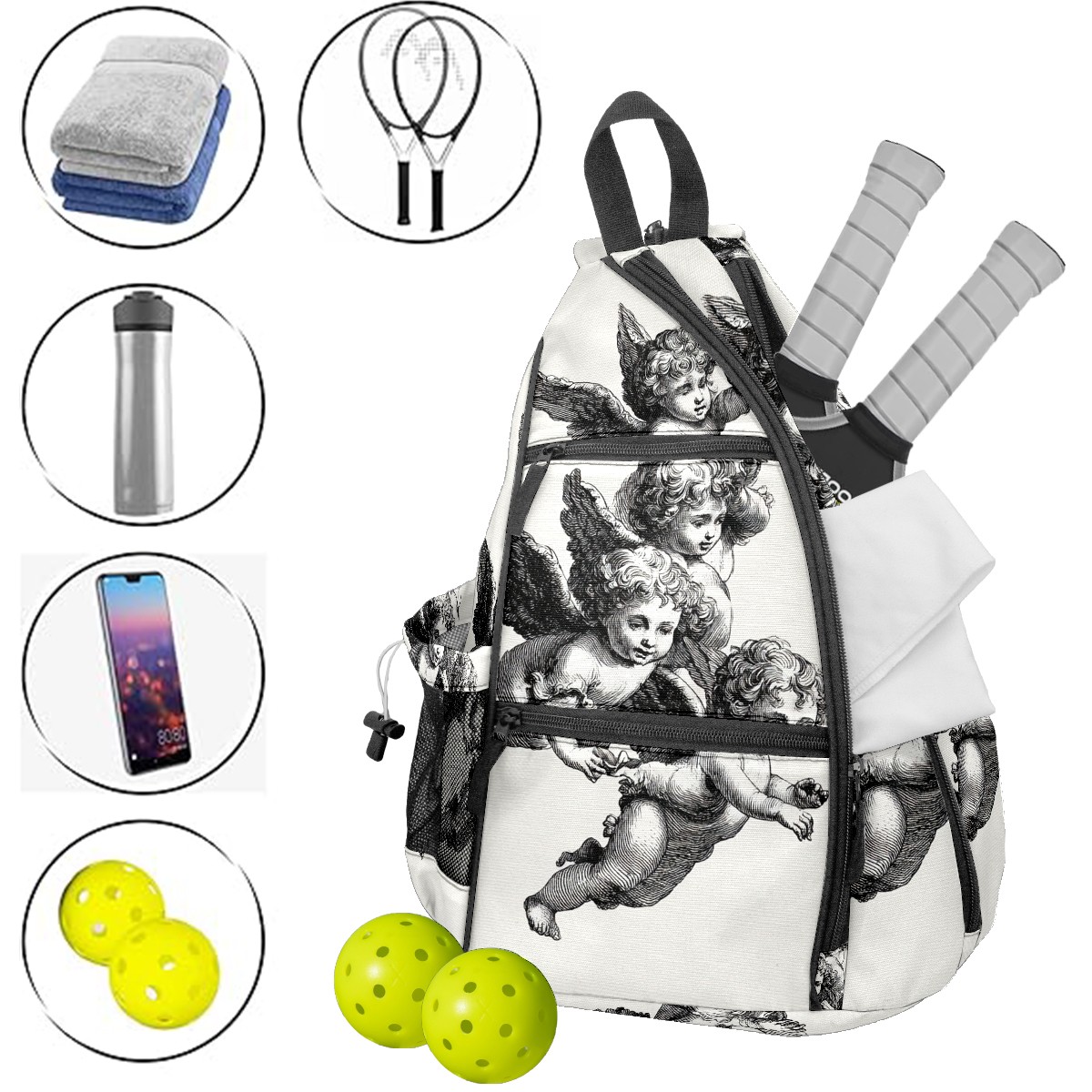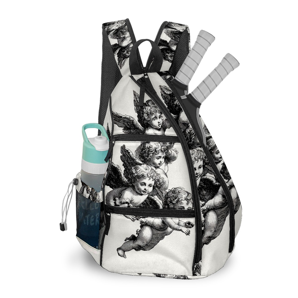 Pickleball Backpack for Women & Men Vintage Angel Black - Multi-Functional Large Bag Fits 2-4 Paddles, Lightweight Convertible Backpack/Shoulder Bag, Durable Sports/Gym Gear Bag