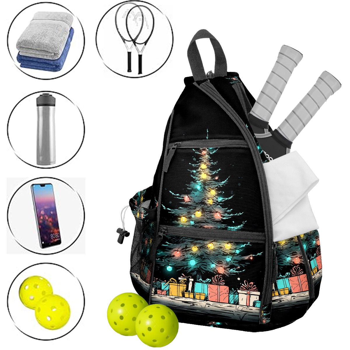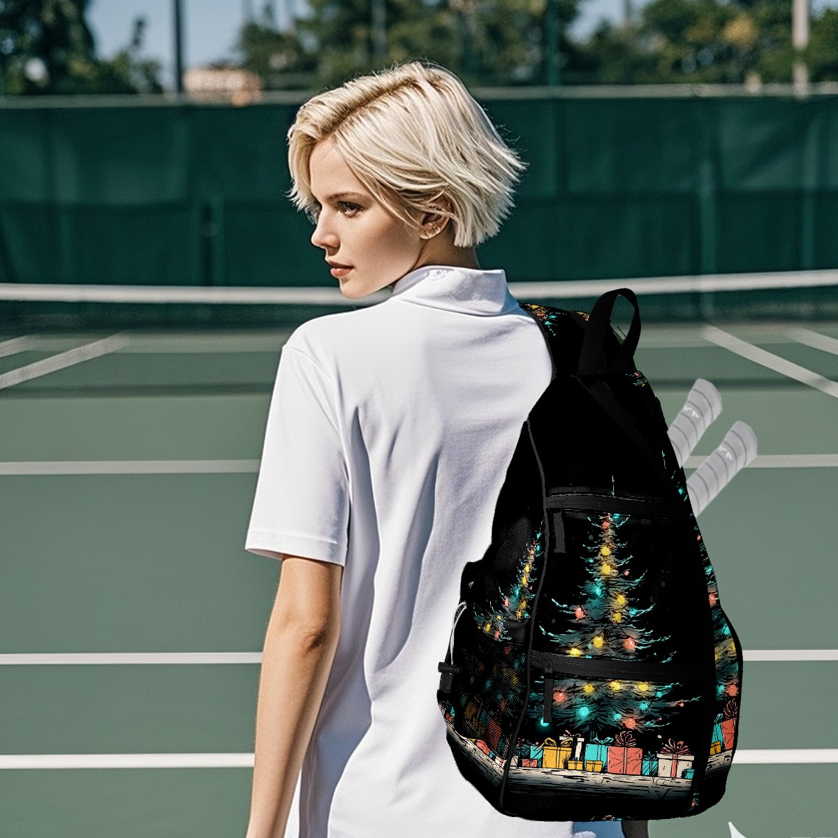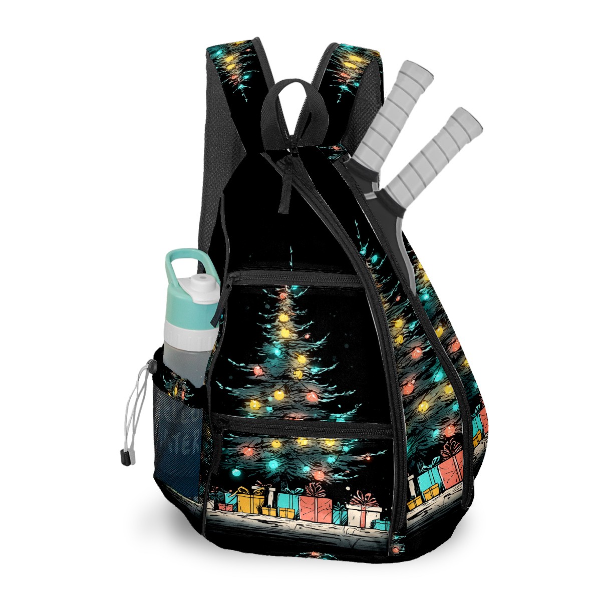 Pickleball Backpack for Women & Men Christmas Tree Black - Multi-Functional Large Bag Fits 2-4 Paddles, Lightweight Convertible Backpack/Shoulder Bag, Durable Sports/Gym Gear Bag