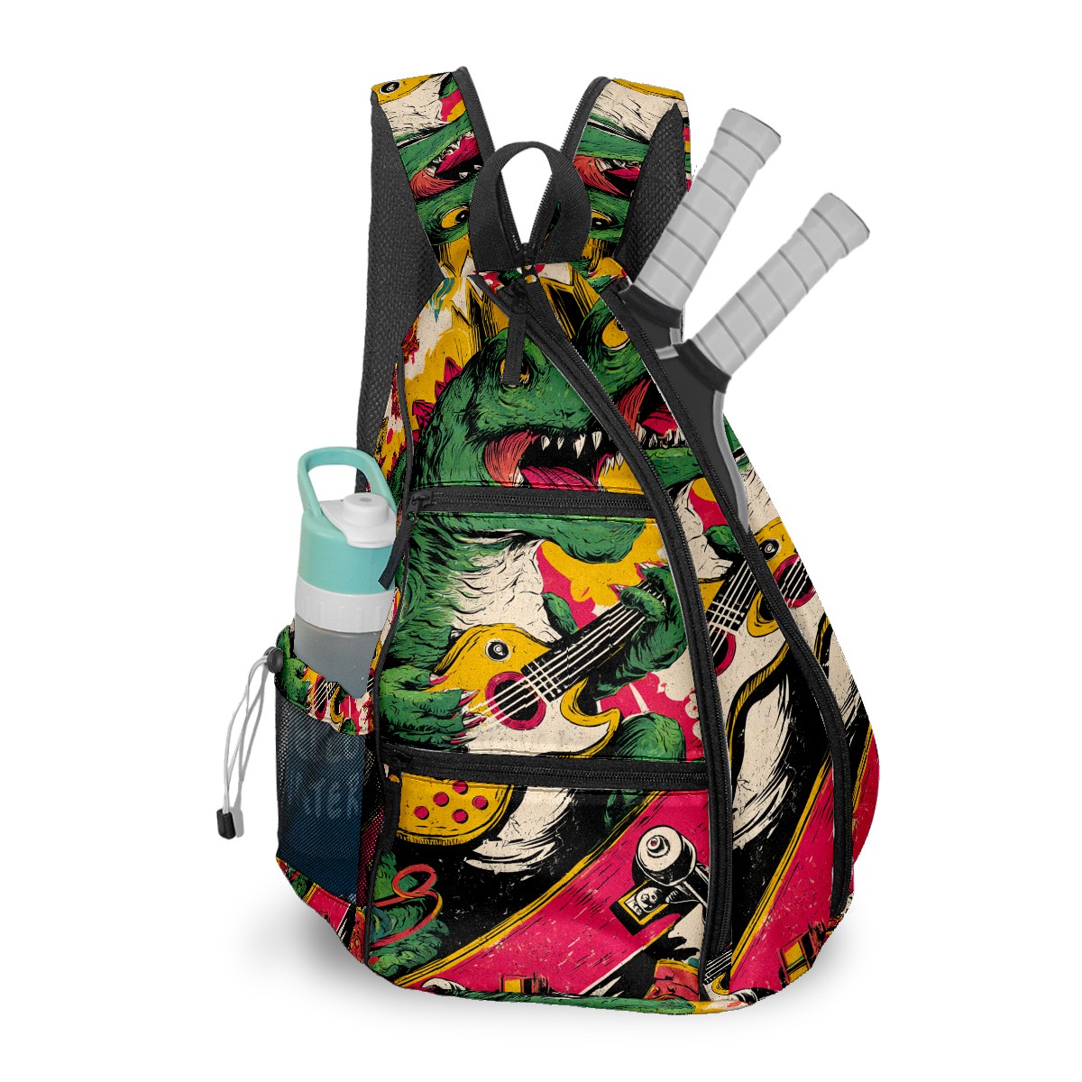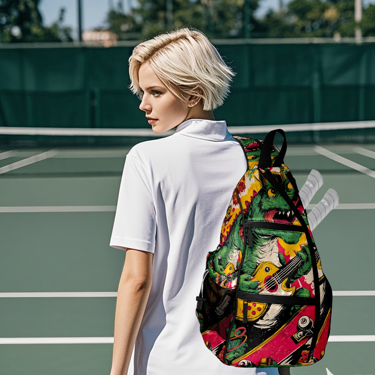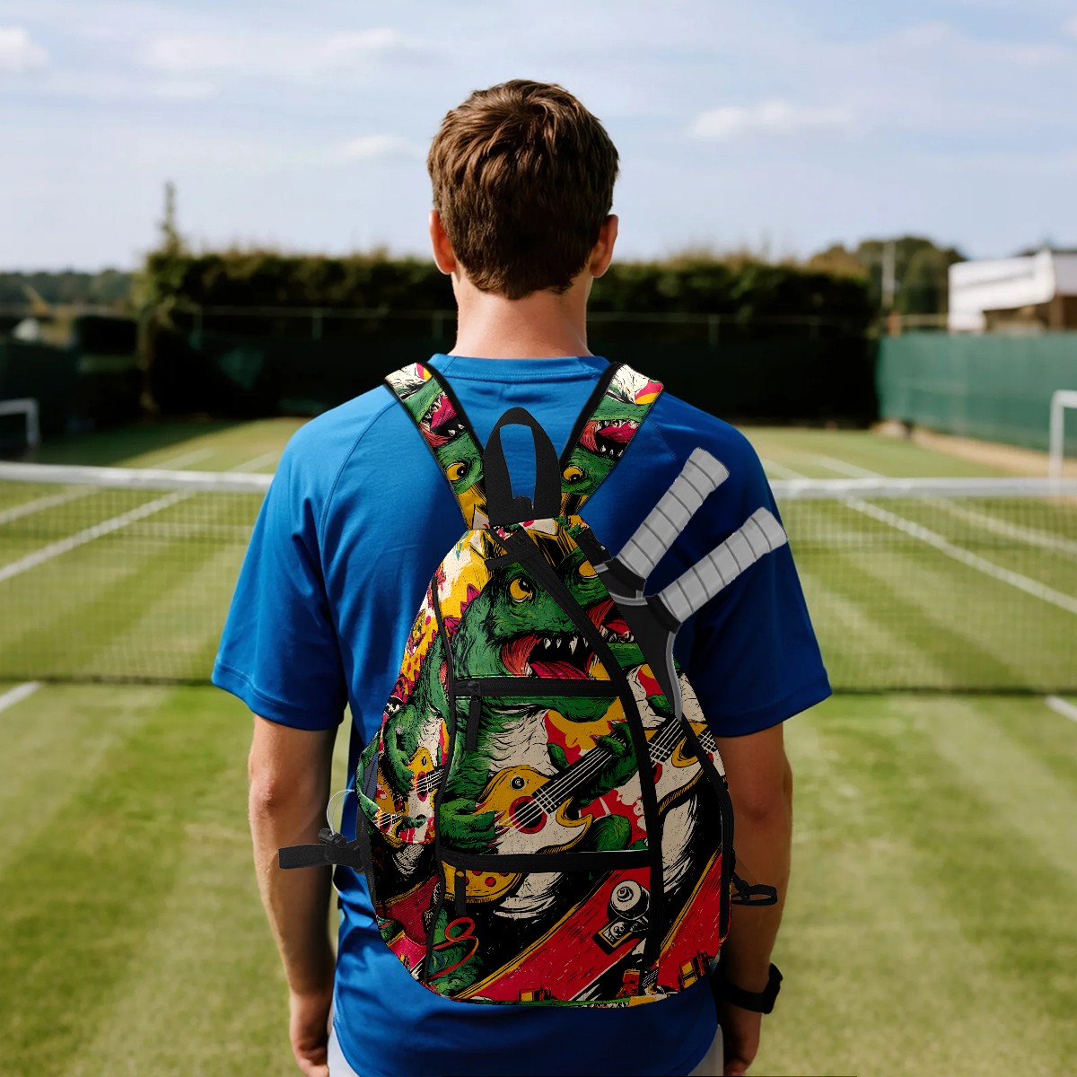 Tennis & Pickleball Backpack for Women Men | Padded 2-3 Paddle Compartment | Multi-Pocket Gym Backpack with Water Bottle Holder | Cool Dinosaur Green
