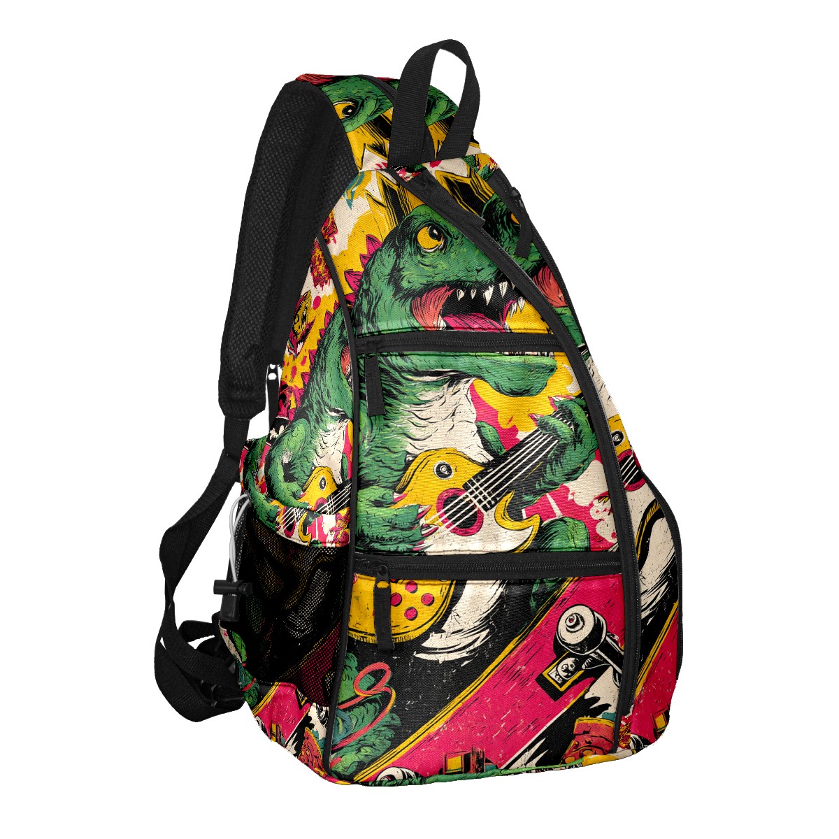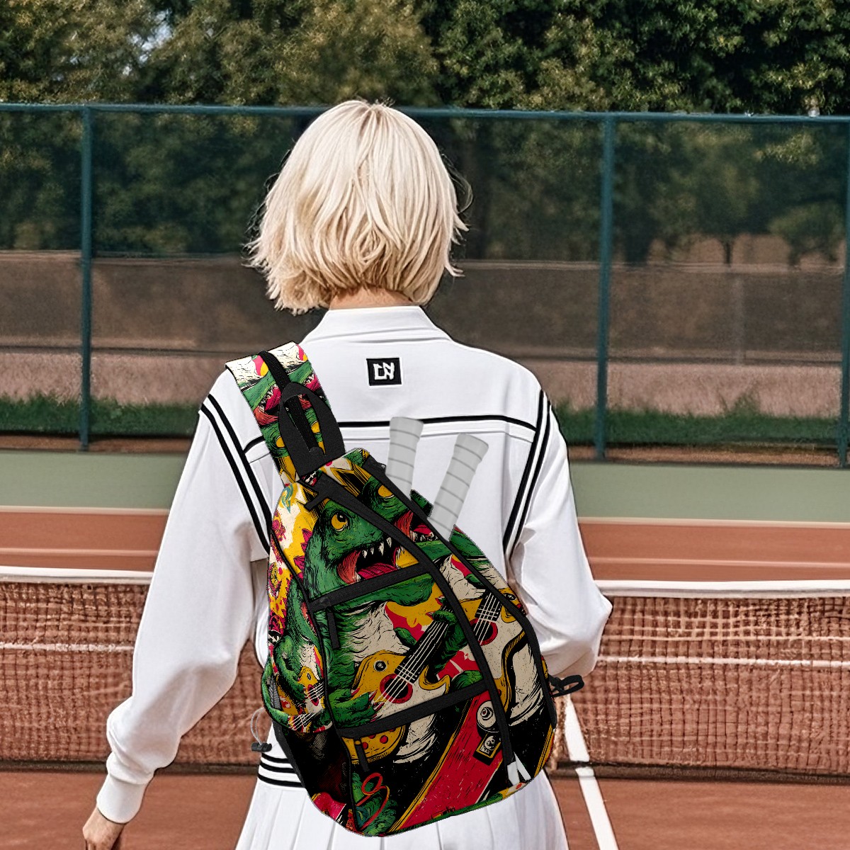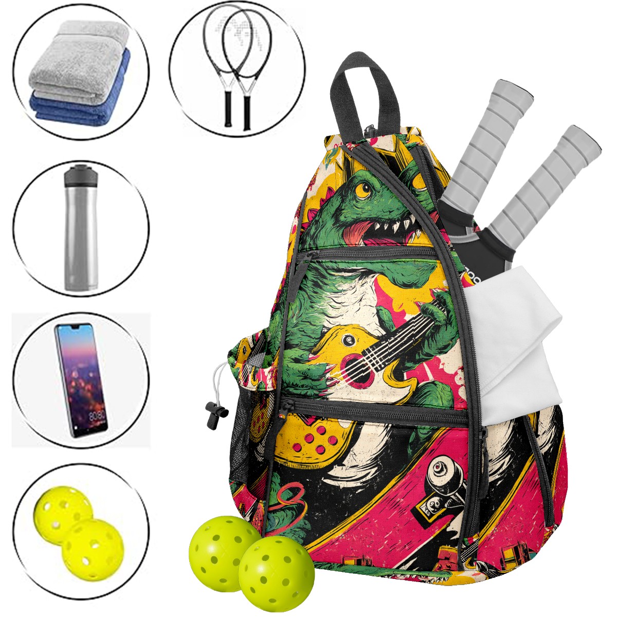 Tennis & Pickleball Backpack for Women Men | Padded 2-3 Paddle Compartment | Multi-Pocket Gym Backpack with Water Bottle Holder | Cool Dinosaur Green