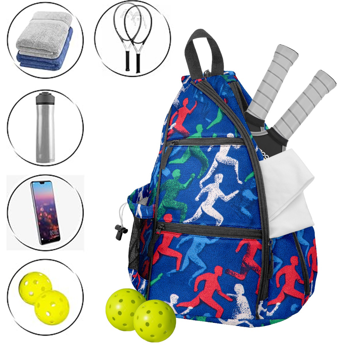 Tennis & Pickleball Backpack for Women Men | Padded 2-3 Paddle Compartment | Multi-Pocket Gym Backpack with Water Bottle Holder | Vibrant Runner Blue