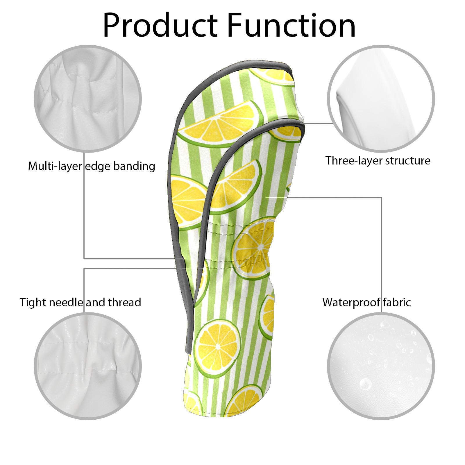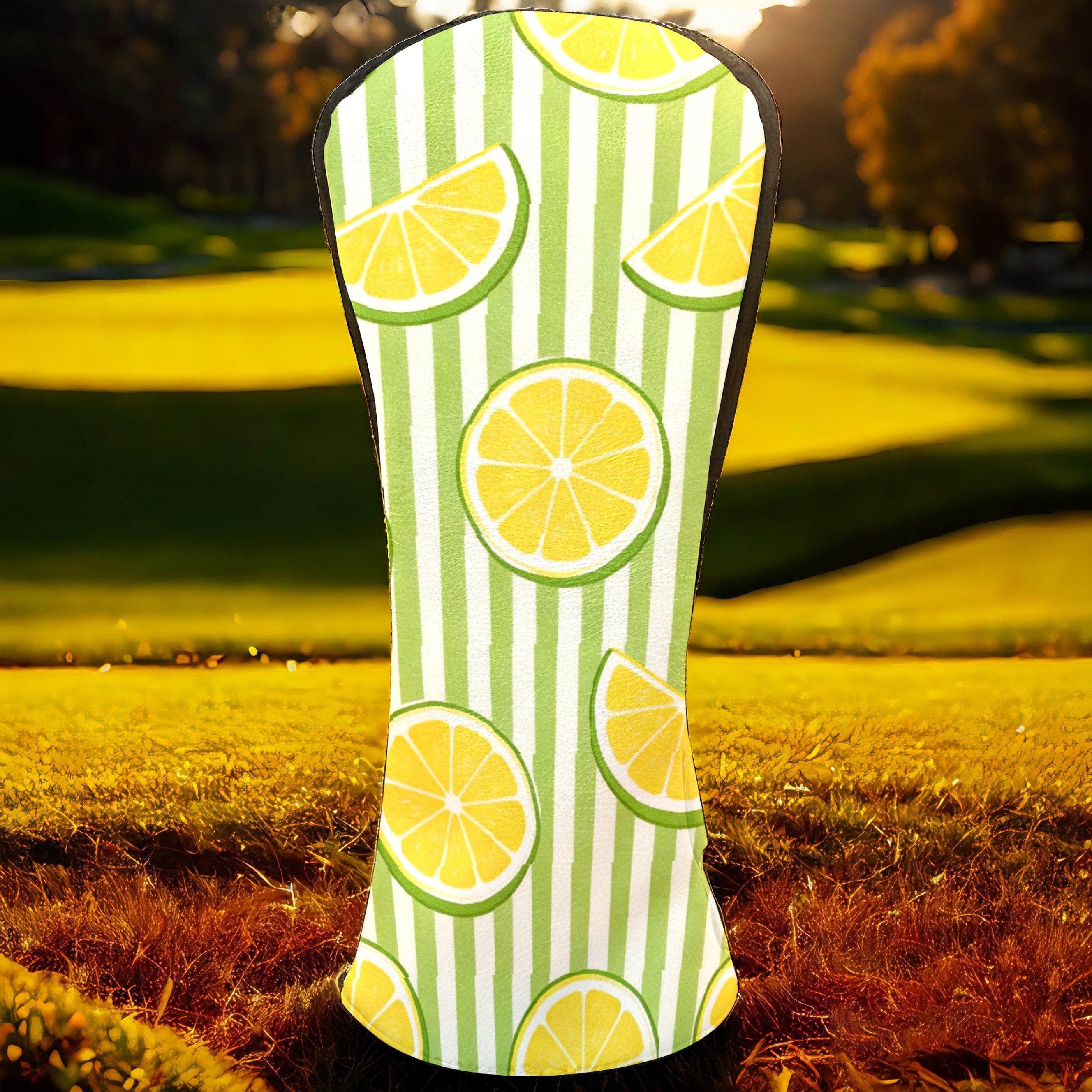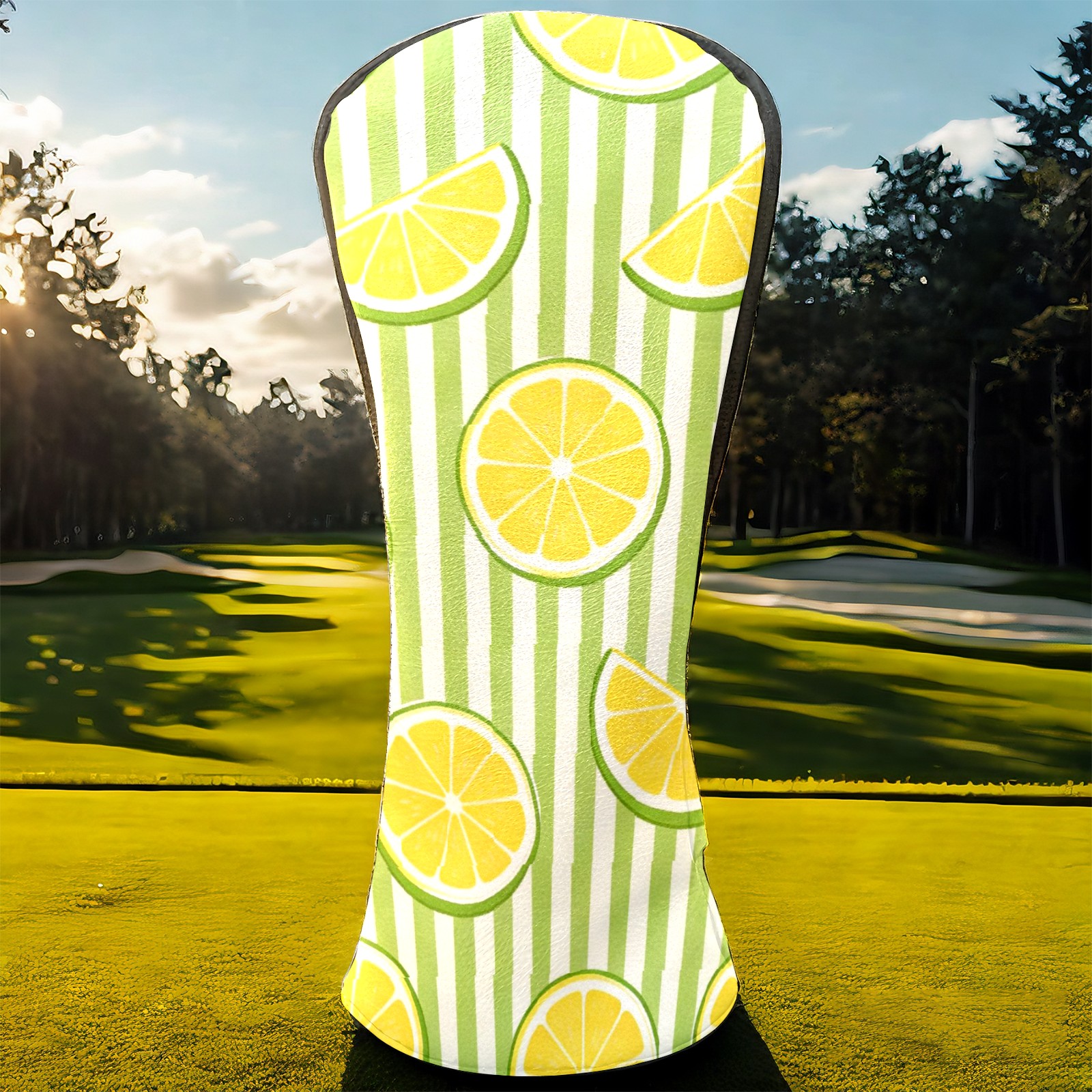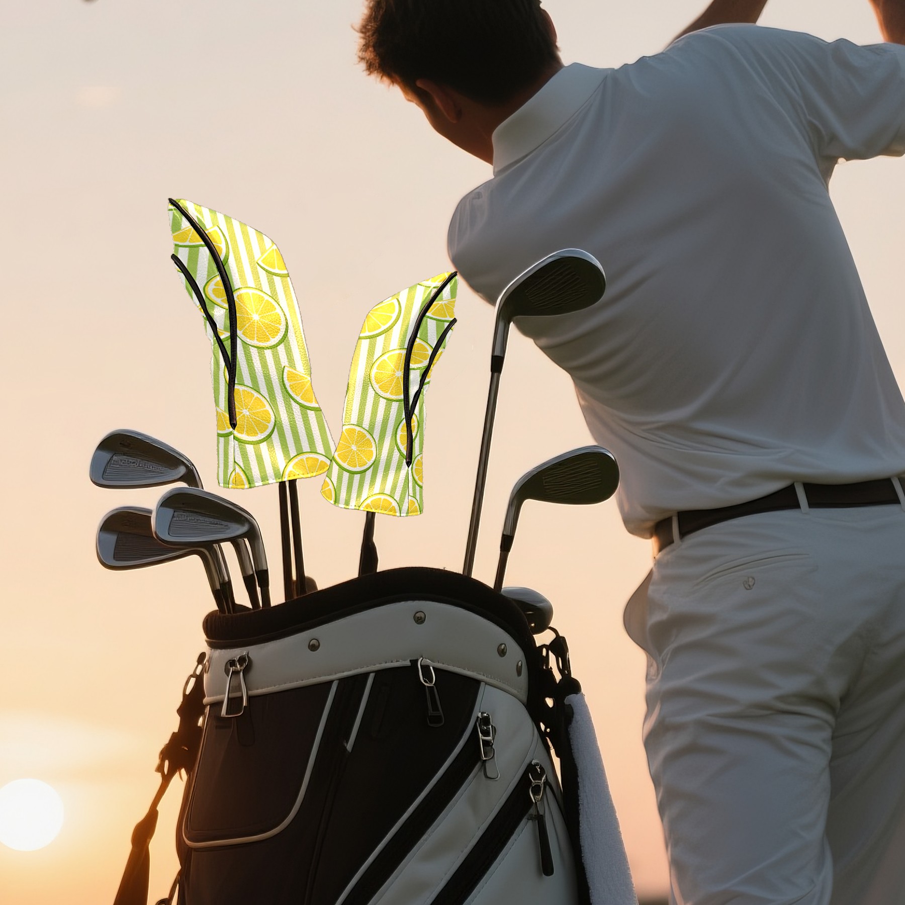 Golf Headcovers Fits Driver Hybrid Fairway 3/5 Wood, Waterproof PU Leather Golf Club Protector, Ideal Sports Accessories & Golfer Gift Striped Lemon Pattern