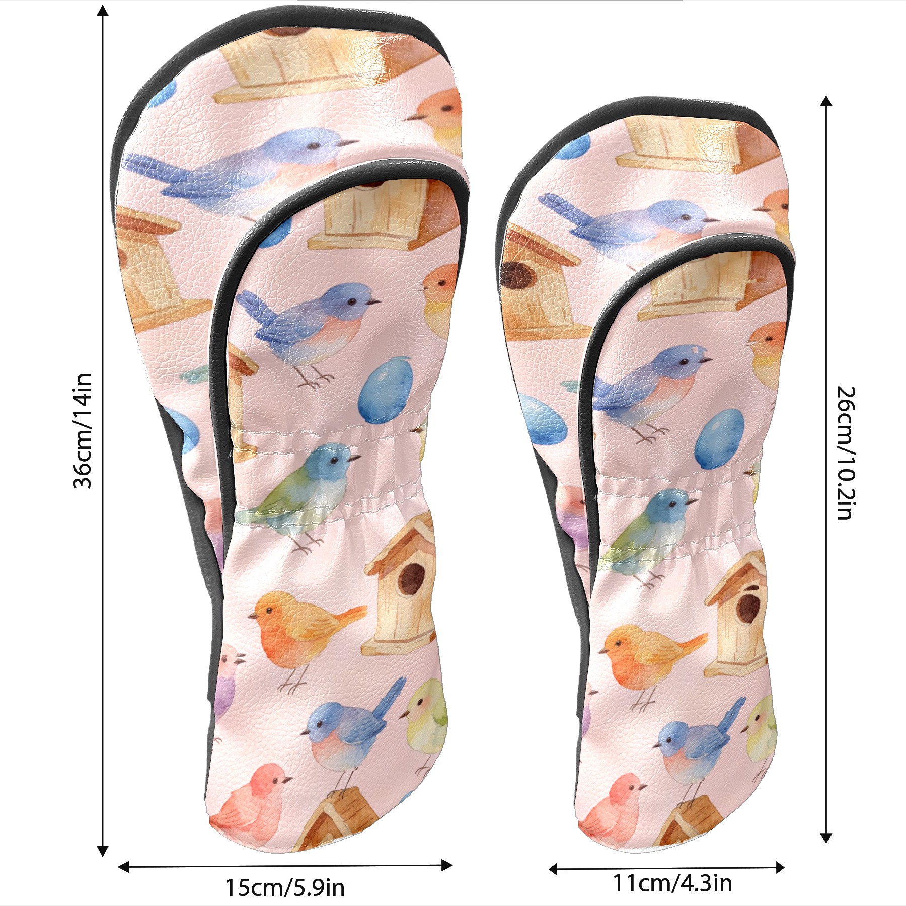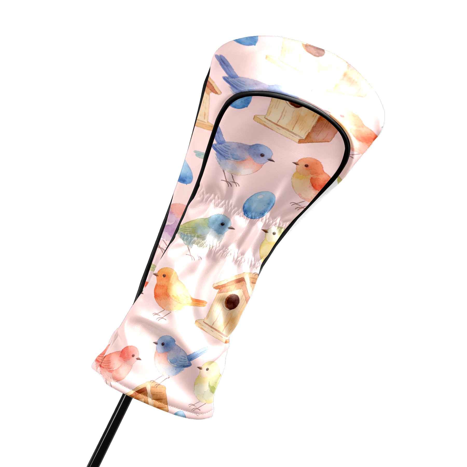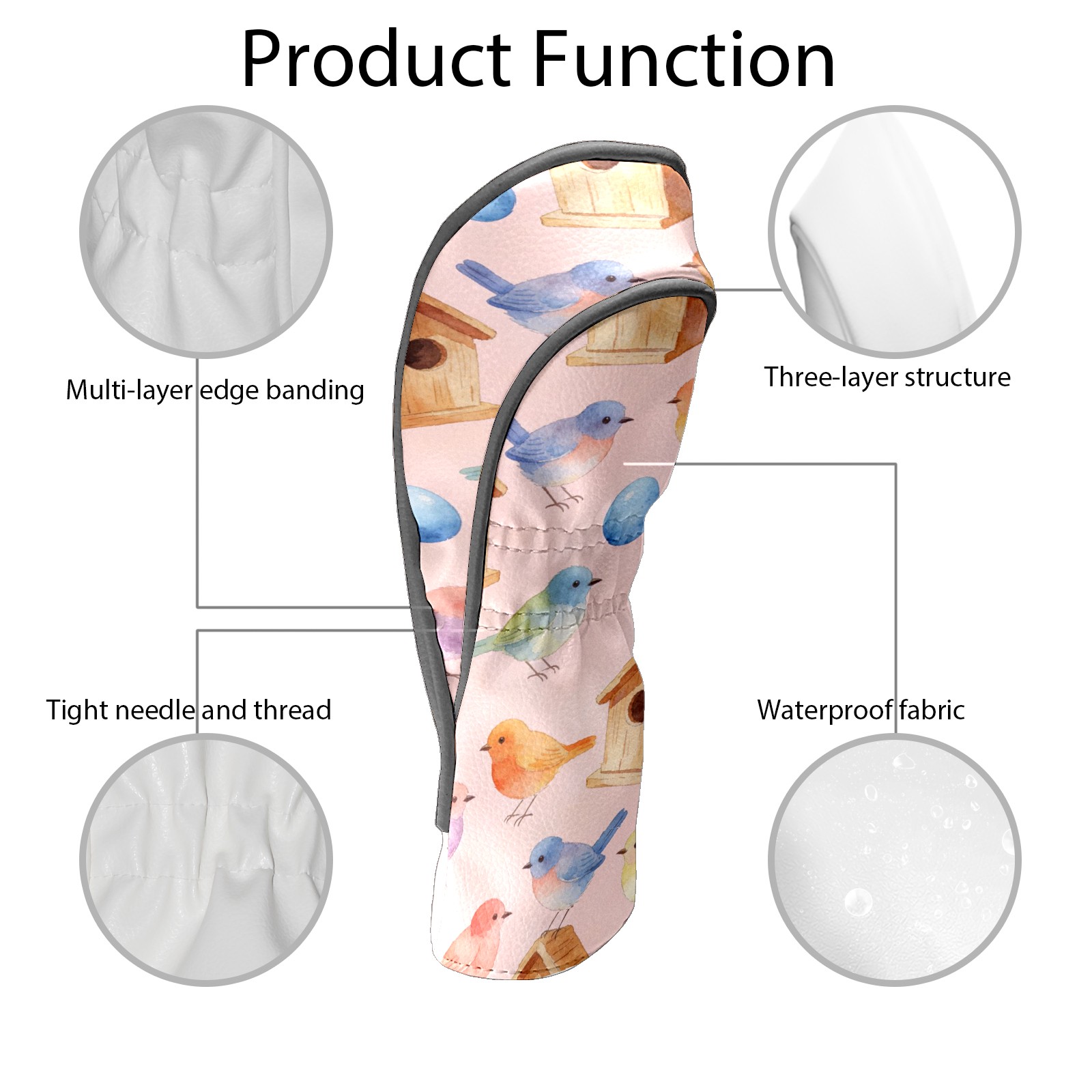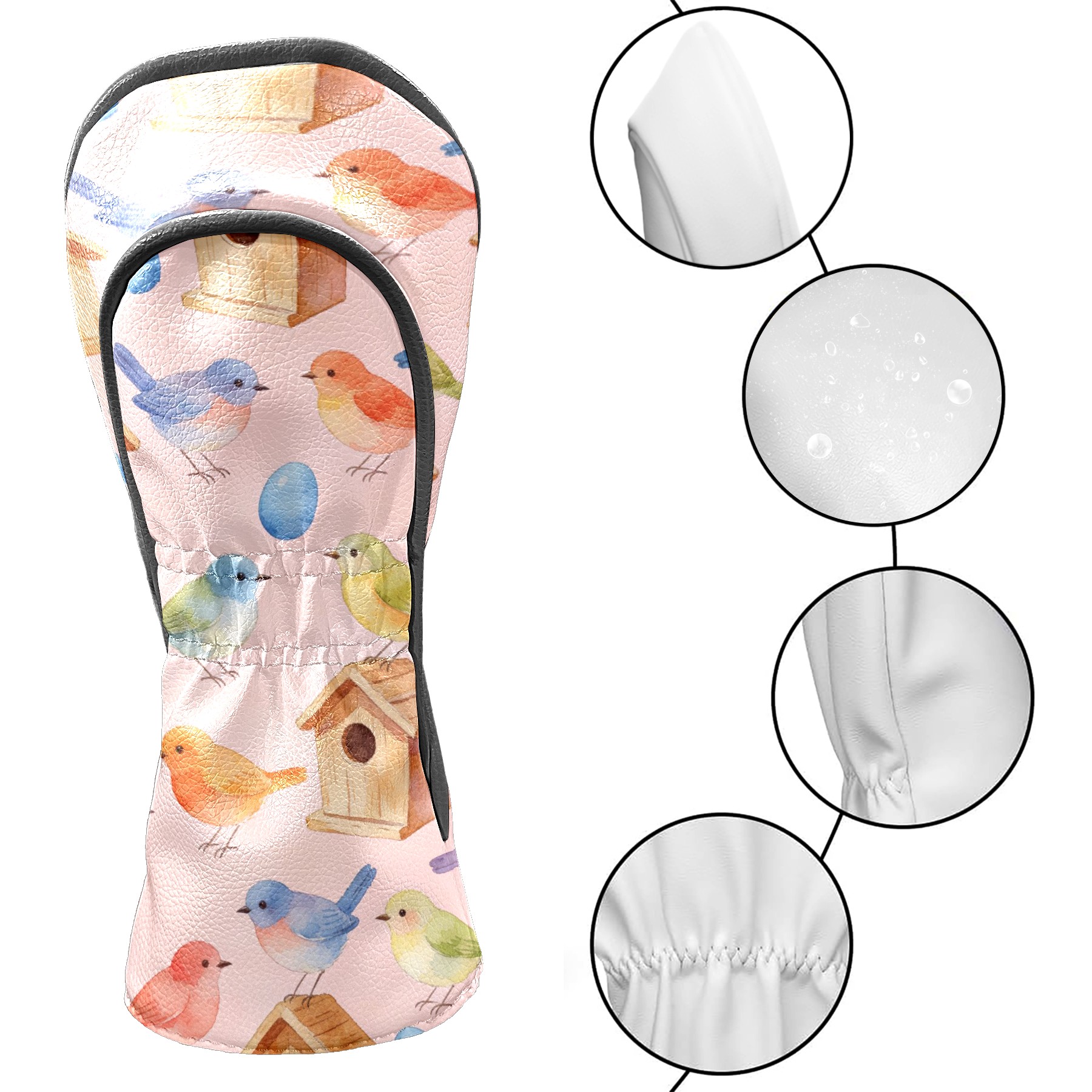 Golf Headcovers Fits Driver Hybrid Fairway 3/5 Wood, Waterproof PU Leather Golf Club Protector, Ideal Sports Accessories & Golfer Gift Colorful Bird Pattern