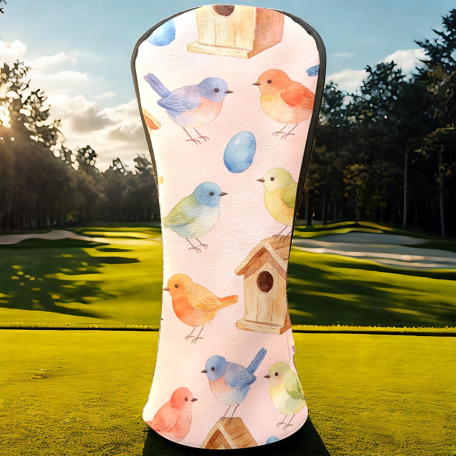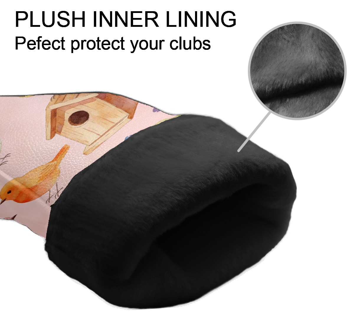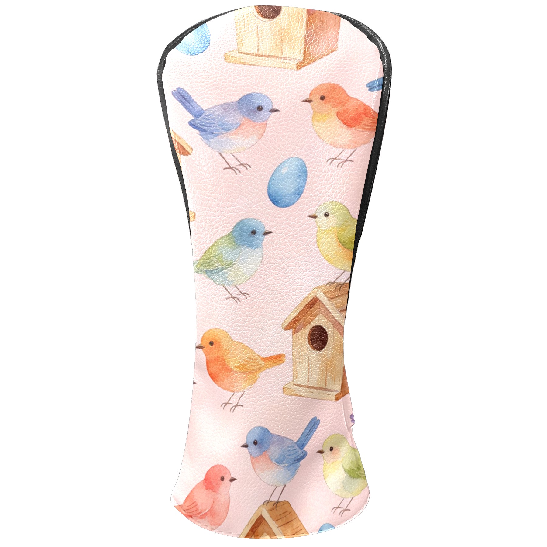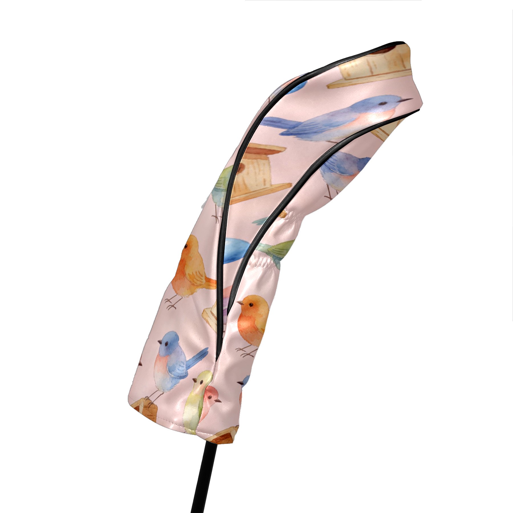 Golf Headcovers Fits Driver Hybrid Fairway 3/5 Wood, Waterproof PU Leather Golf Club Protector, Ideal Sports Accessories & Golfer Gift Colorful Bird Pattern