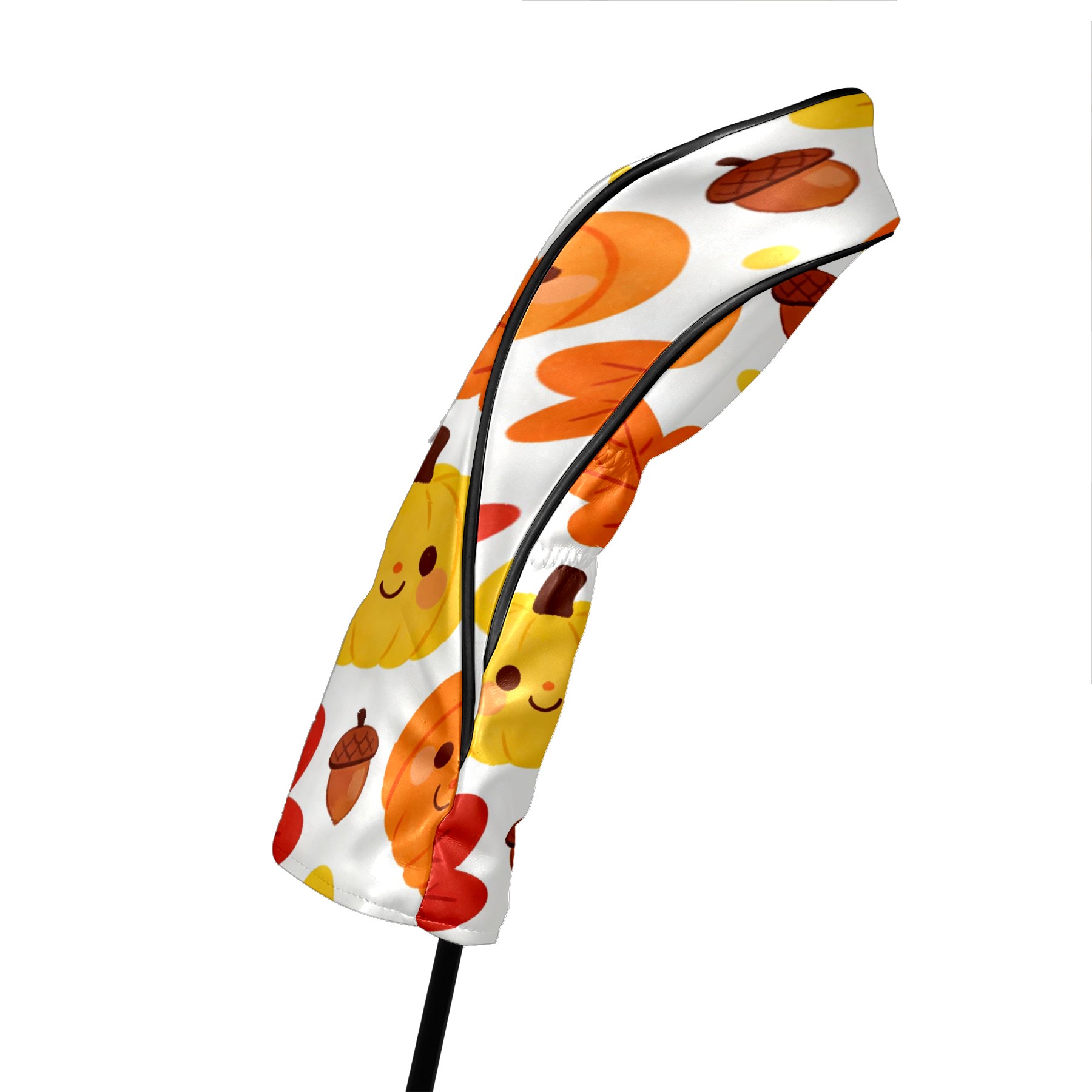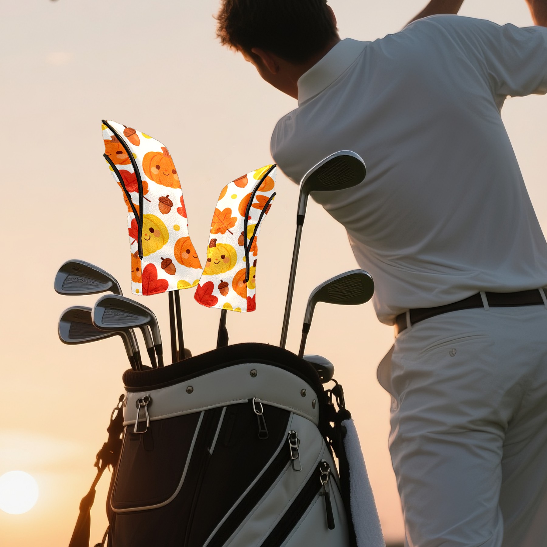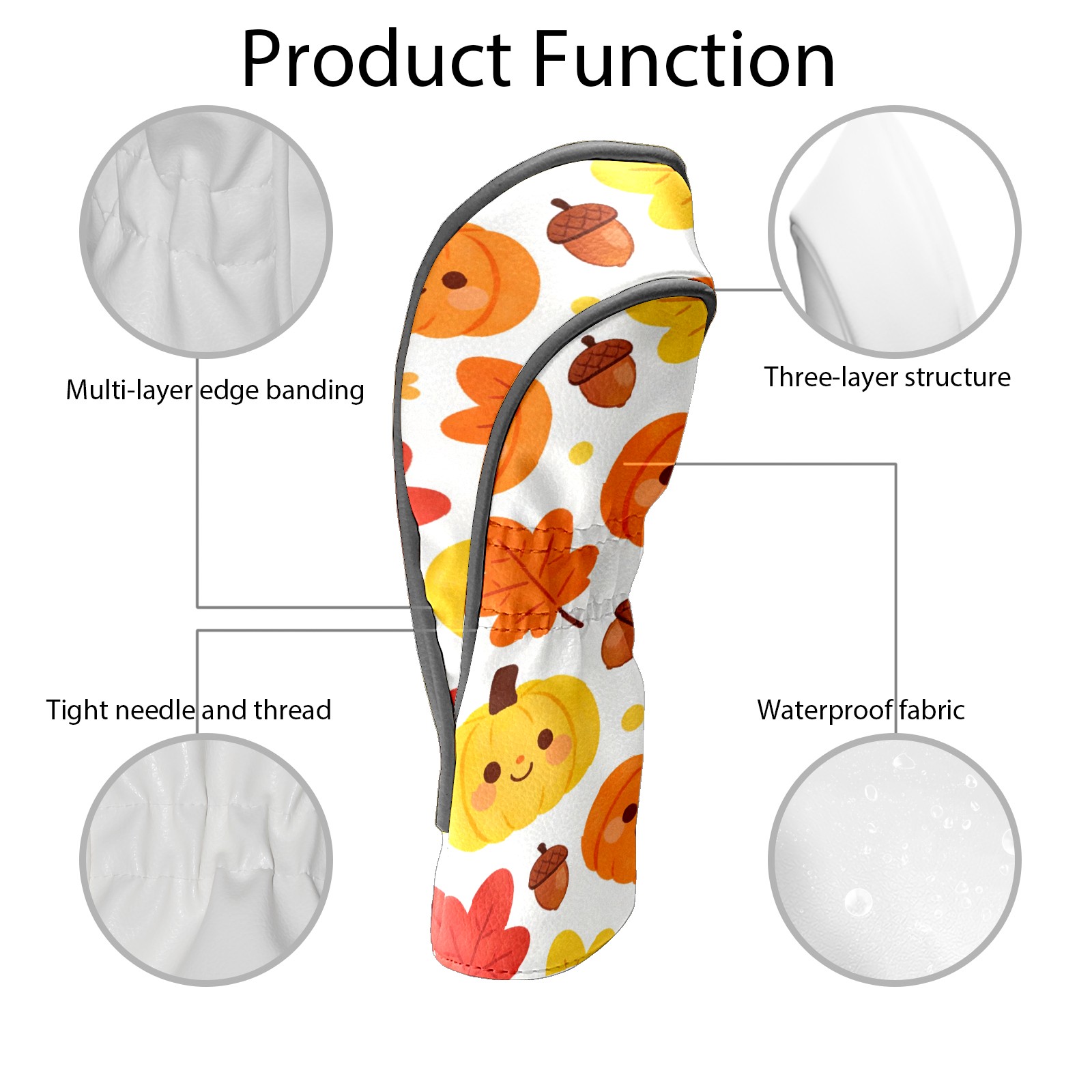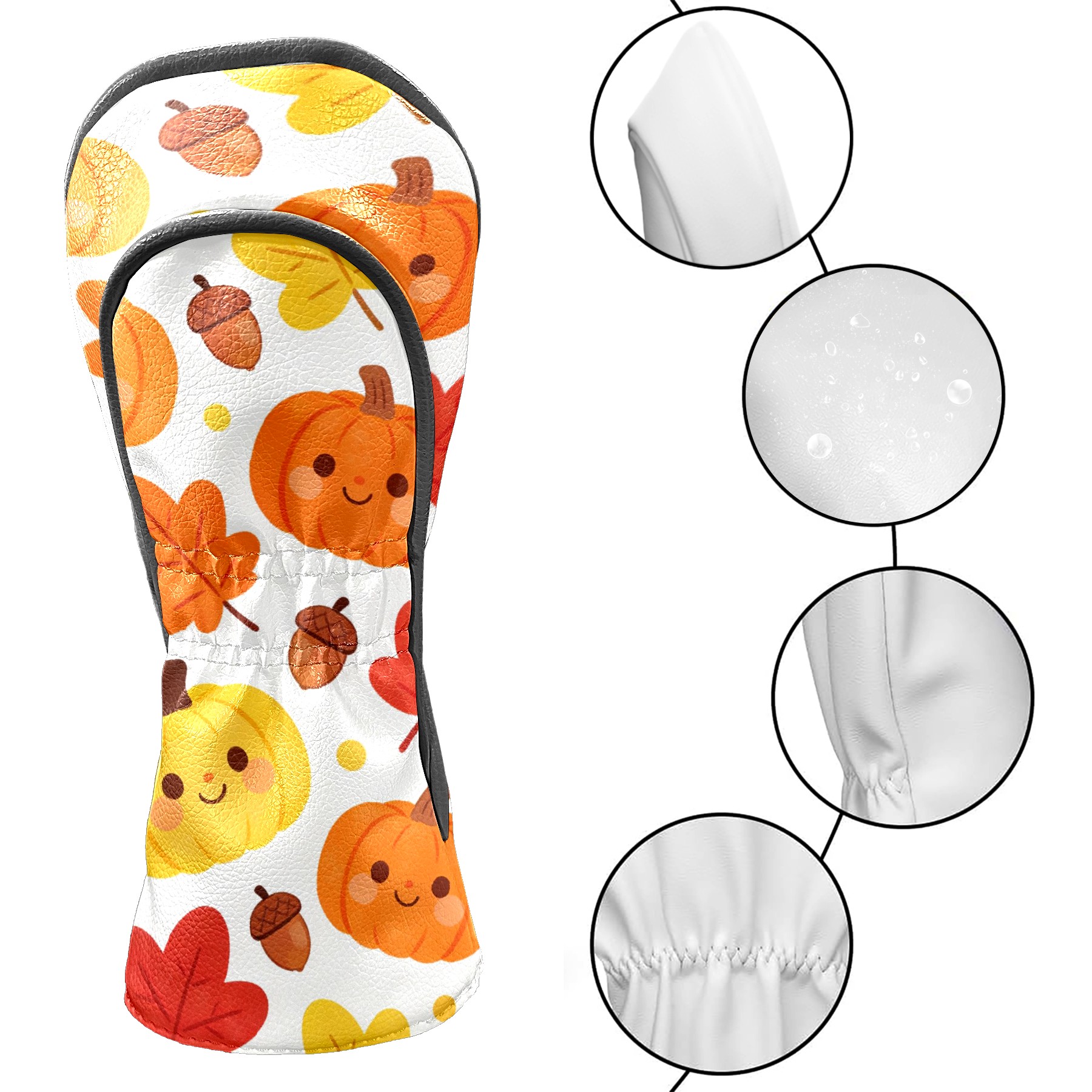 Golf Headcovers Fits Driver Hybrid Fairway 3/5 Wood, Waterproof PU Leather Golf Club Protector, Ideal Sports Accessories & Golfer Gift Pumpkin Pattern