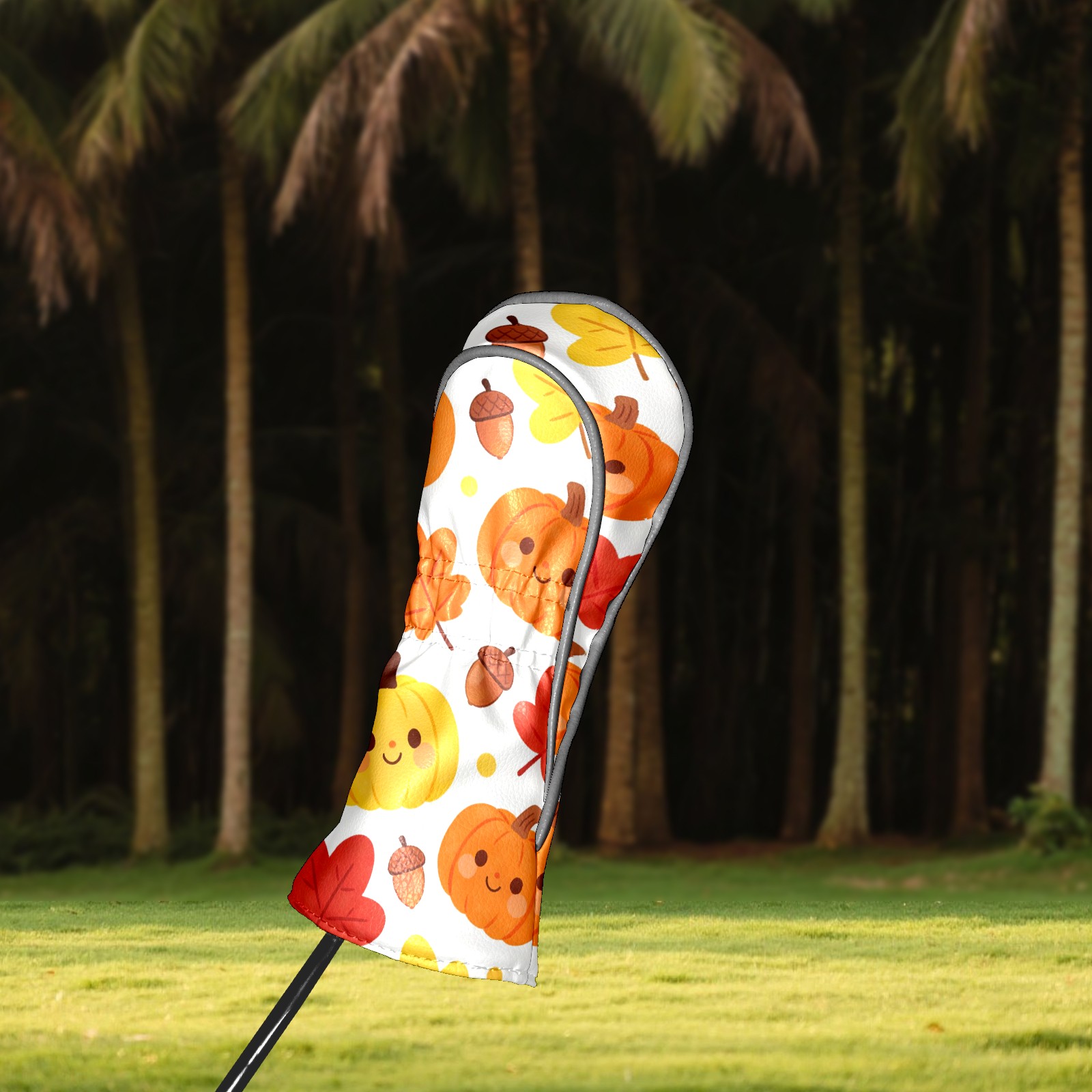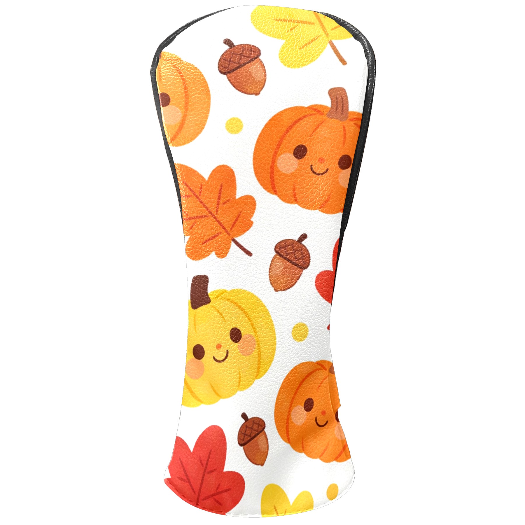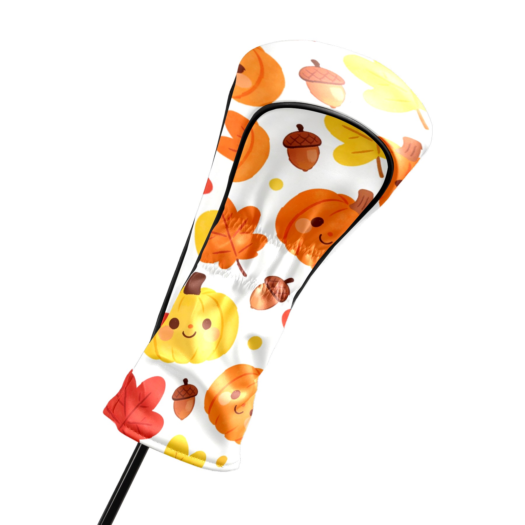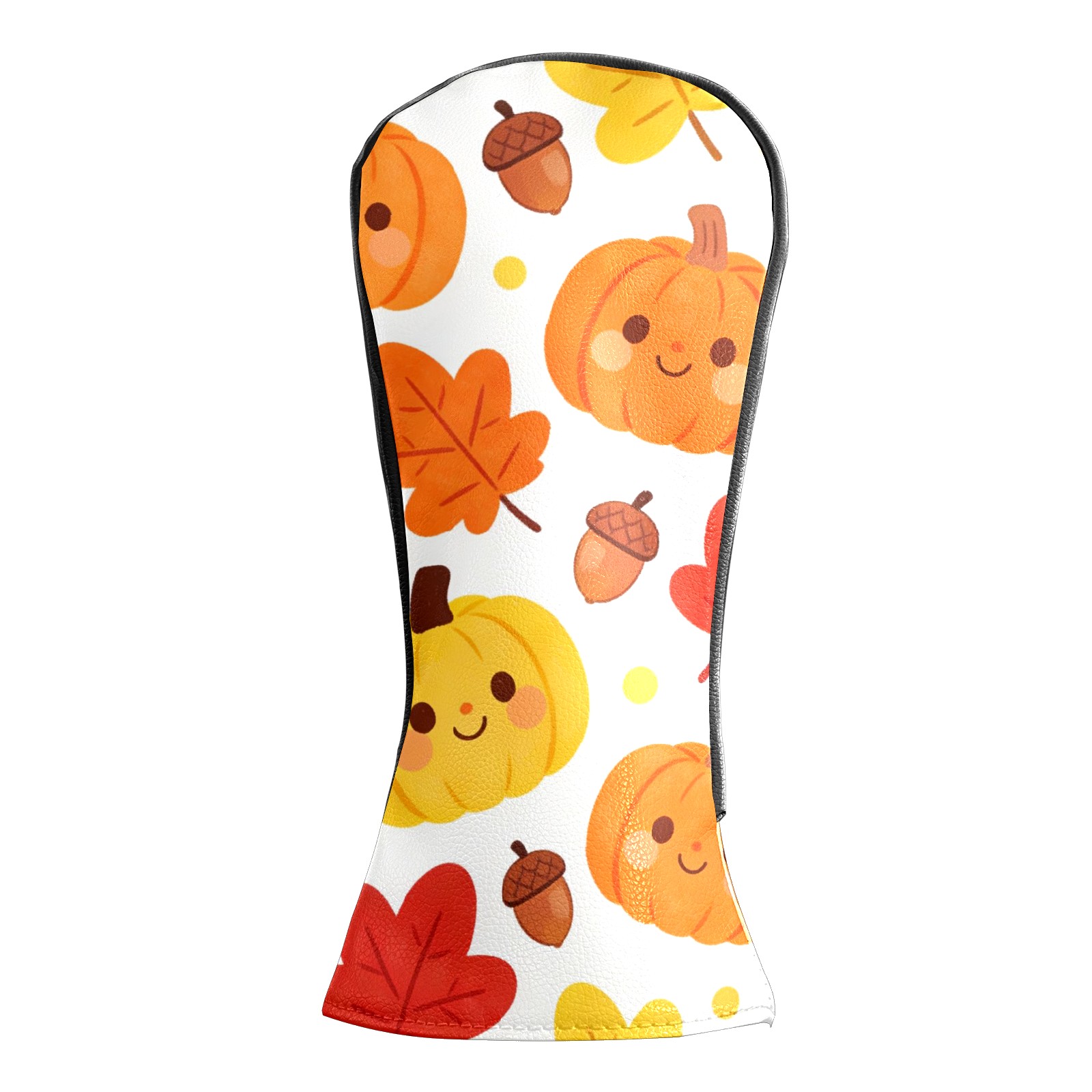 Golf Headcovers Fits Driver Hybrid Fairway 3/5 Wood, Waterproof PU Leather Golf Club Protector, Ideal Sports Accessories & Golfer Gift Pumpkin Pattern