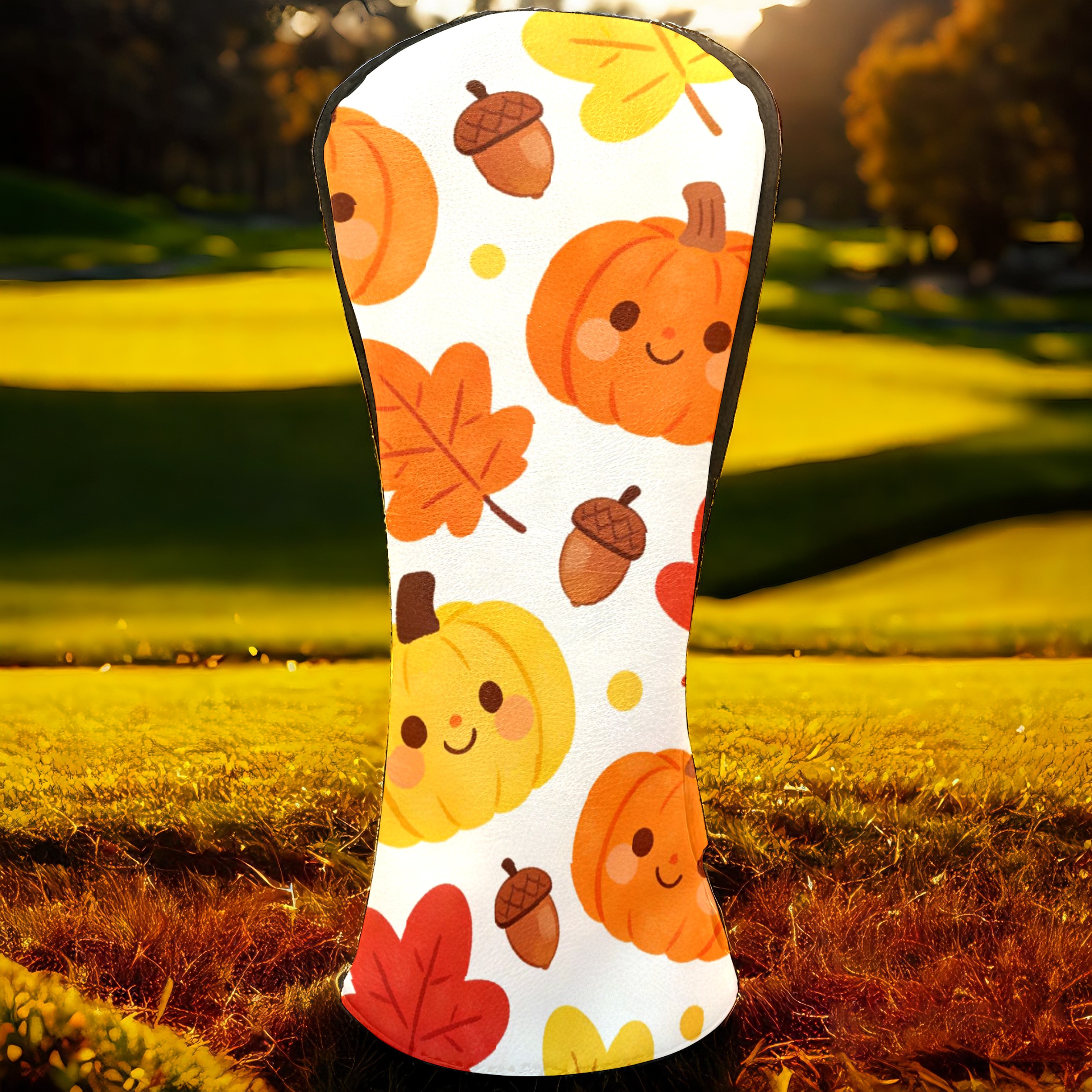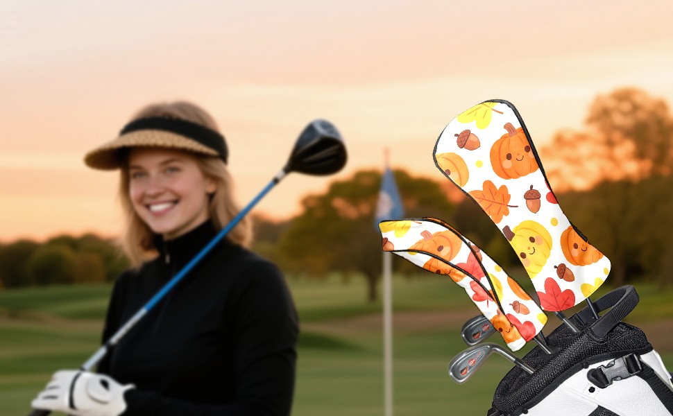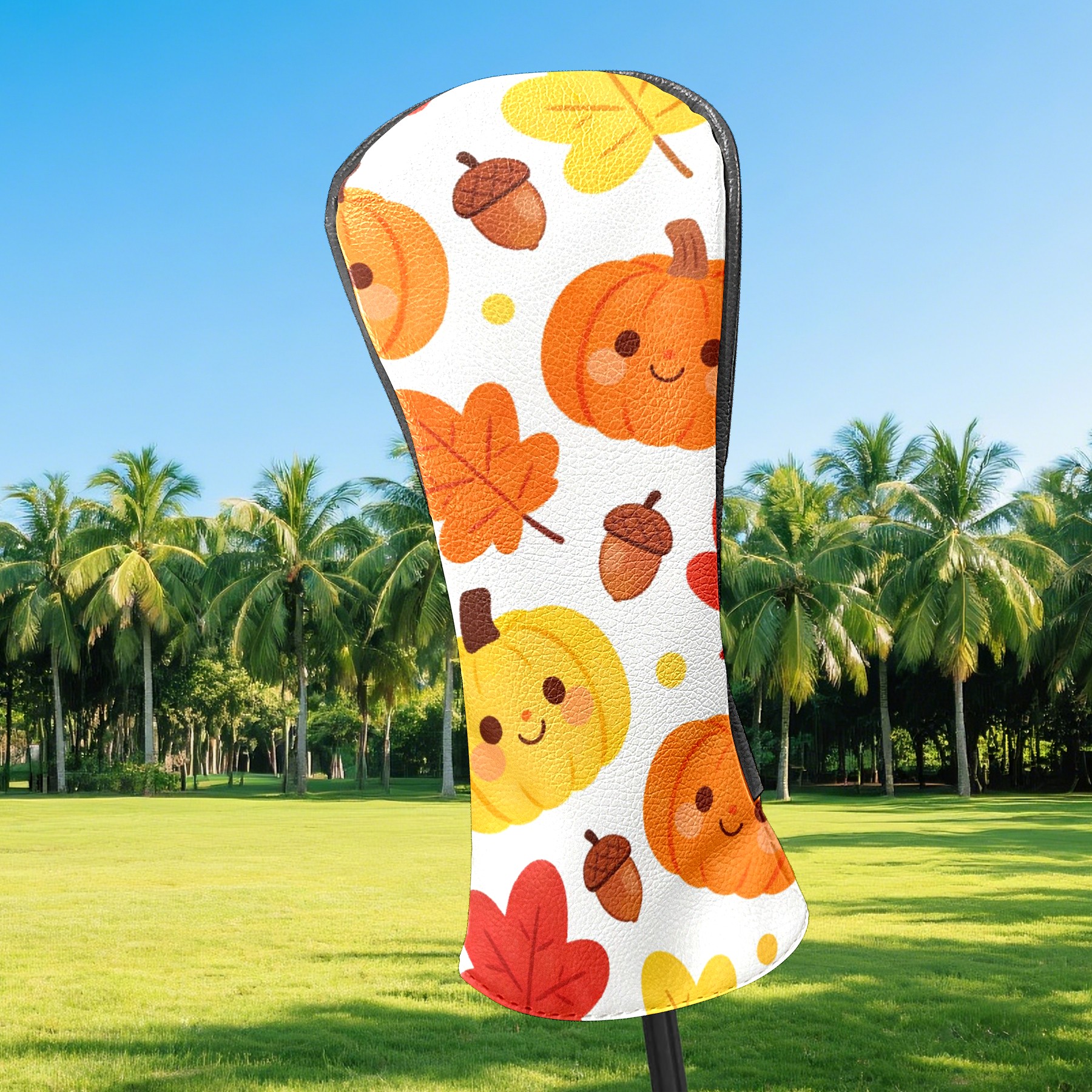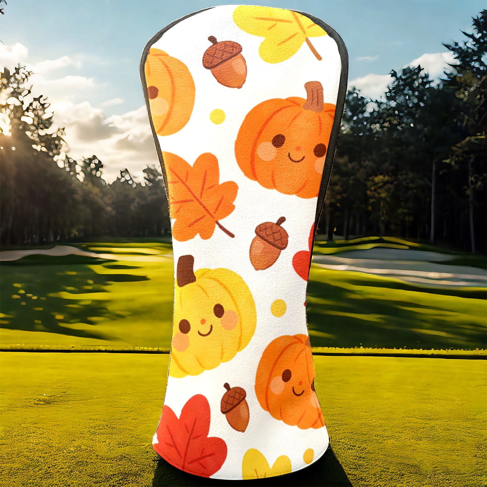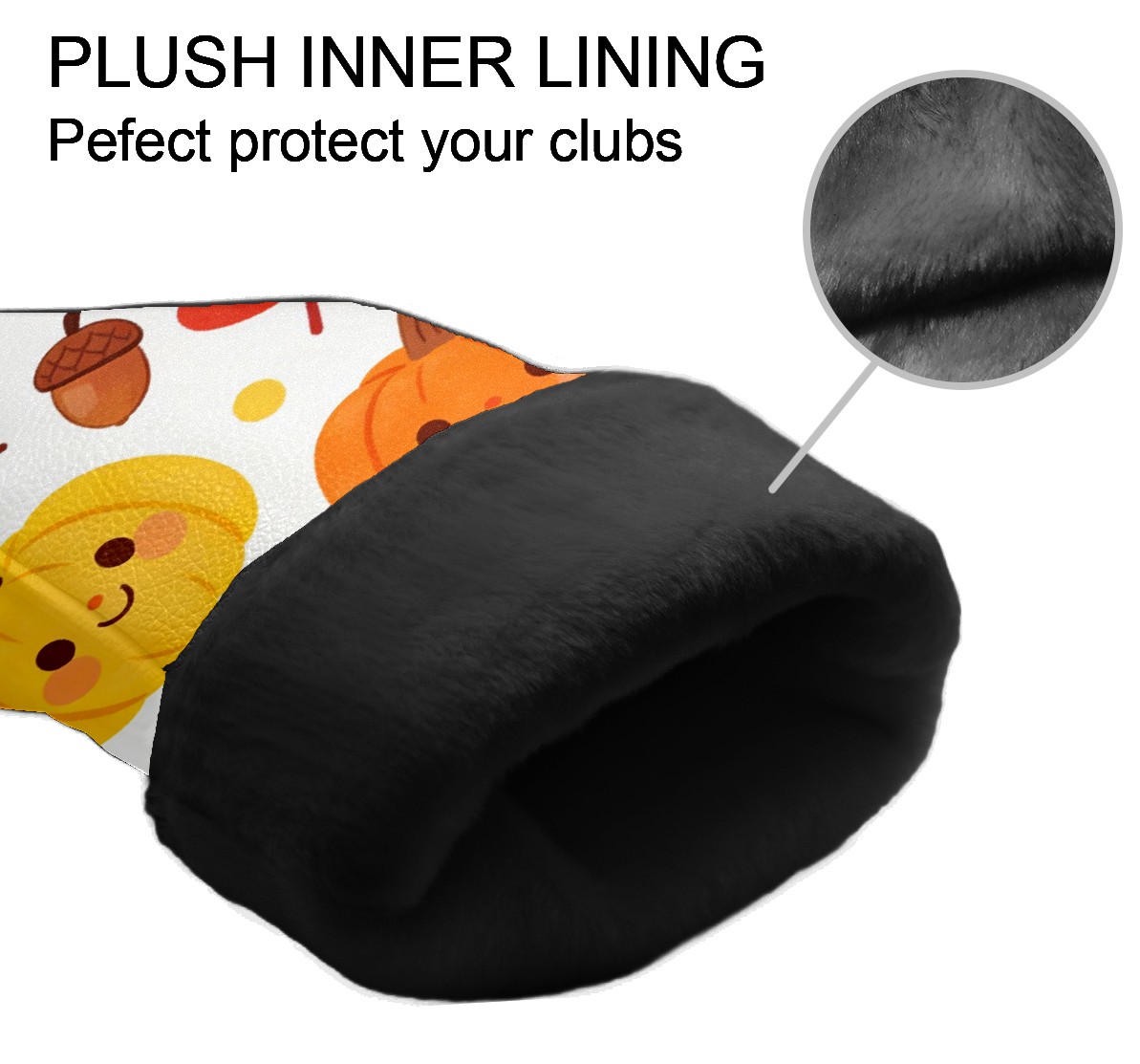 Golf Headcovers Fits Driver Hybrid Fairway 3/5 Wood, Waterproof PU Leather Golf Club Protector, Ideal Sports Accessories & Golfer Gift Pumpkin Pattern