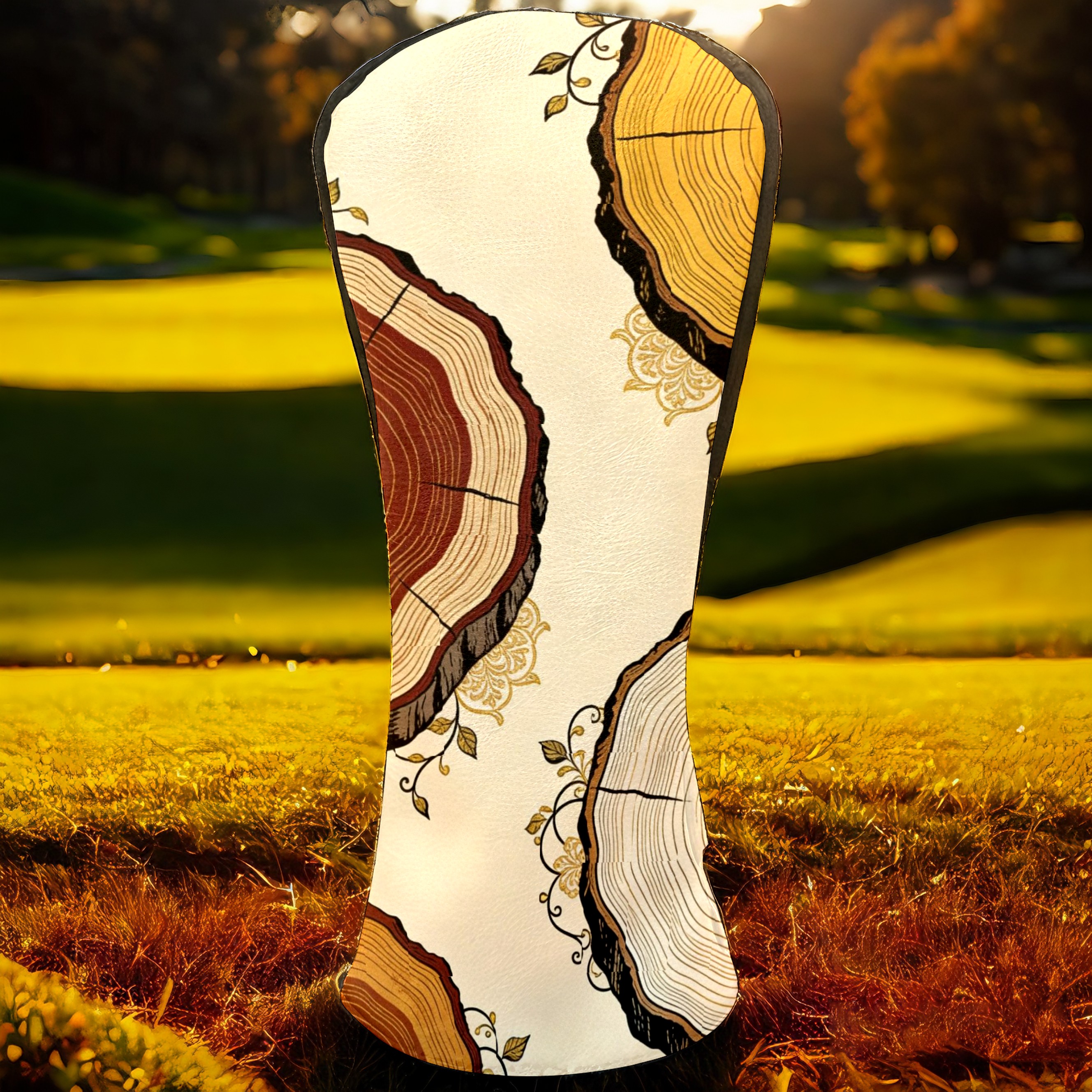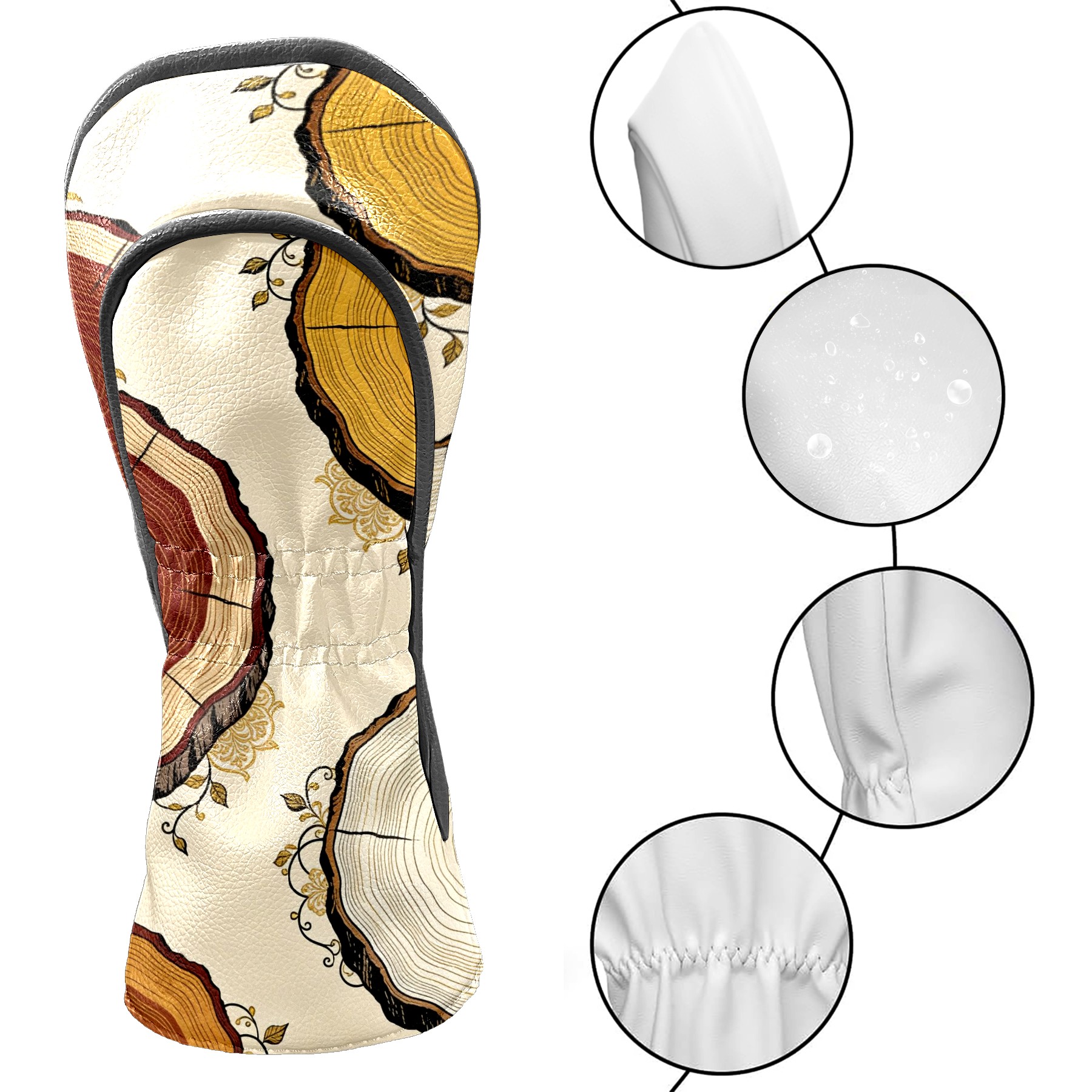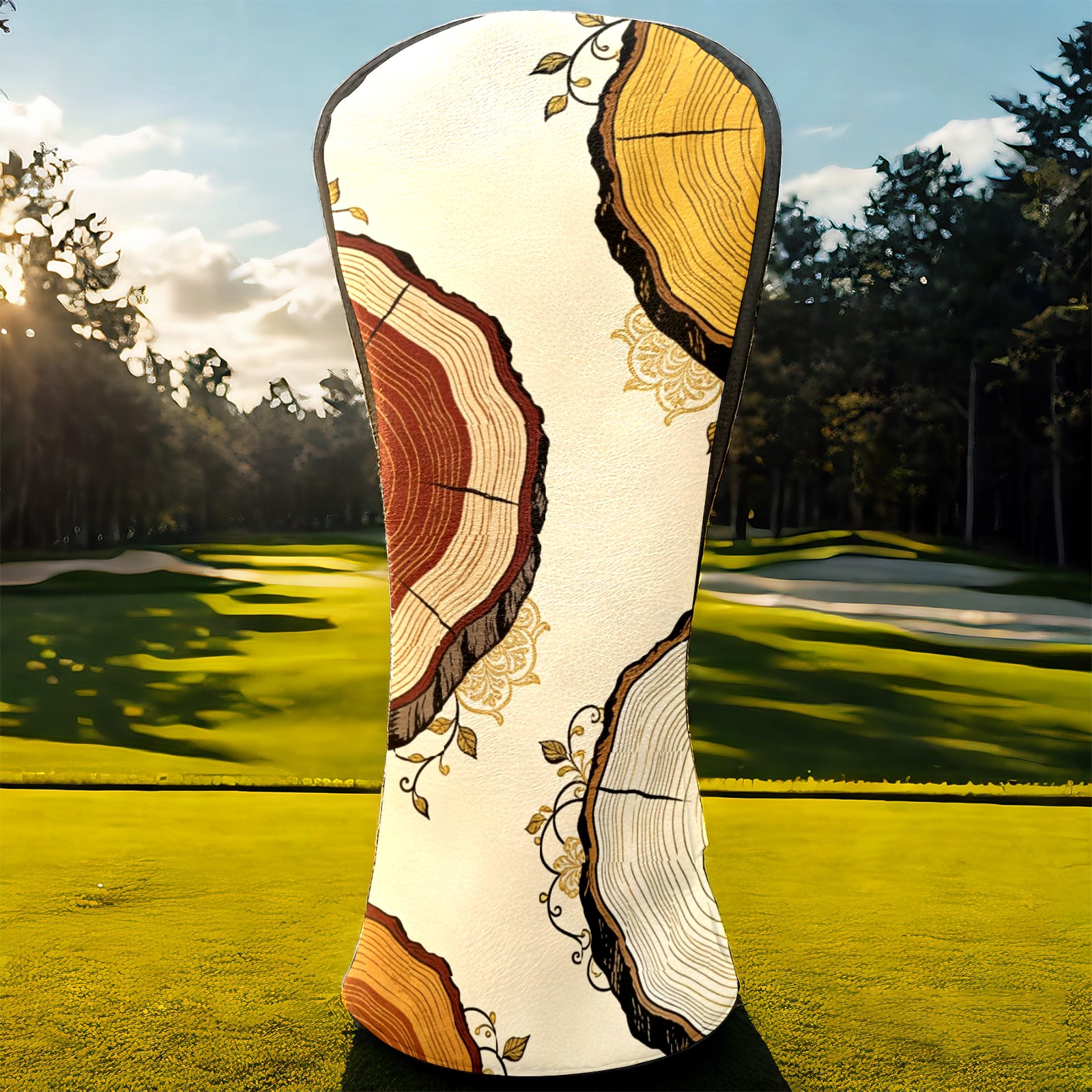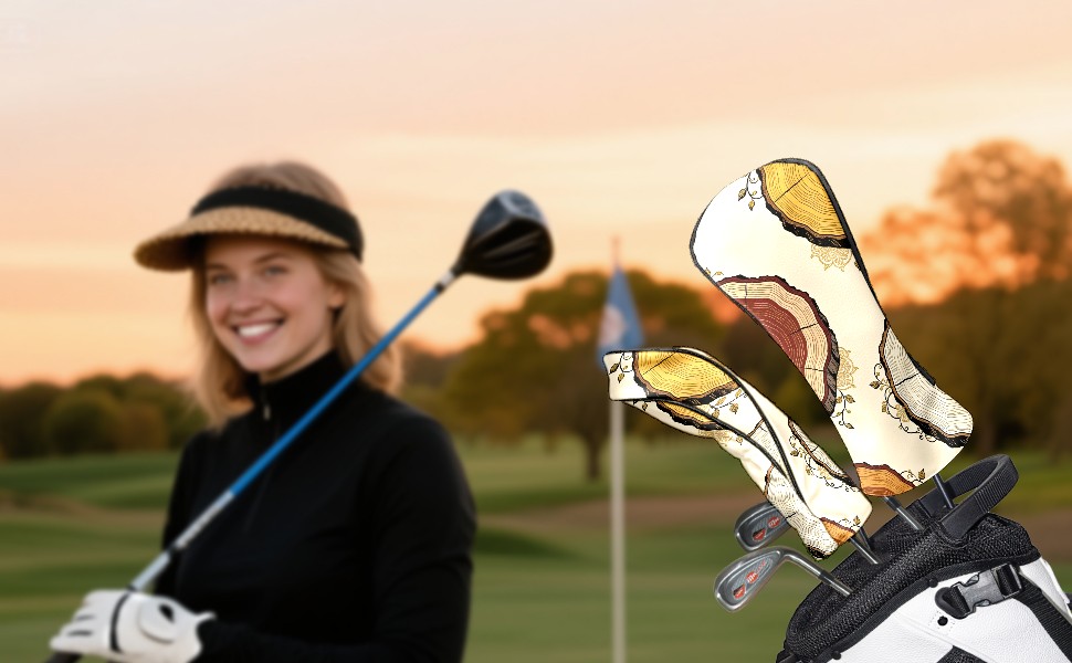 Golf Headcovers Fits Driver Hybrid Fairway 3/5 Wood, Waterproof PU Leather Golf Club Protector, Ideal Sports Accessories & Golfer Gift Tree Stump Pattern