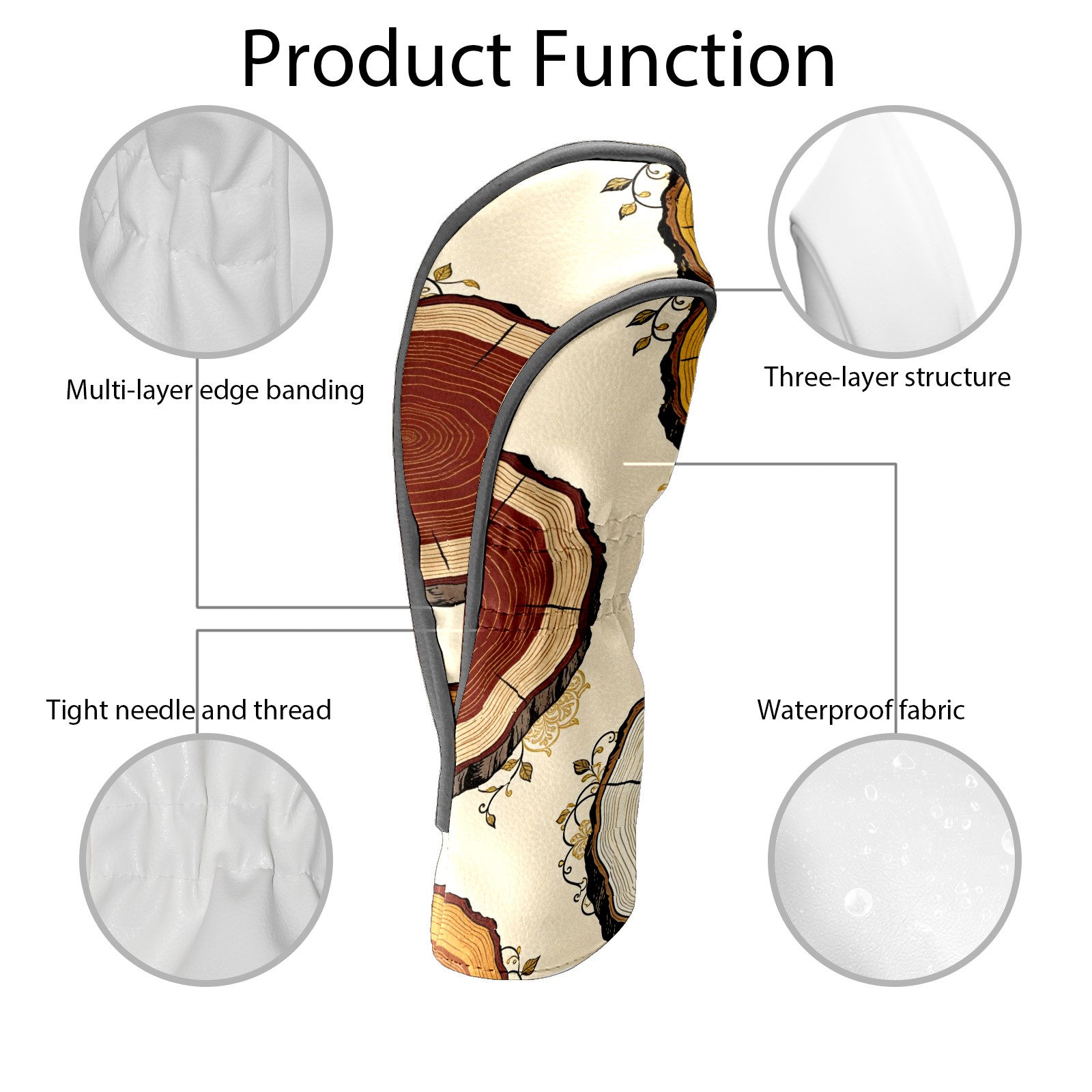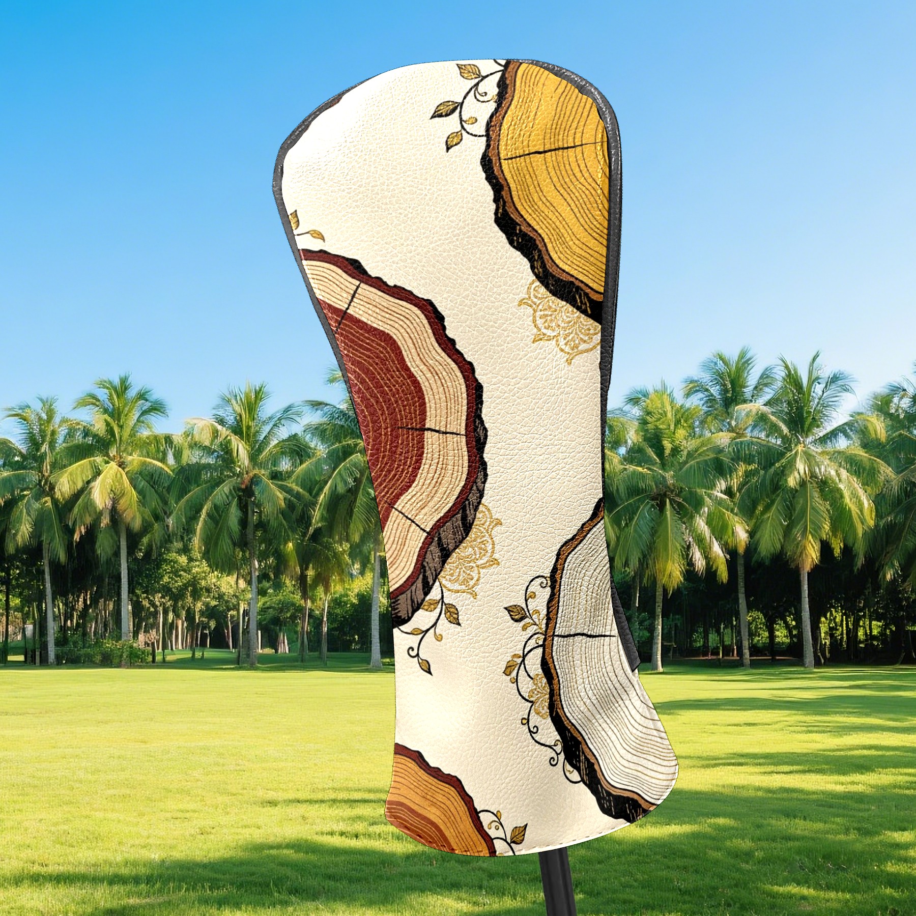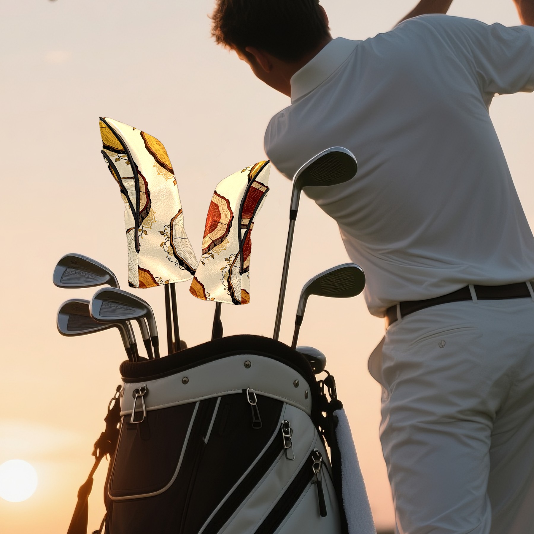 Golf Headcovers Fits Driver Hybrid Fairway 3/5 Wood, Waterproof PU Leather Golf Club Protector, Ideal Sports Accessories & Golfer Gift Tree Stump Pattern