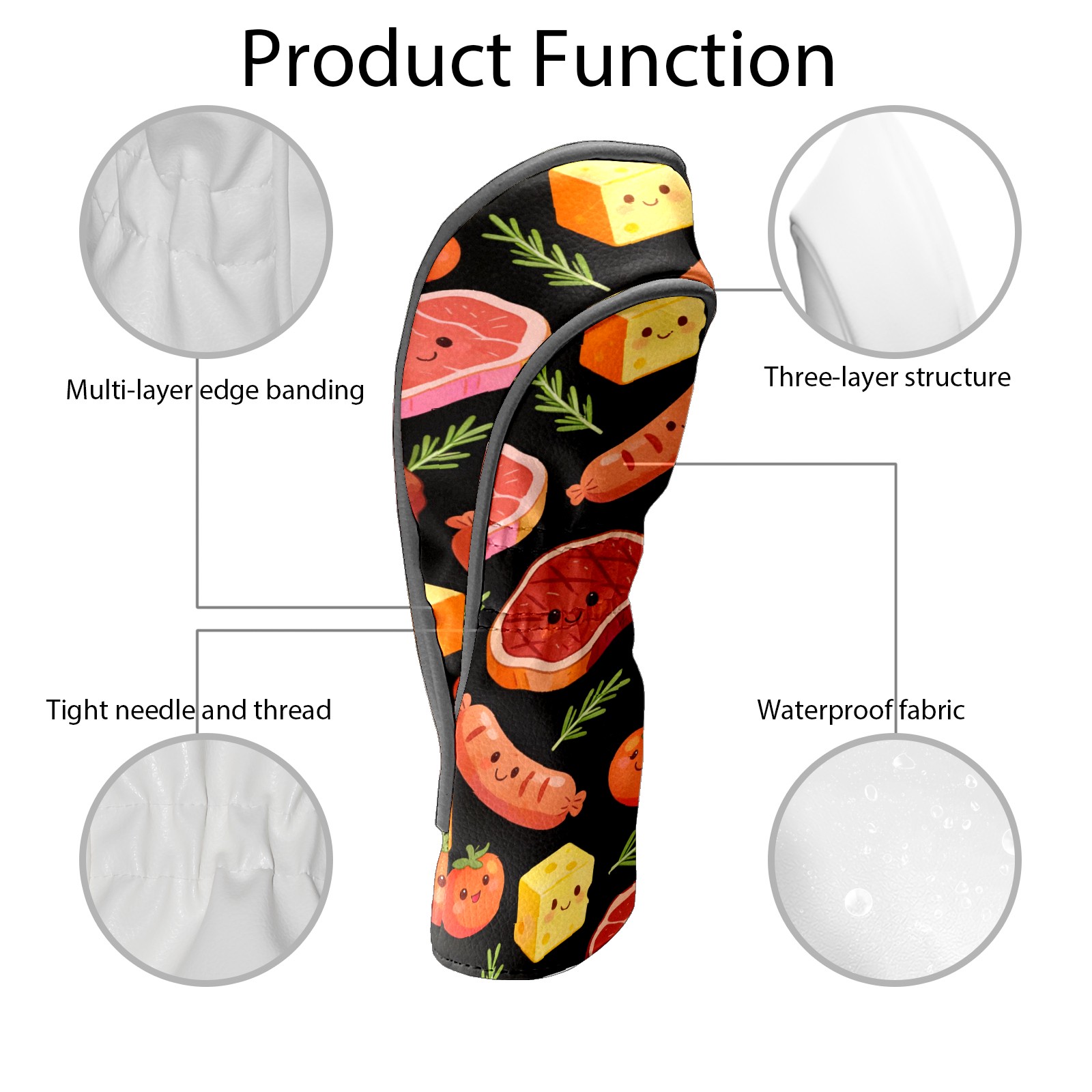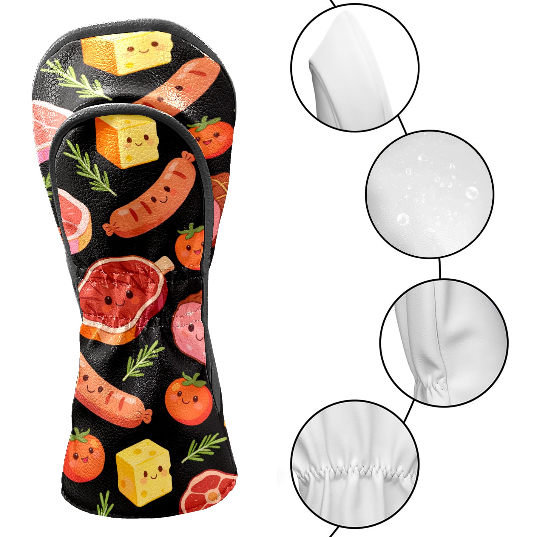 Golf Headcovers Fits Driver Hybrid Fairway 3/5 Wood, Waterproof PU Leather Golf Club Protector, Ideal Sports Accessories & Golfer Gift Beef Pattern