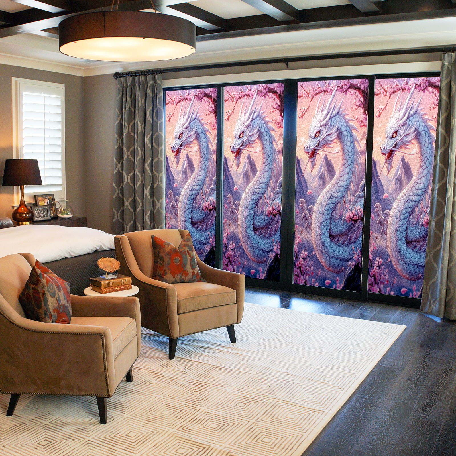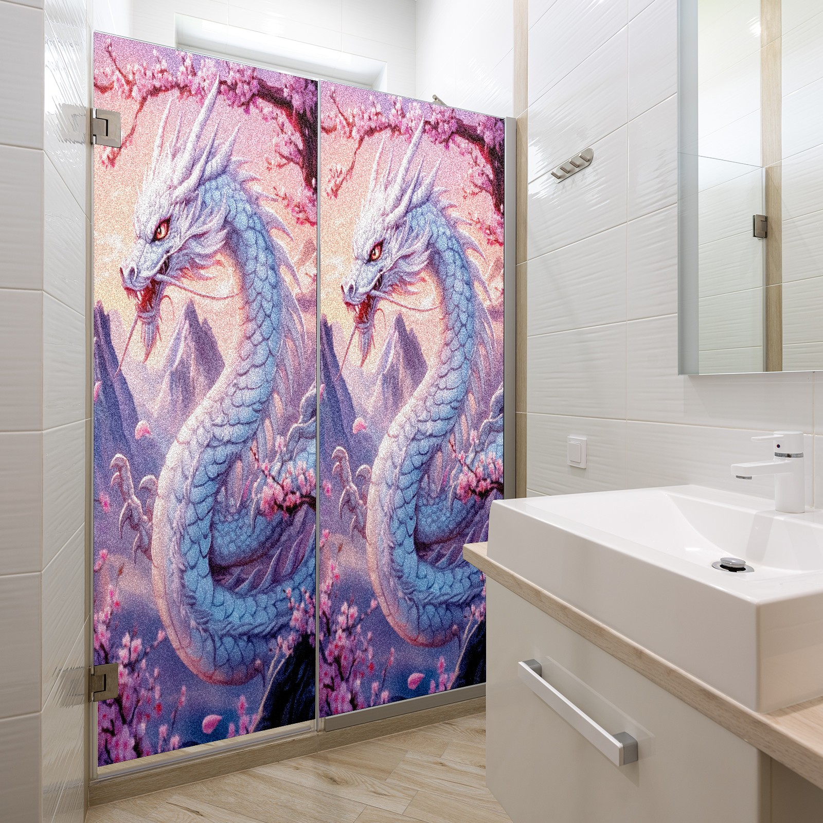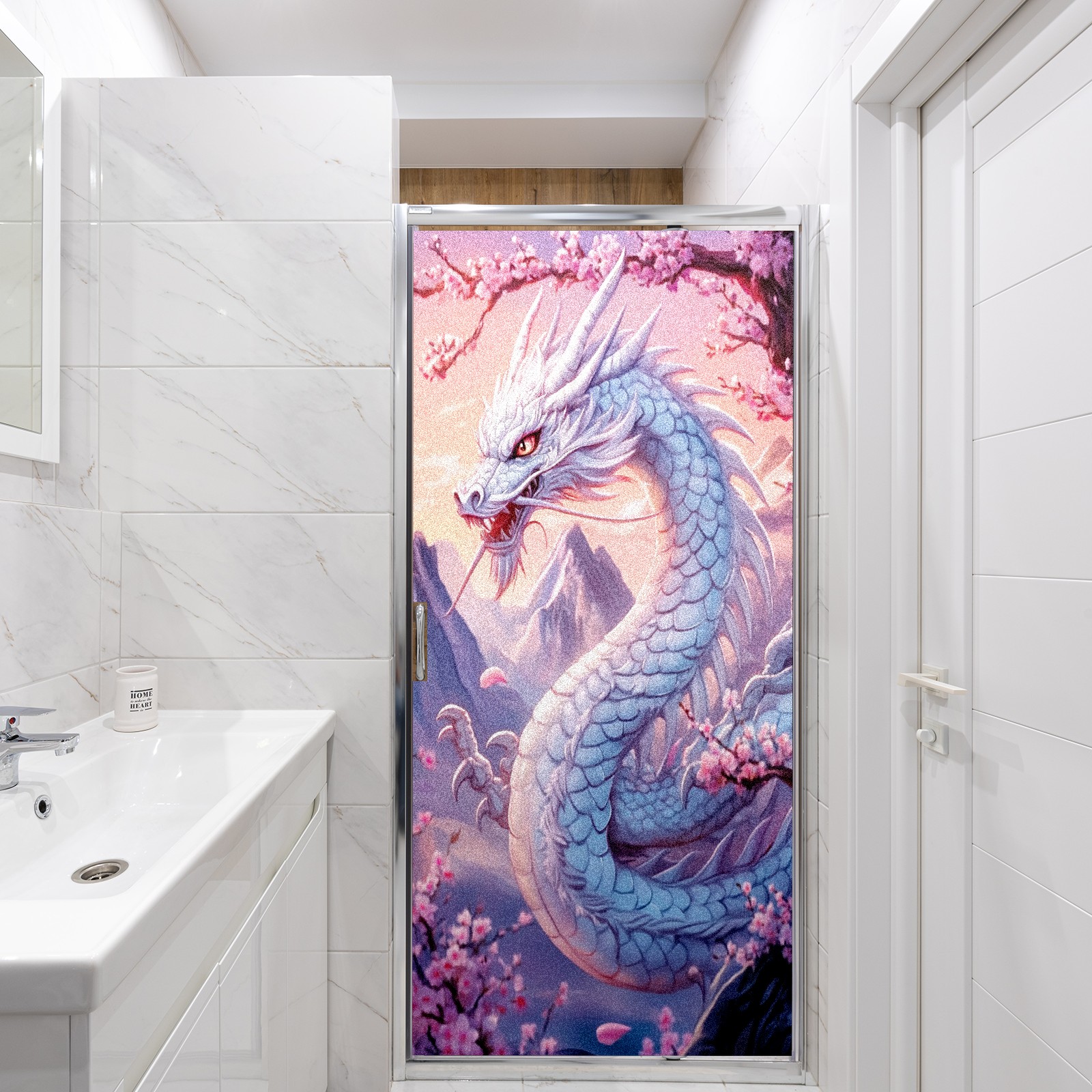 Stained Glass Window Film - Decorative Privacy Film for Windows, Peel and Stick Window Film for Bathroom/Office/Shower, Reusable and Easy to Cut 17.7"x23.6" (White Dragon)