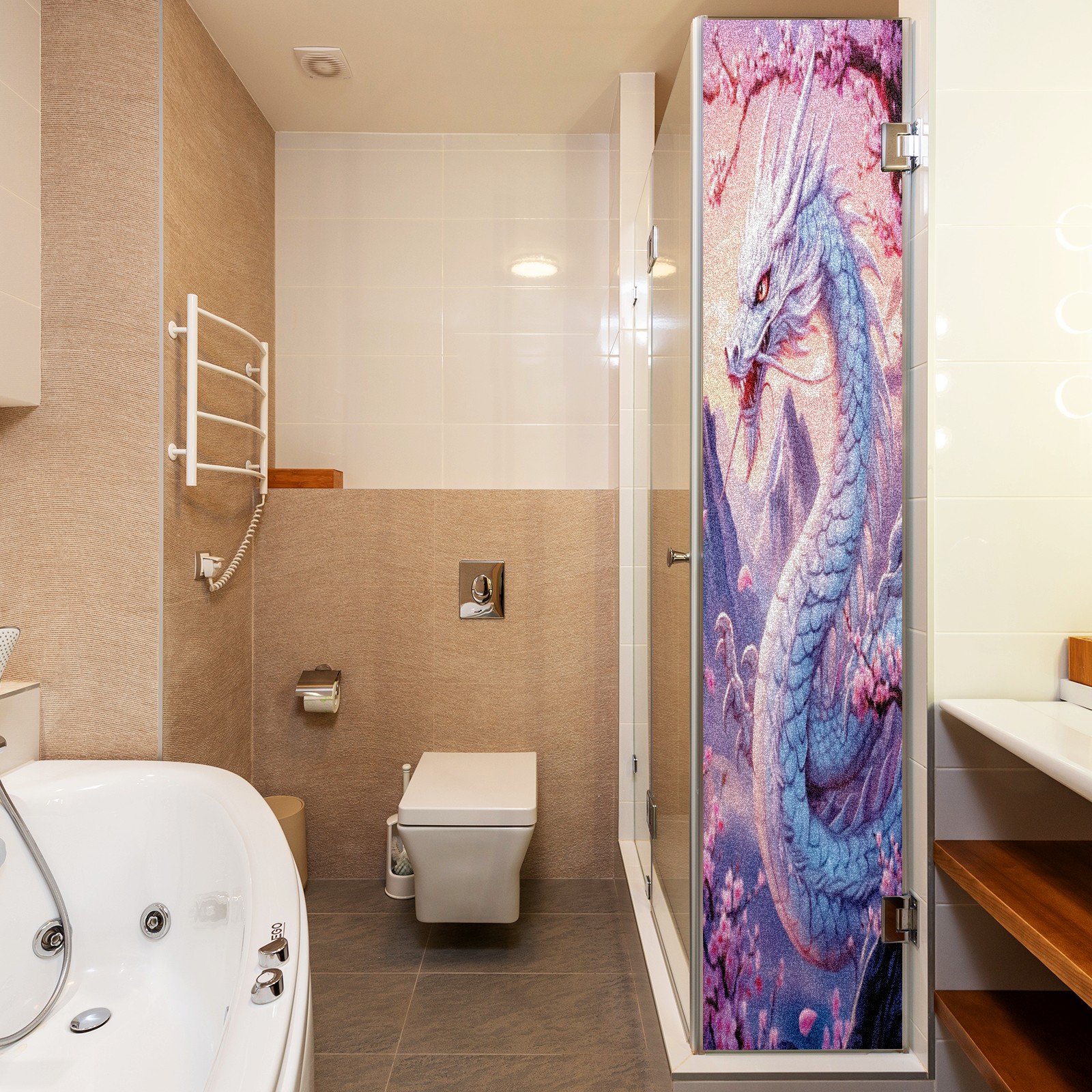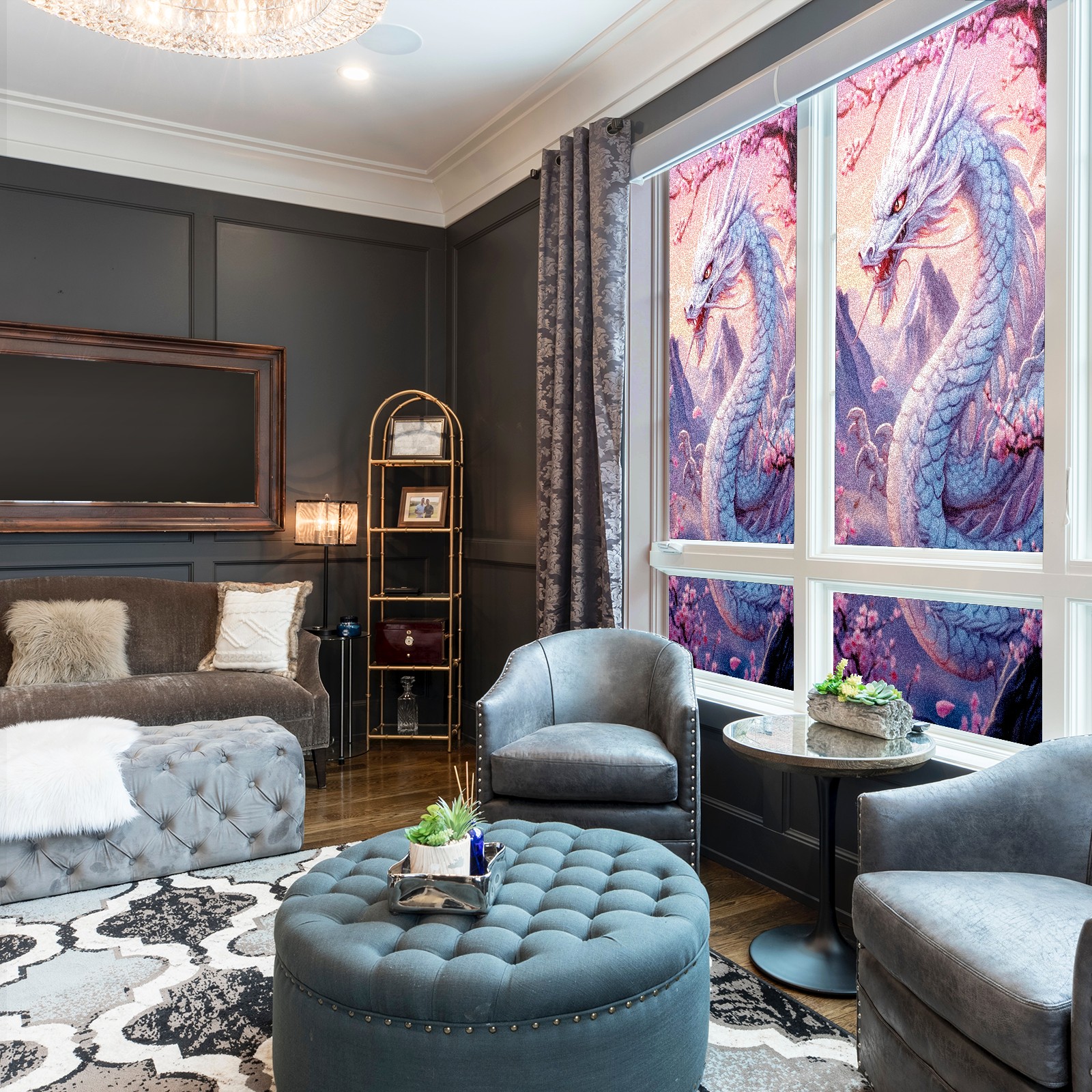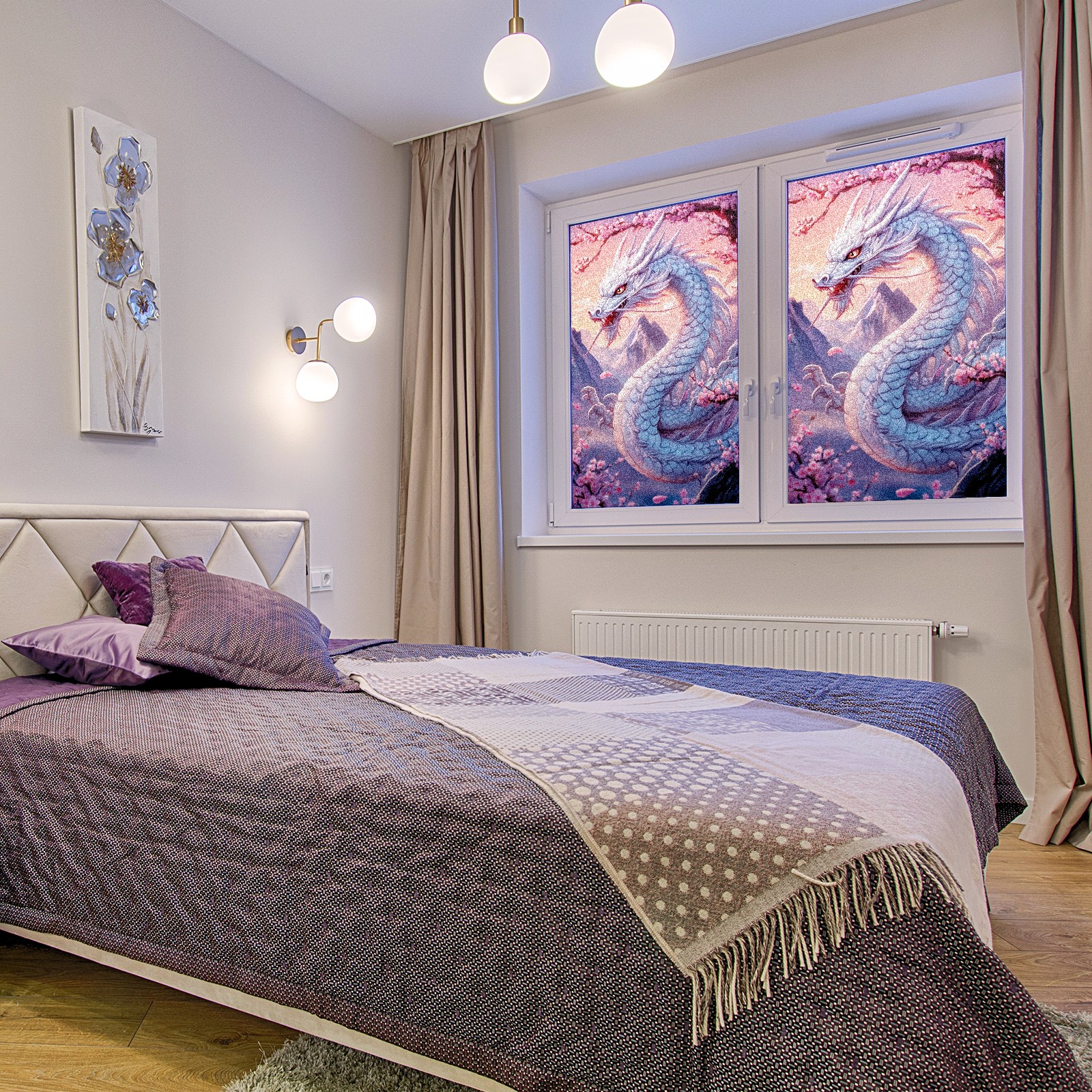 Stained Glass Window Film - Decorative Privacy Film for Windows, Peel and Stick Window Film for Bathroom/Office/Shower, Reusable and Easy to Cut 17.7"x23.6" (White Dragon)