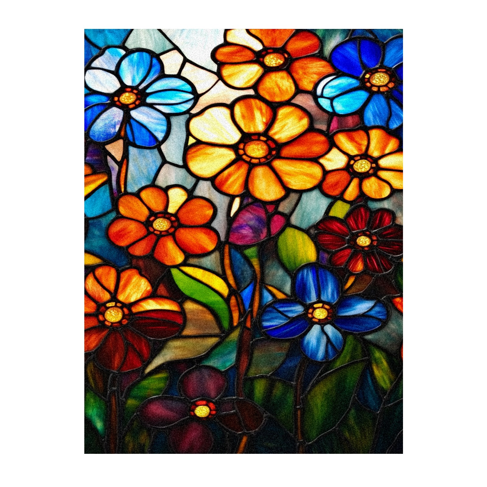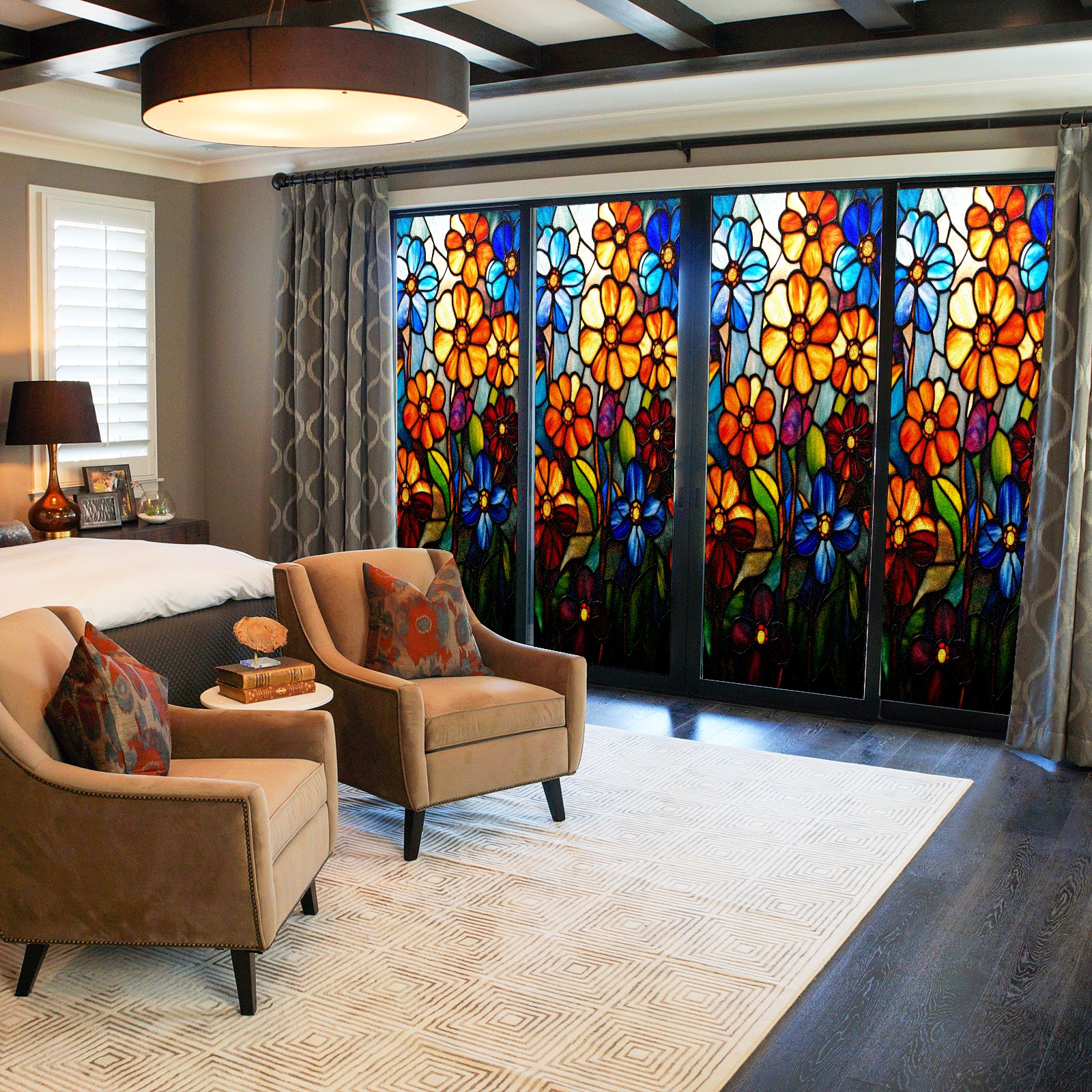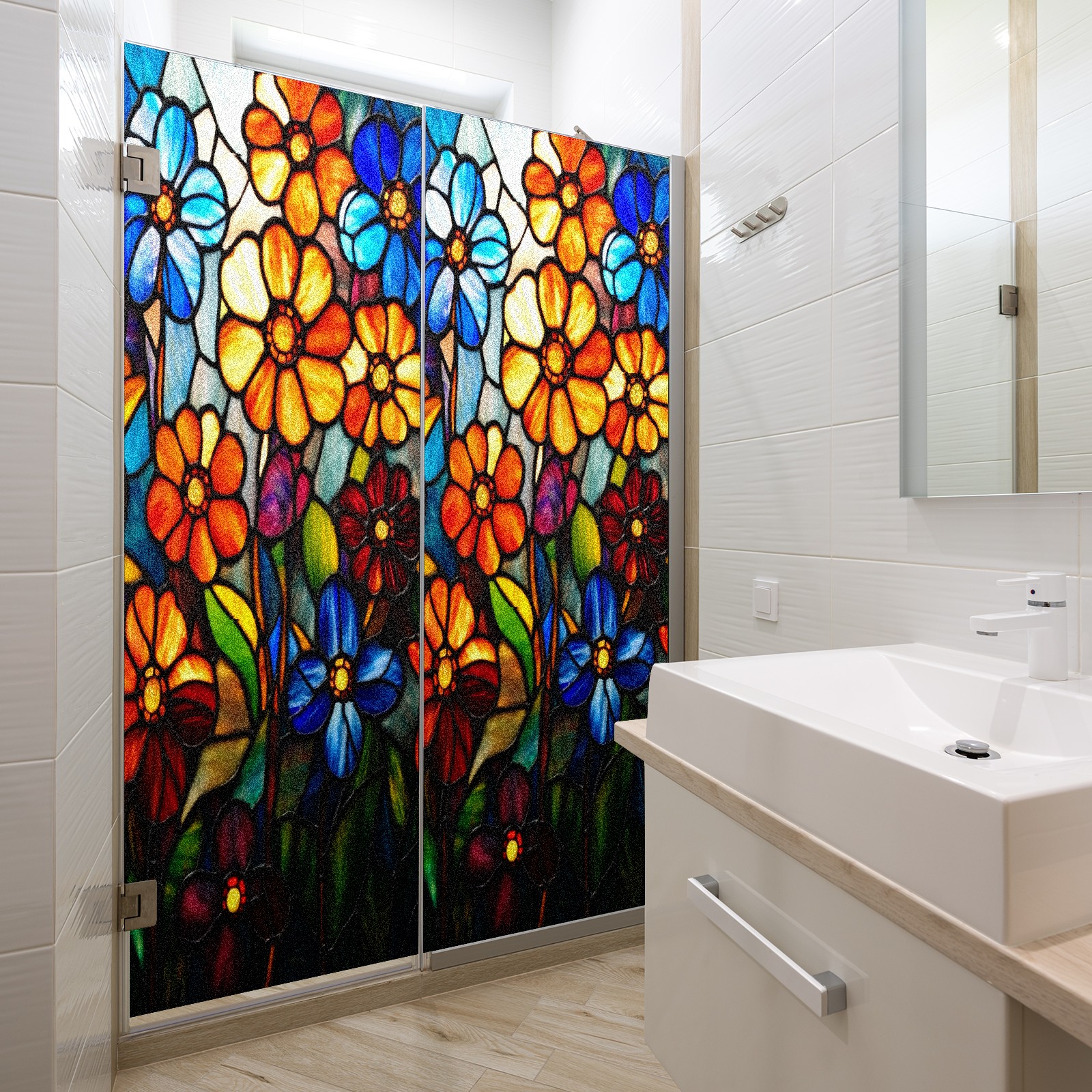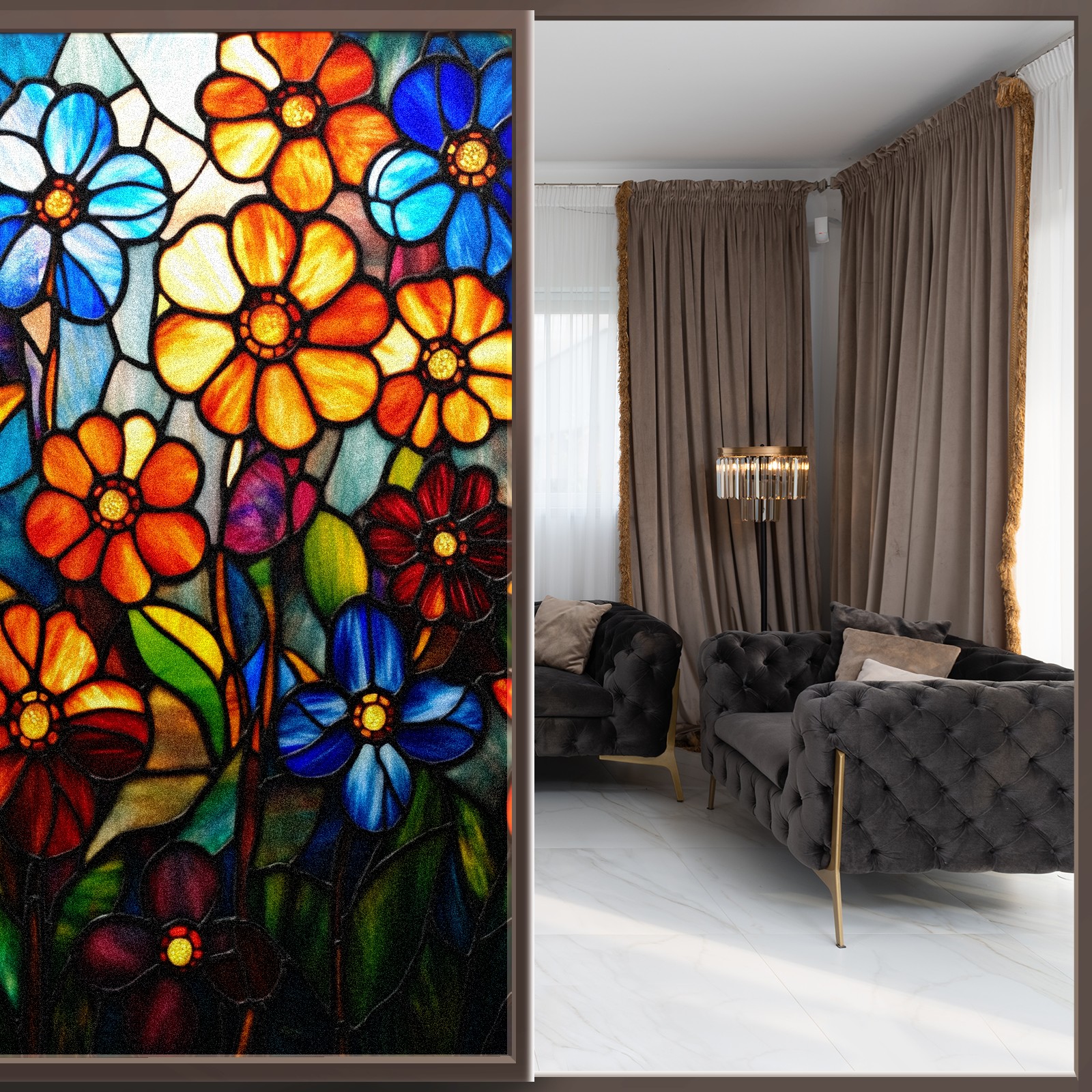 Stained Glass Window Film - Decorative Privacy Film for Windows, Peel and Stick Window Film for Bathroom/Office/Shower, Reusable and Easy to Cut 17.7"x23.6" (Various Colored Flowers)