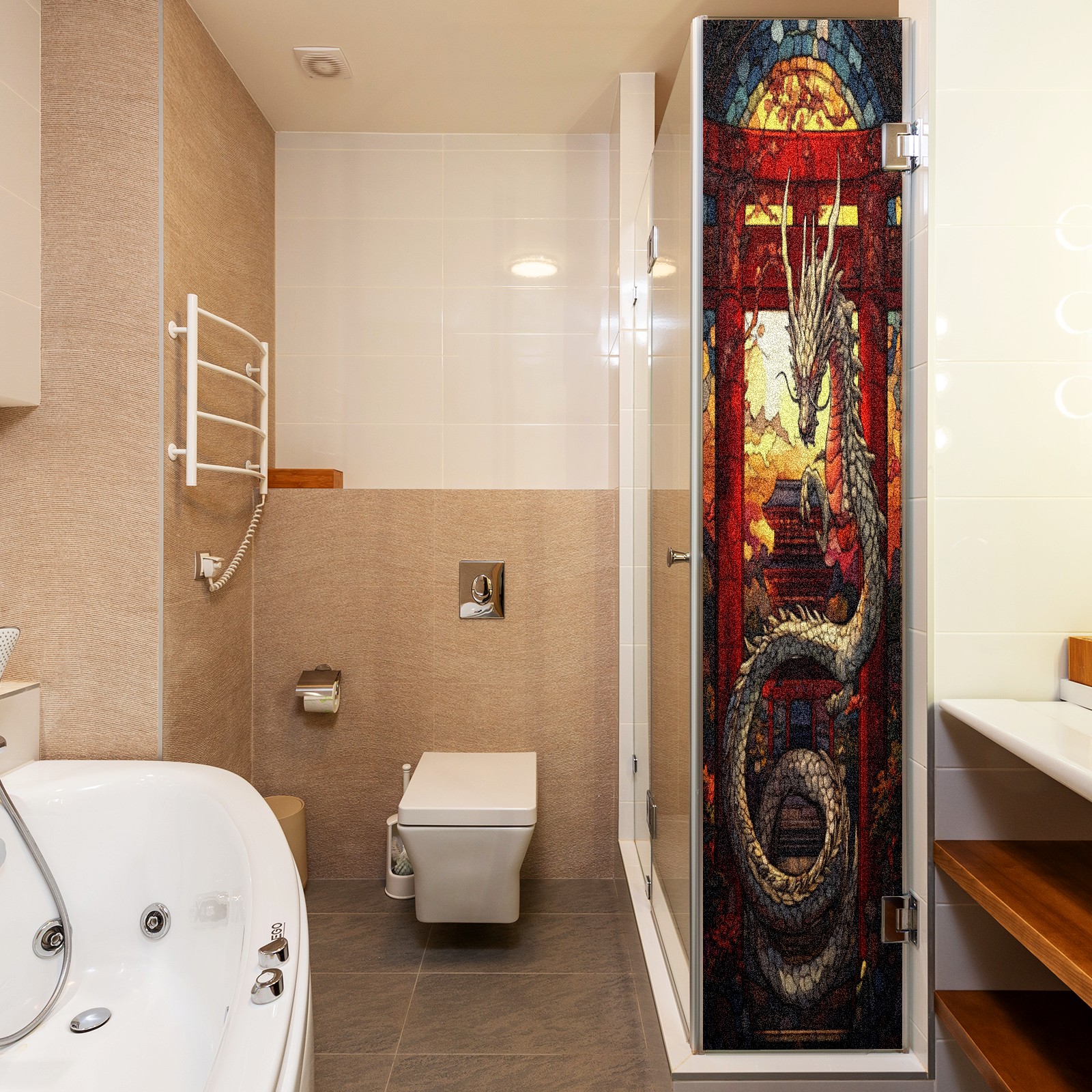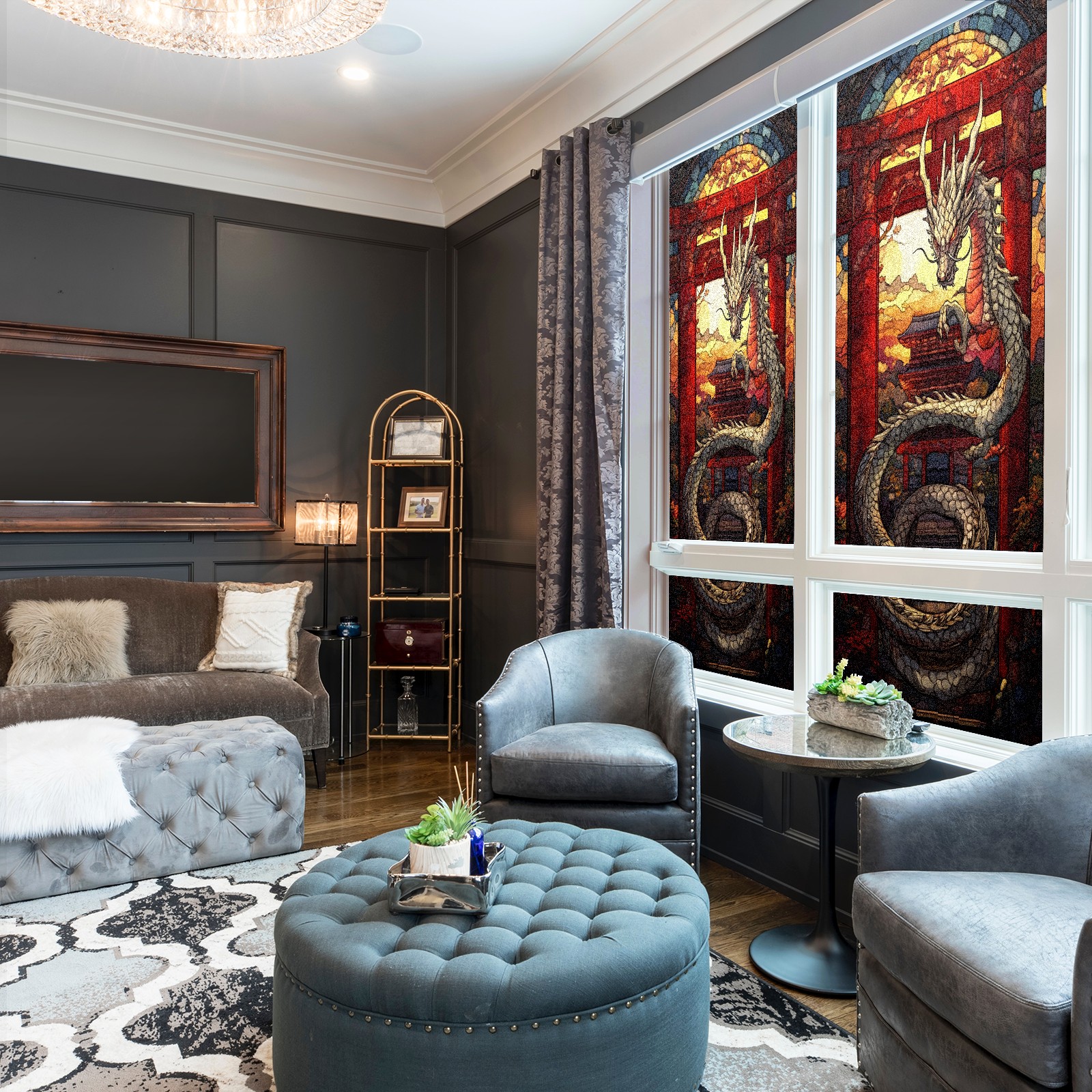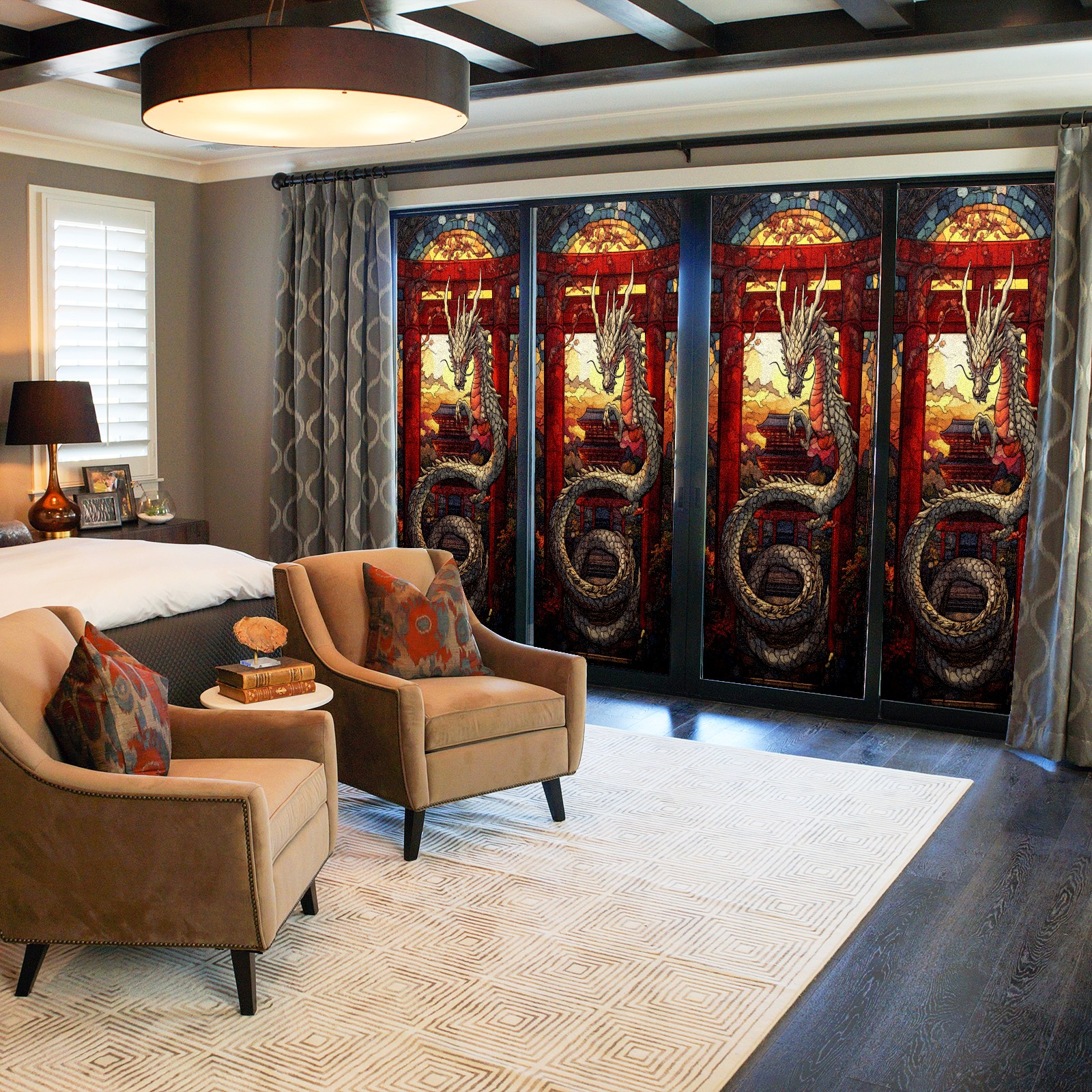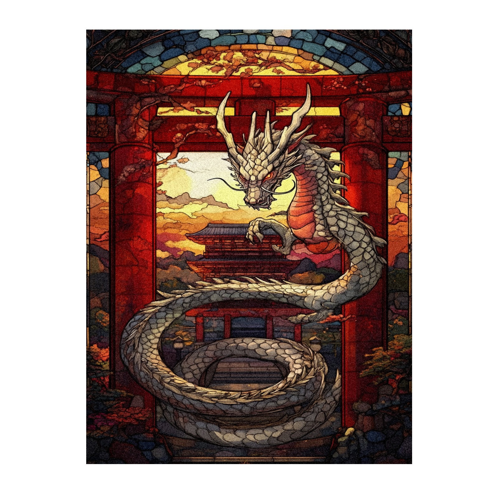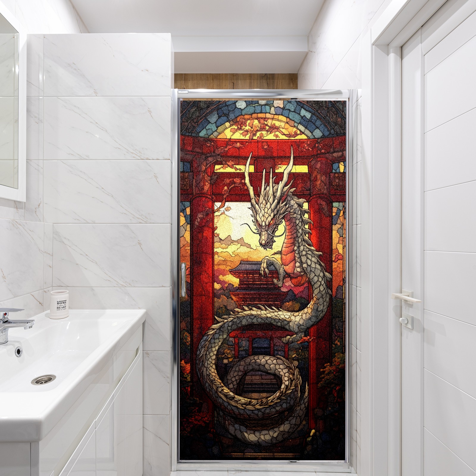 Stained Glass Window Film - Decorative Privacy Film for Windows, Peel and Stick Window Film for Bathroom/Office/Shower, Reusable and Easy to Cut 17.7"x23.6" (Dragon And Gate)