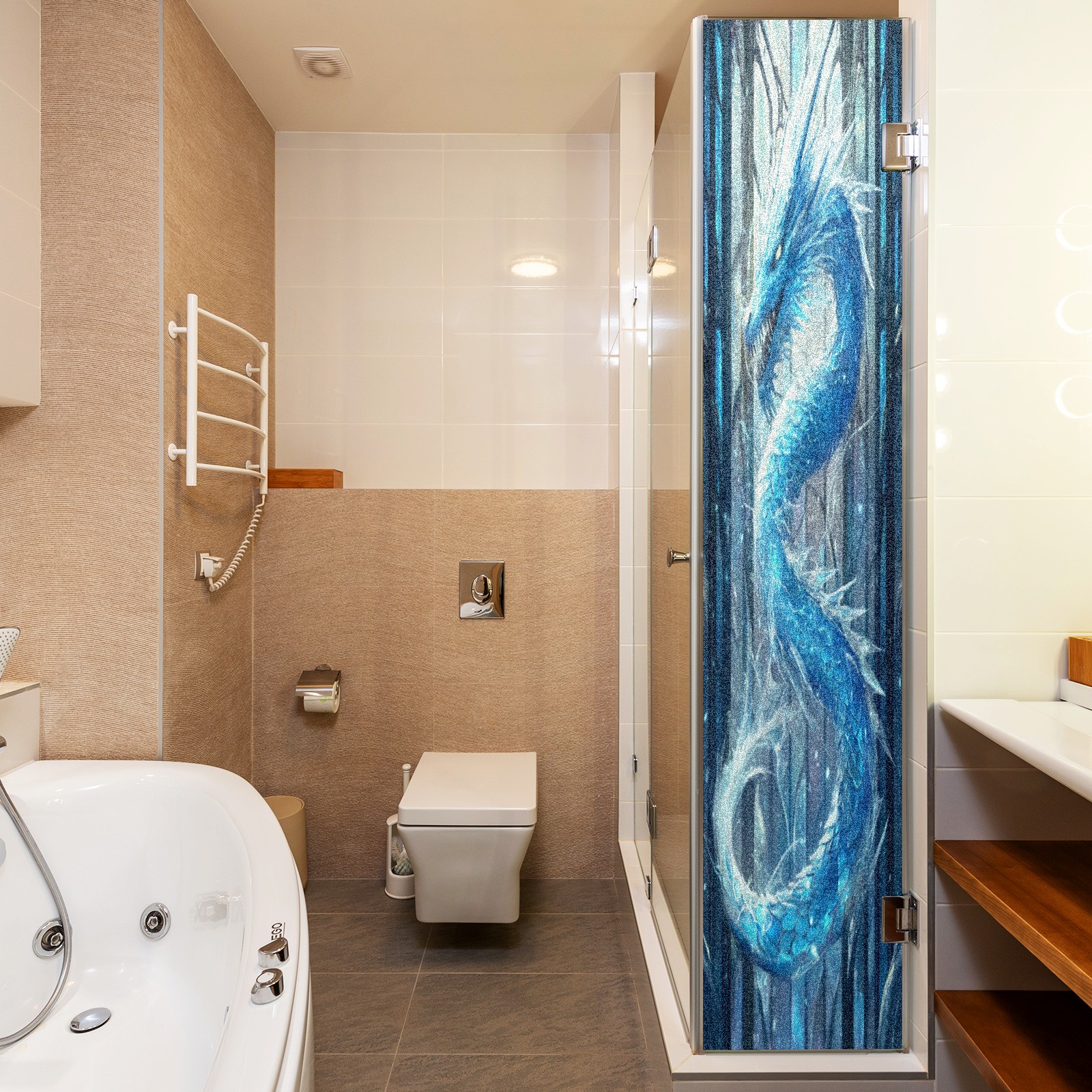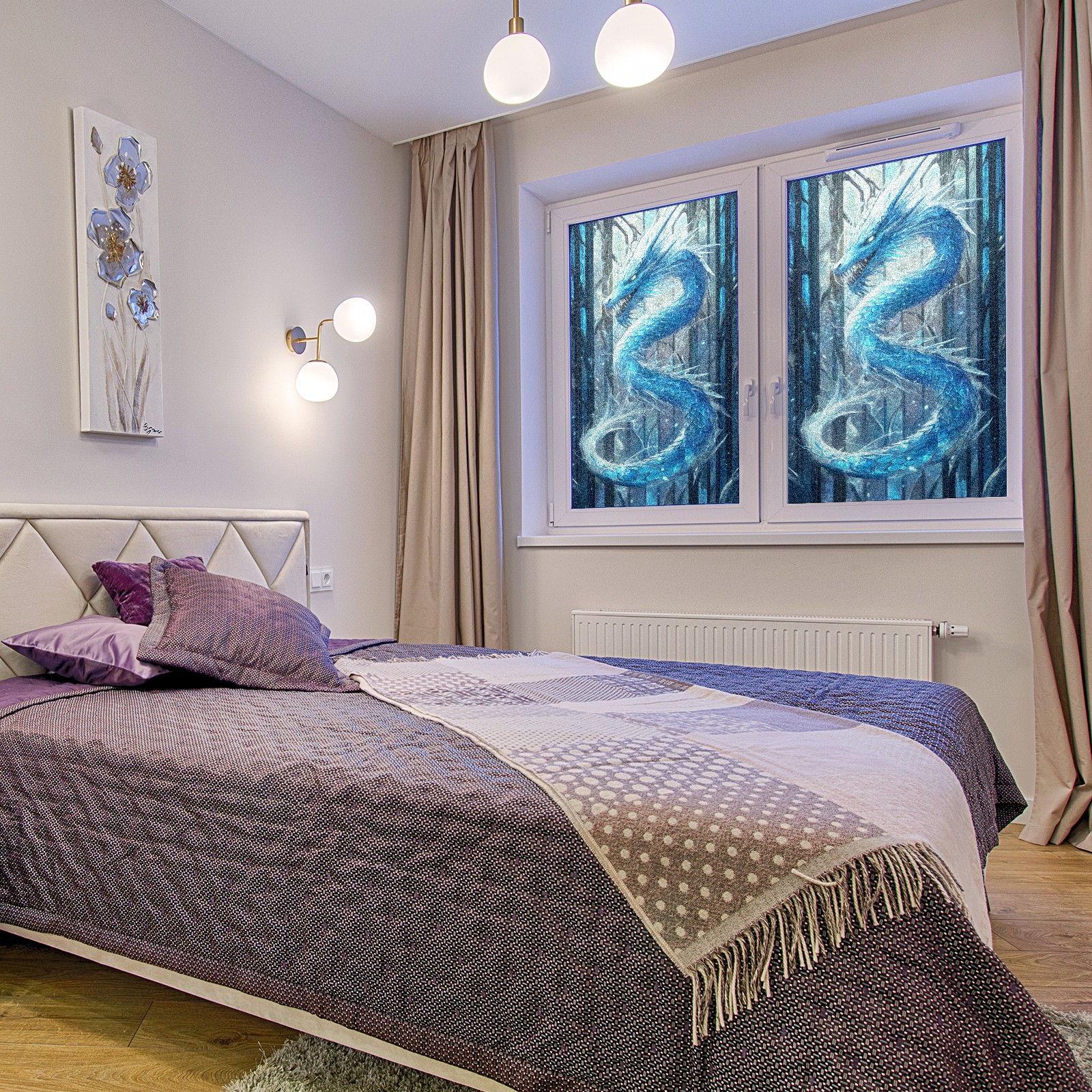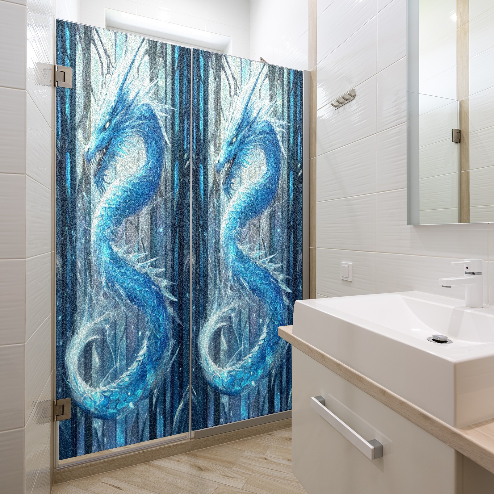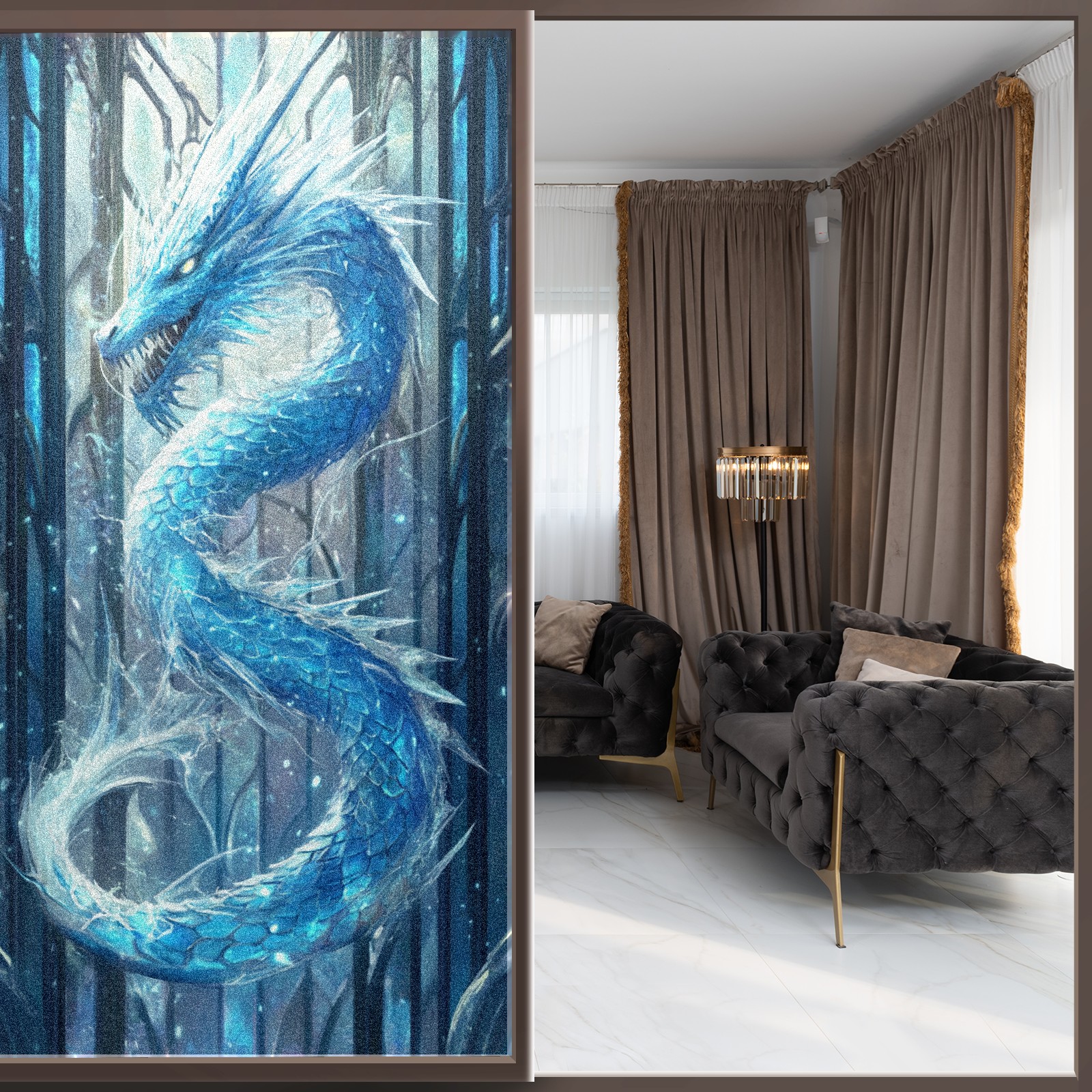 Stained Glass Window Film - Decorative Privacy Film for Windows, Peel and Stick Window Film for Bathroom/Office/Shower, Reusable and Easy to Cut 17.7"x23.6" (Blue Dragon)
