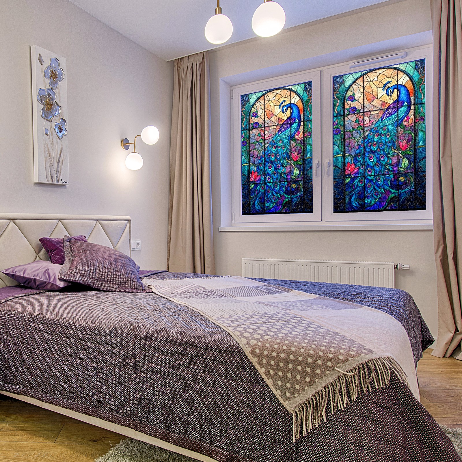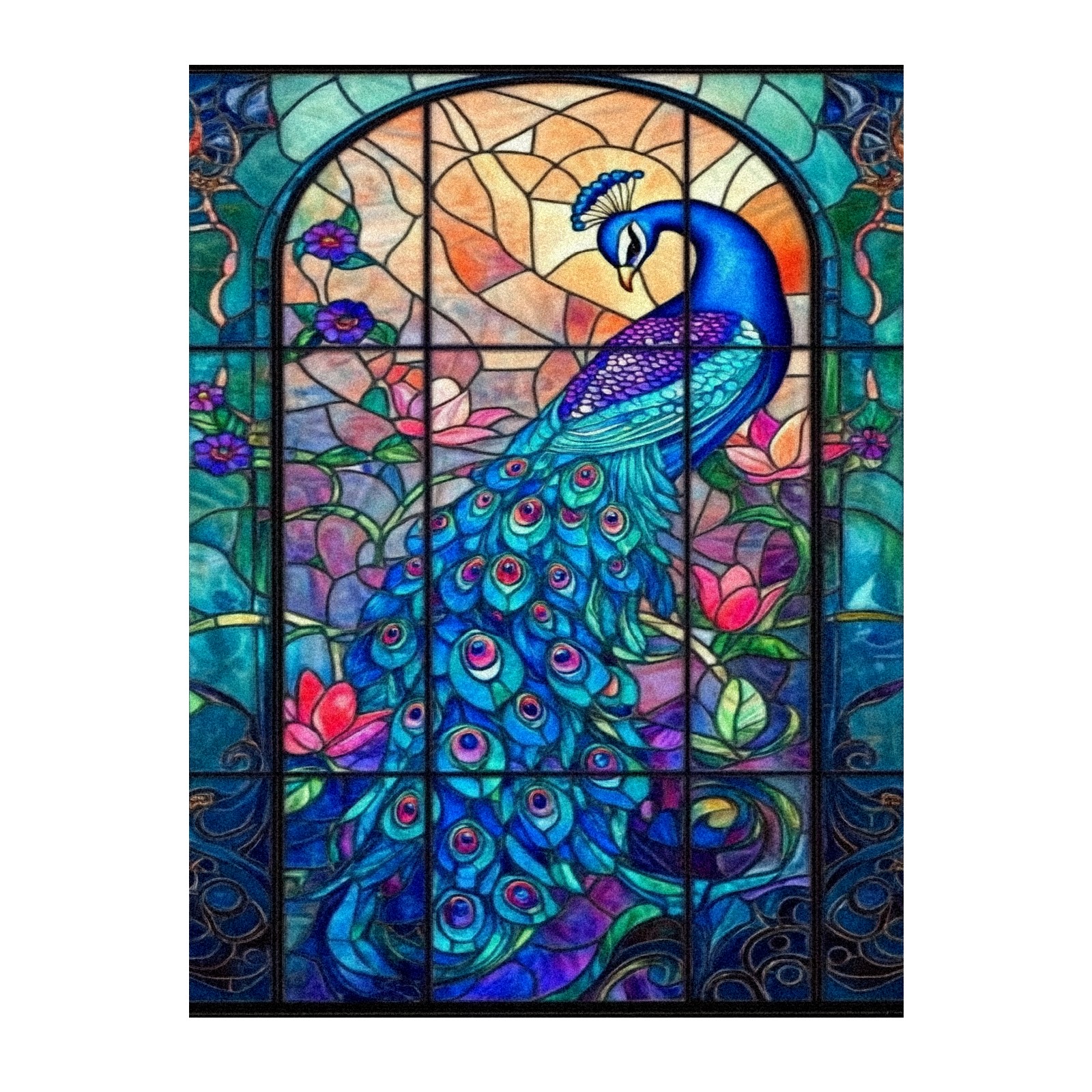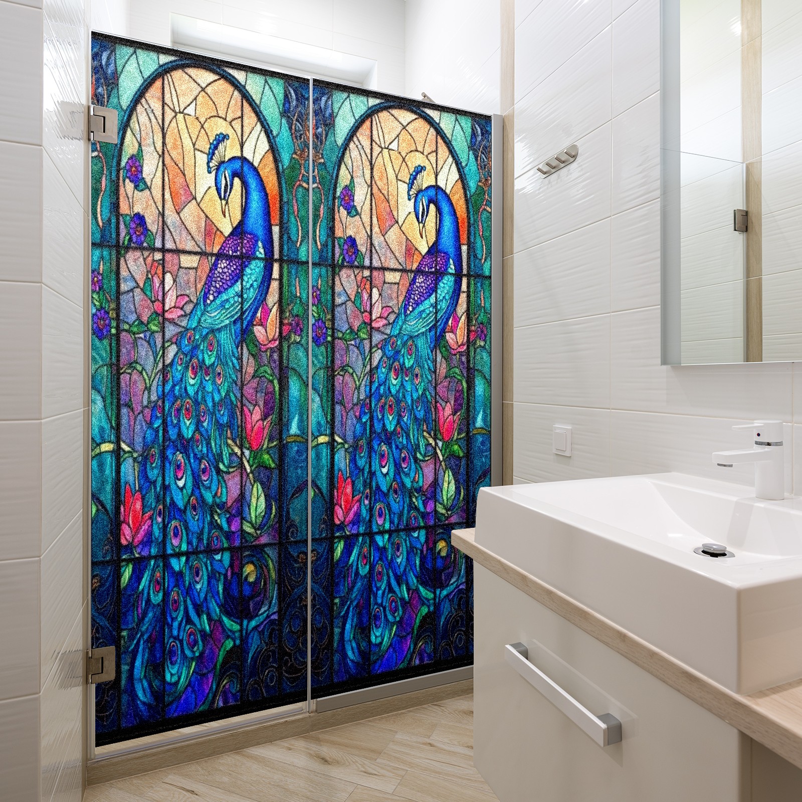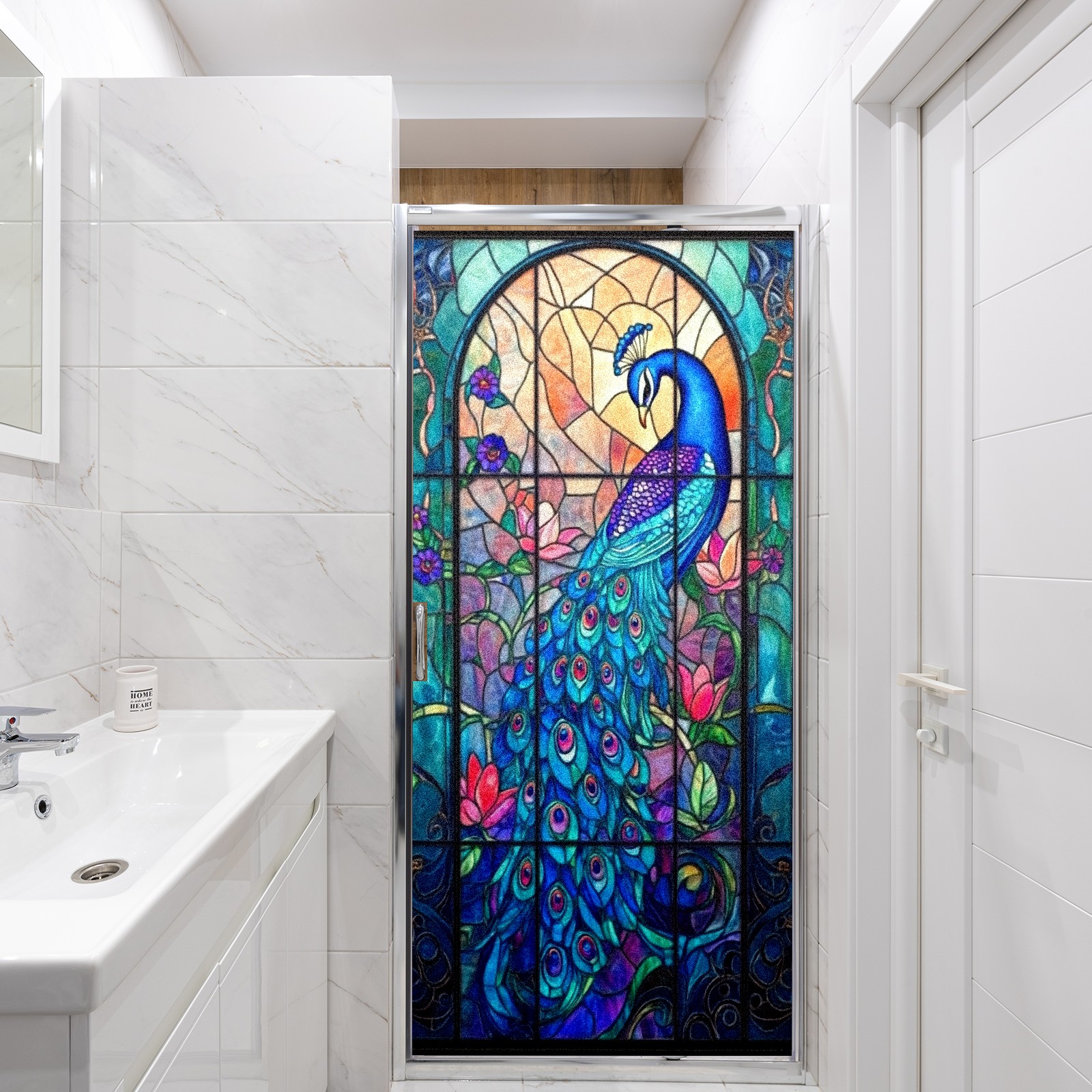 Stained Glass Window Film - Decorative Privacy Film for Windows, Peel and Stick Window Film for Bathroom/Office/Shower, Reusable and Easy to Cut 17.7"x23.6" (Beautiful Peacock)