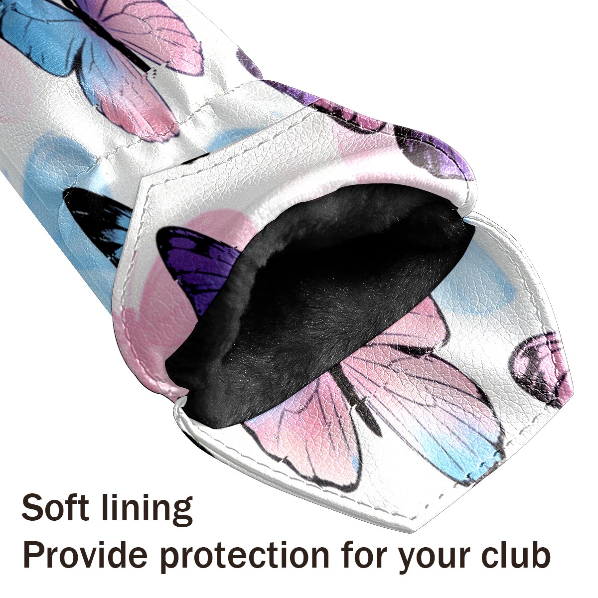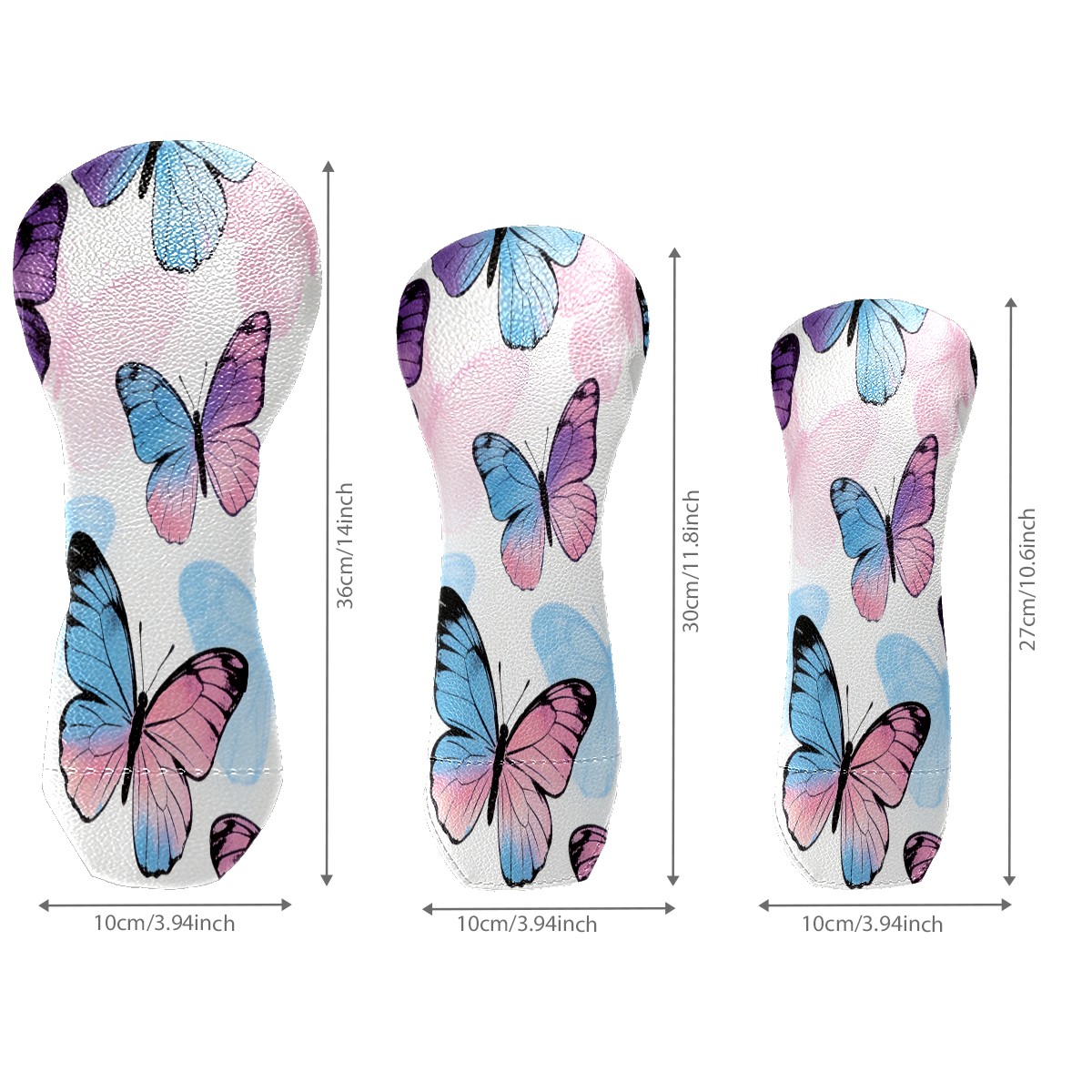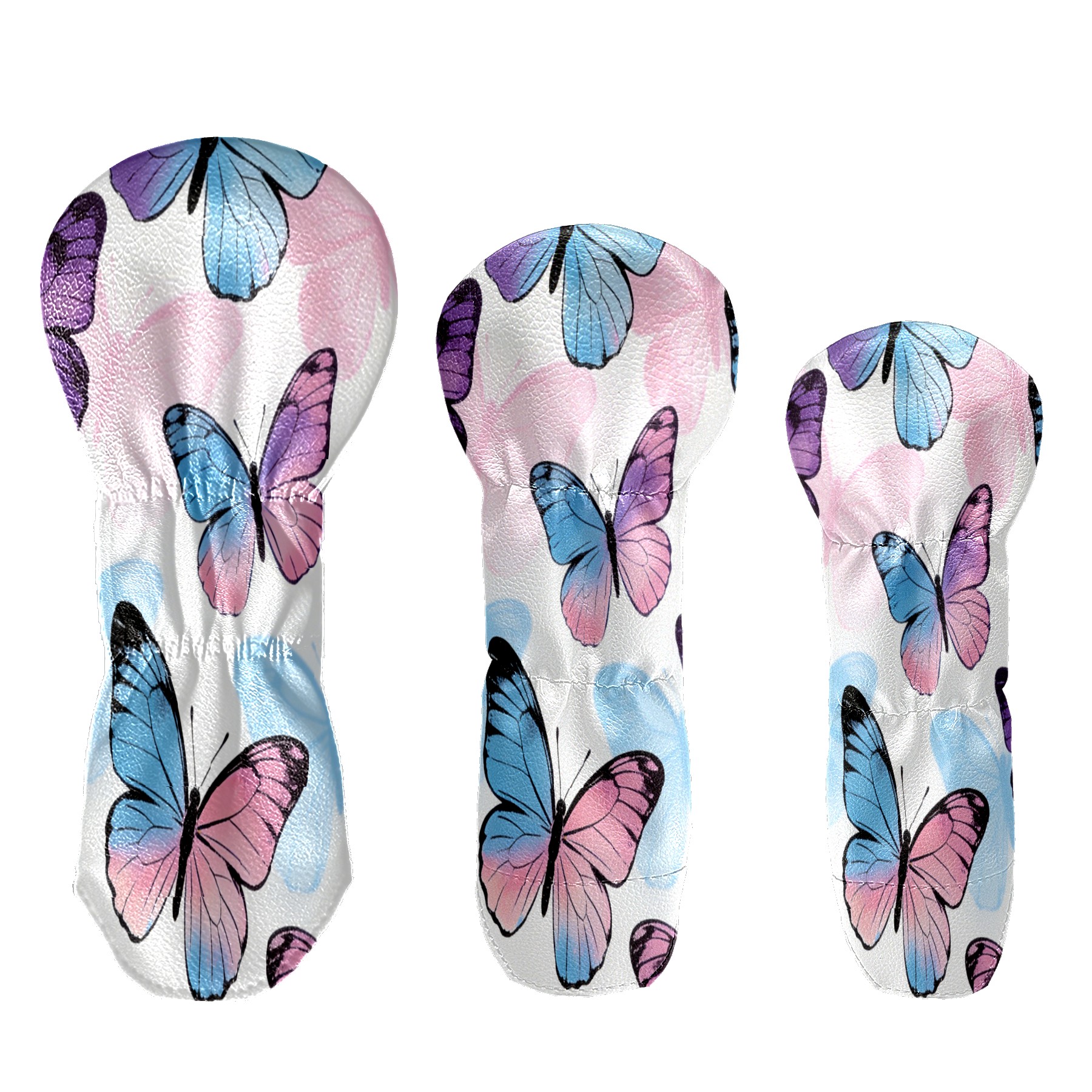Golf Club Covers for Woods and Driver Hybrid Velvet Cover Leather Golf Headcover for Most Brand Club Men Women Pink Blue Butterfly