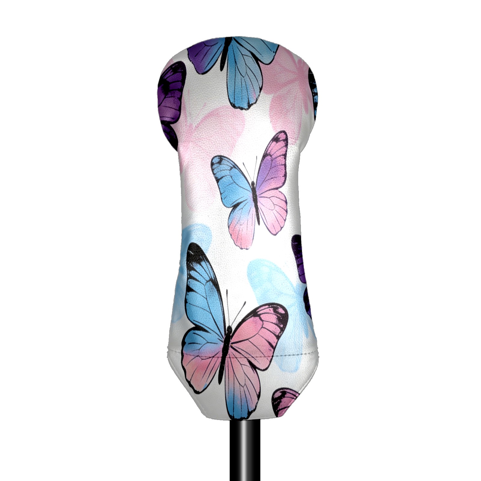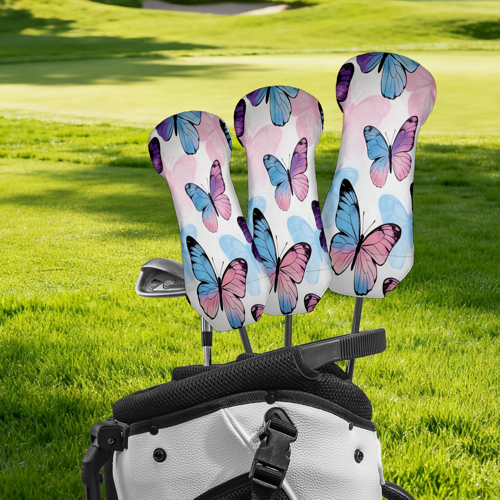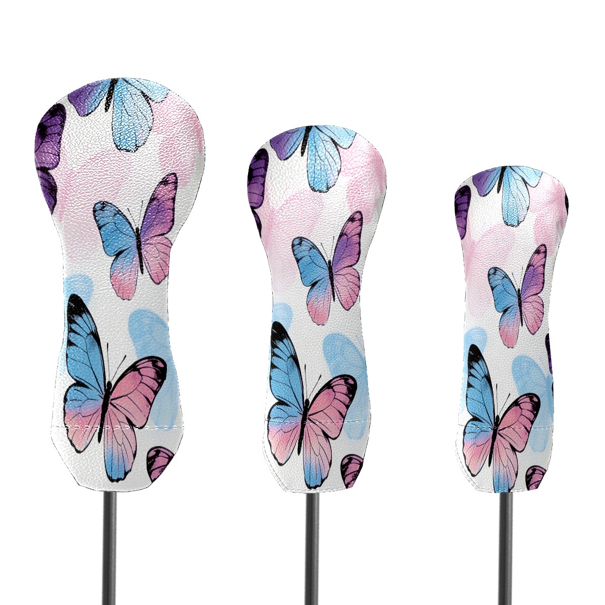 Golf Club Covers for Woods and Driver Hybrid Velvet Cover Leather Golf Headcover for Most Brand Club Men Women Pink Blue Butterfly