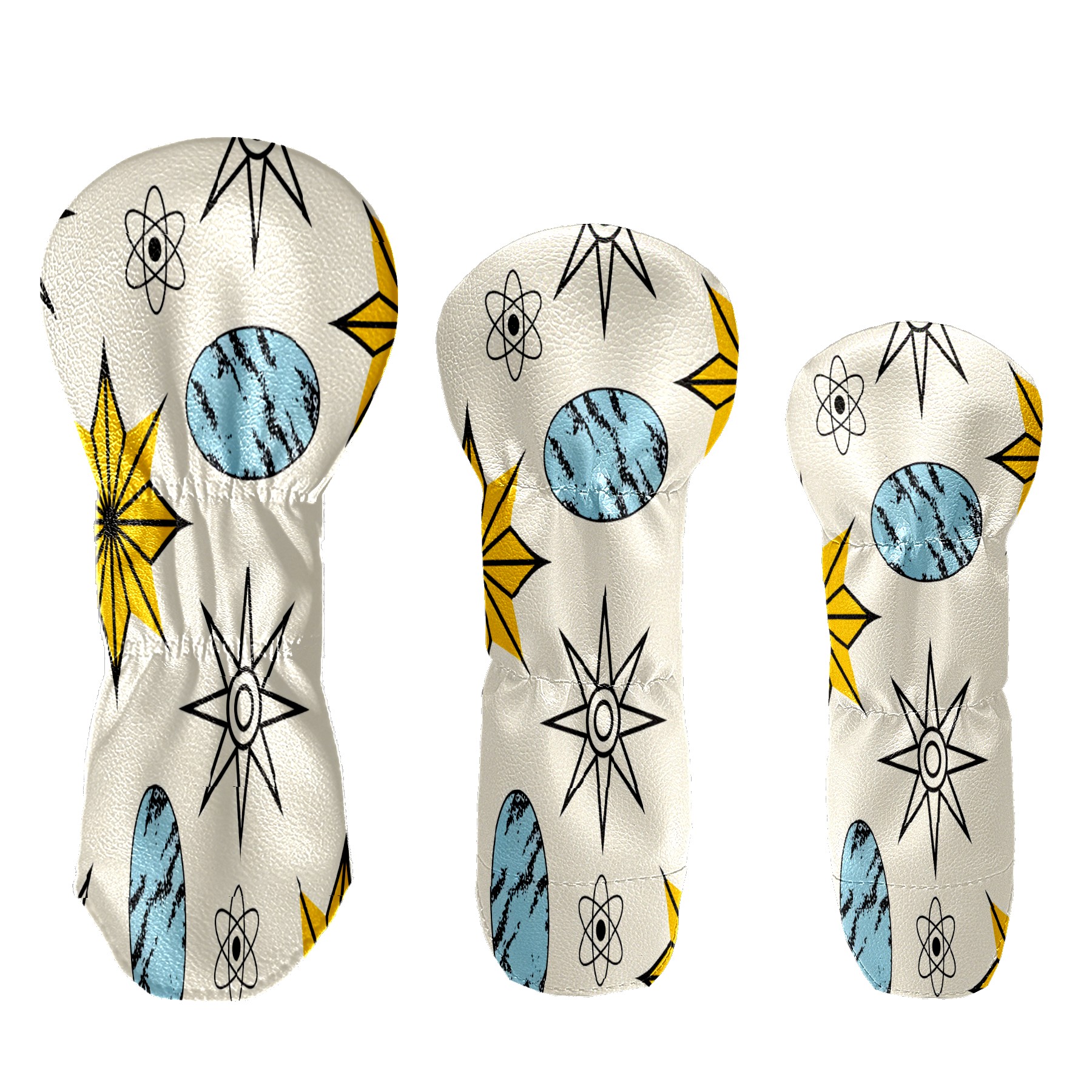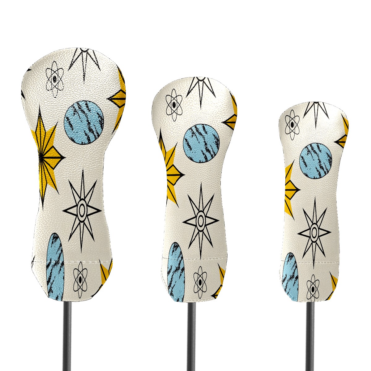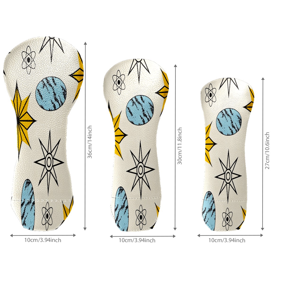 Golf Club Covers for Woods and Driver Hybrid Velvet Cover Leather Golf Headcover for Most Brand Club Men Women Yellow Blue Star Pattern