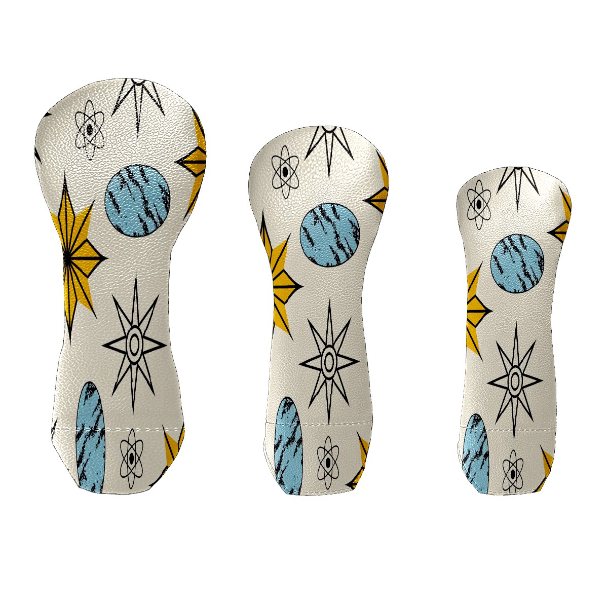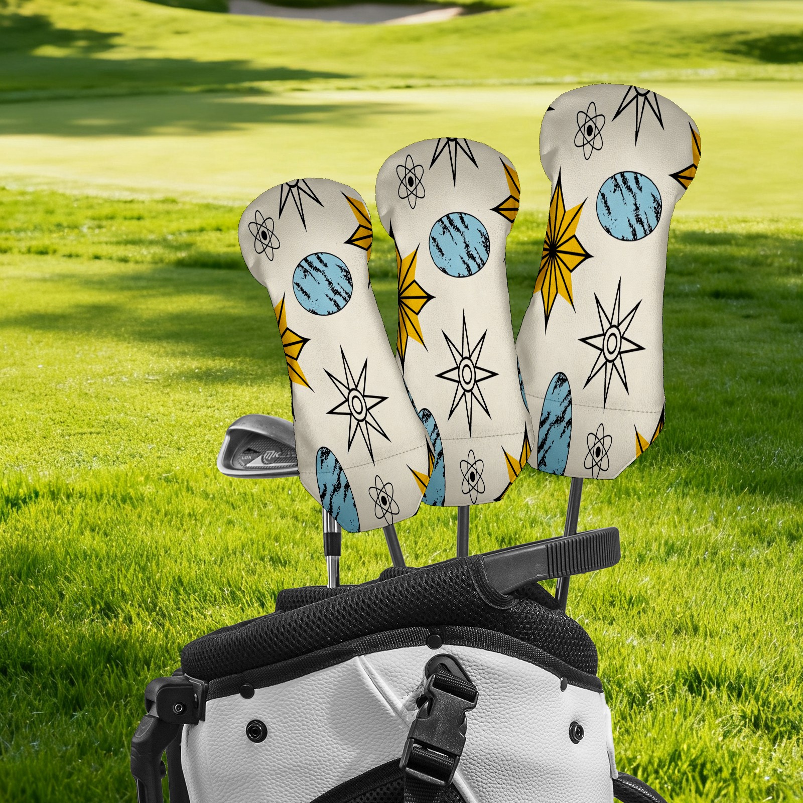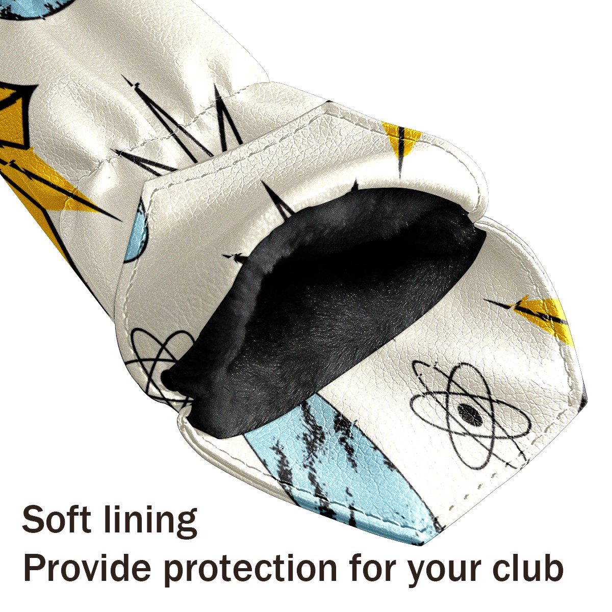 Golf Club Covers for Woods and Driver Hybrid Velvet Cover Leather Golf Headcover for Most Brand Club Men Women Yellow Blue Star Pattern