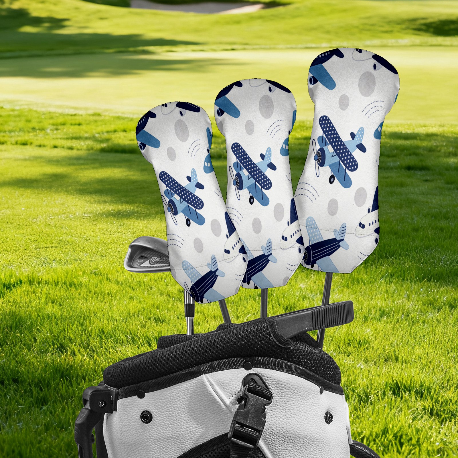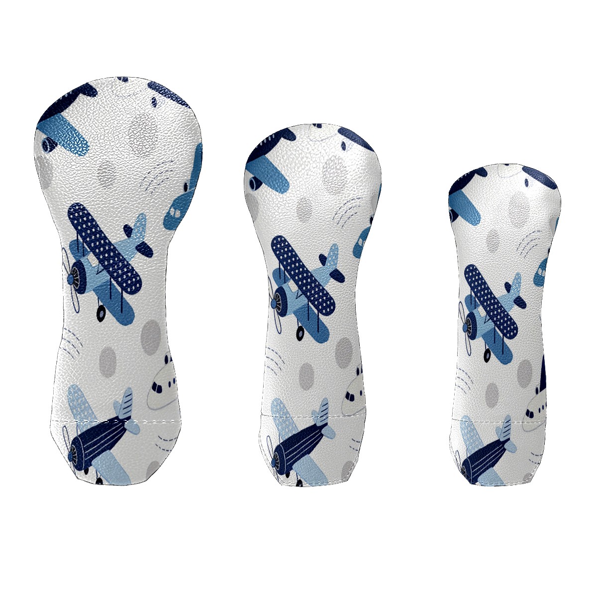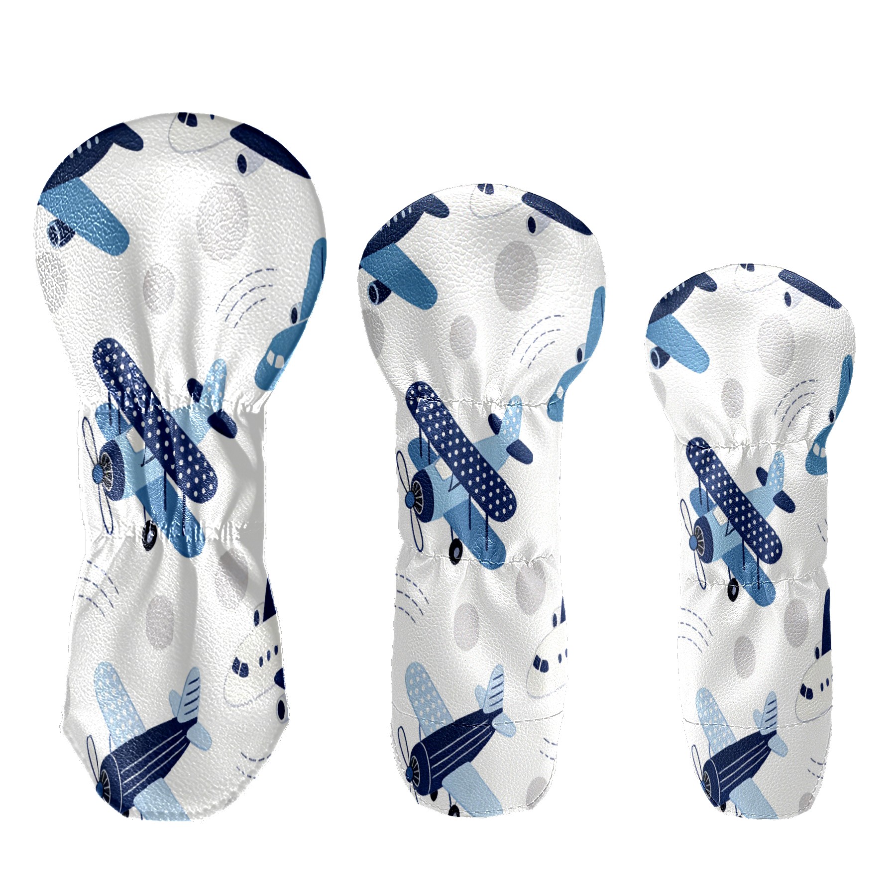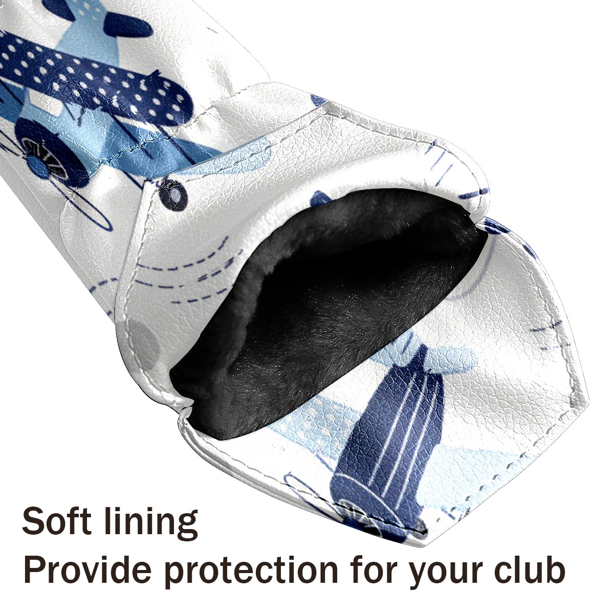Golf Club Covers for Woods and Driver Hybrid Velvet Cover Leather Golf Headcover for Most Brand Club Men Women Hand-drawn Style Airplane