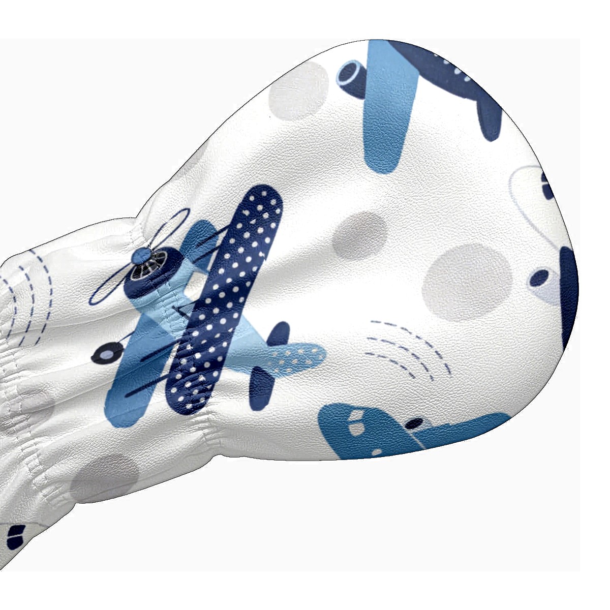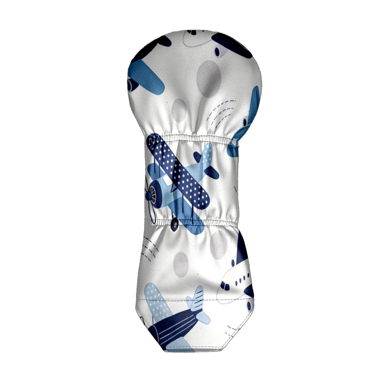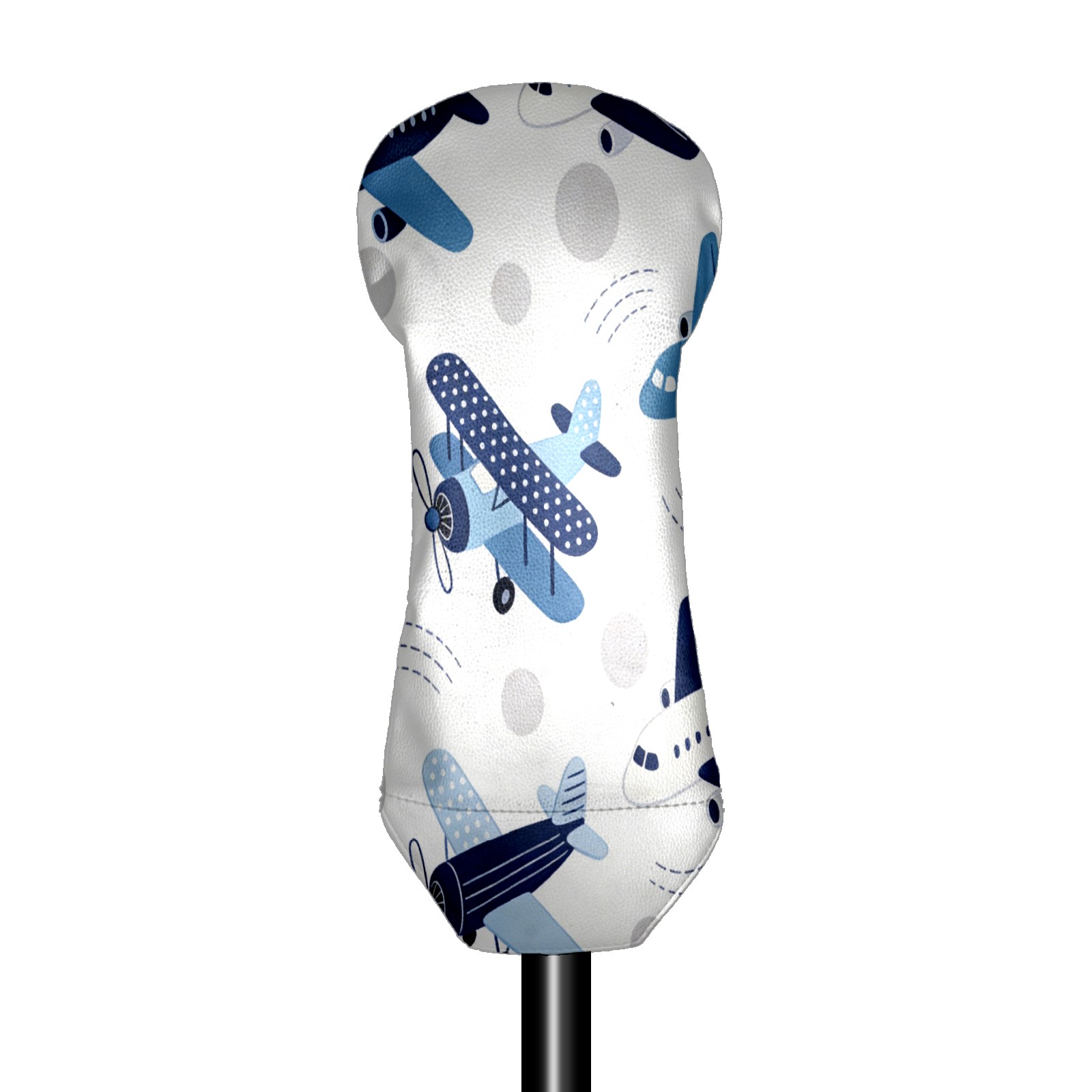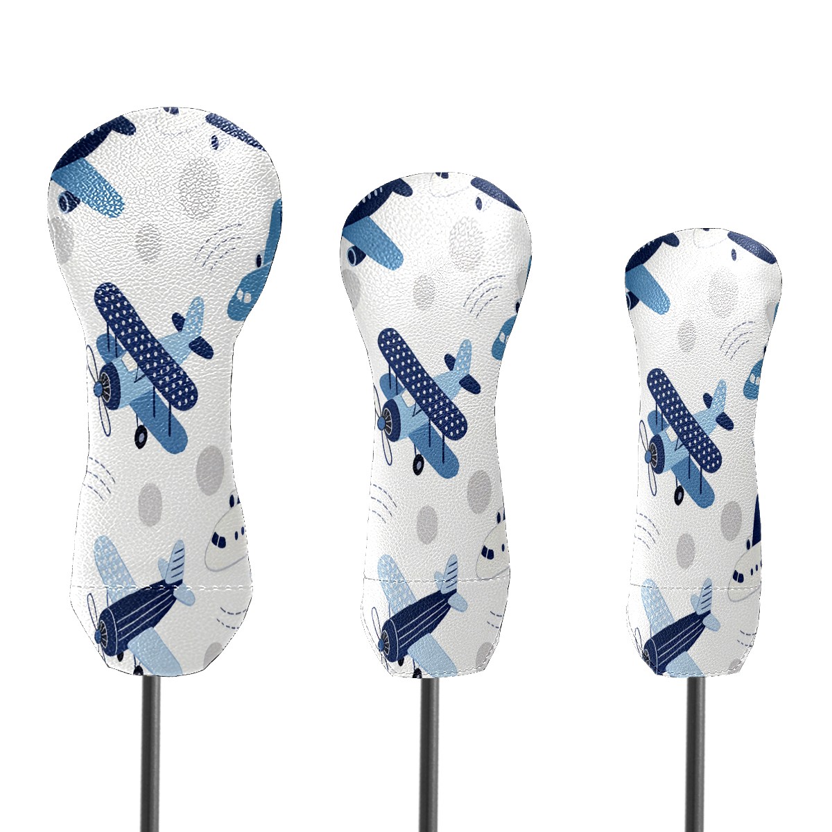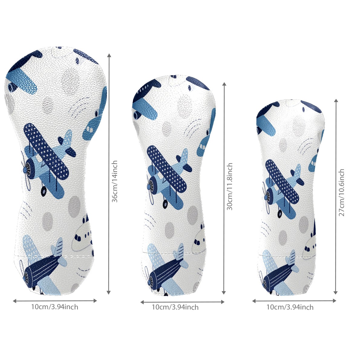 Golf Club Covers for Woods and Driver Hybrid Velvet Cover Leather Golf Headcover for Most Brand Club Men Women Hand-drawn Style Airplane